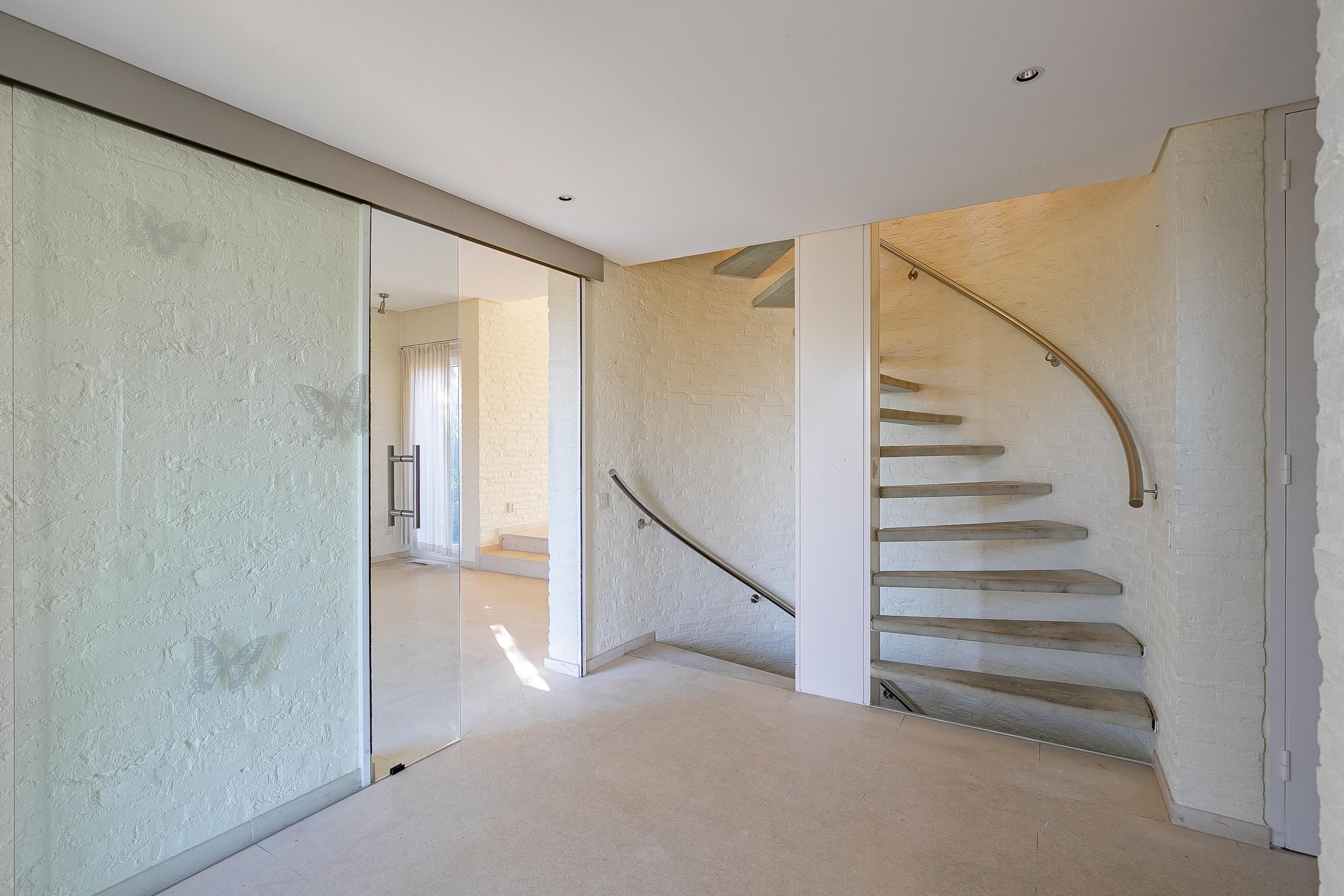 The beautiful semicircular staircase leads to the spacious landing with access to three bedrooms, a bathroom, separate toilet, and a hallway. The bedrooms at the front are approx. 7 and 9.5m² in size and offer beautiful views. The bathroom is approx. 4m² and has a shower, sink, skylight, and access to a storage room. The master bedroom is located at the rear (approx. 17m²) and has an en-suite bathroom. This bathroom (approx. 6m²) has a bath/shower combination, sink, and a dormer window. The porch of approx. 8m² overlooks the living room but can easily be transformed into an extra bedroom.