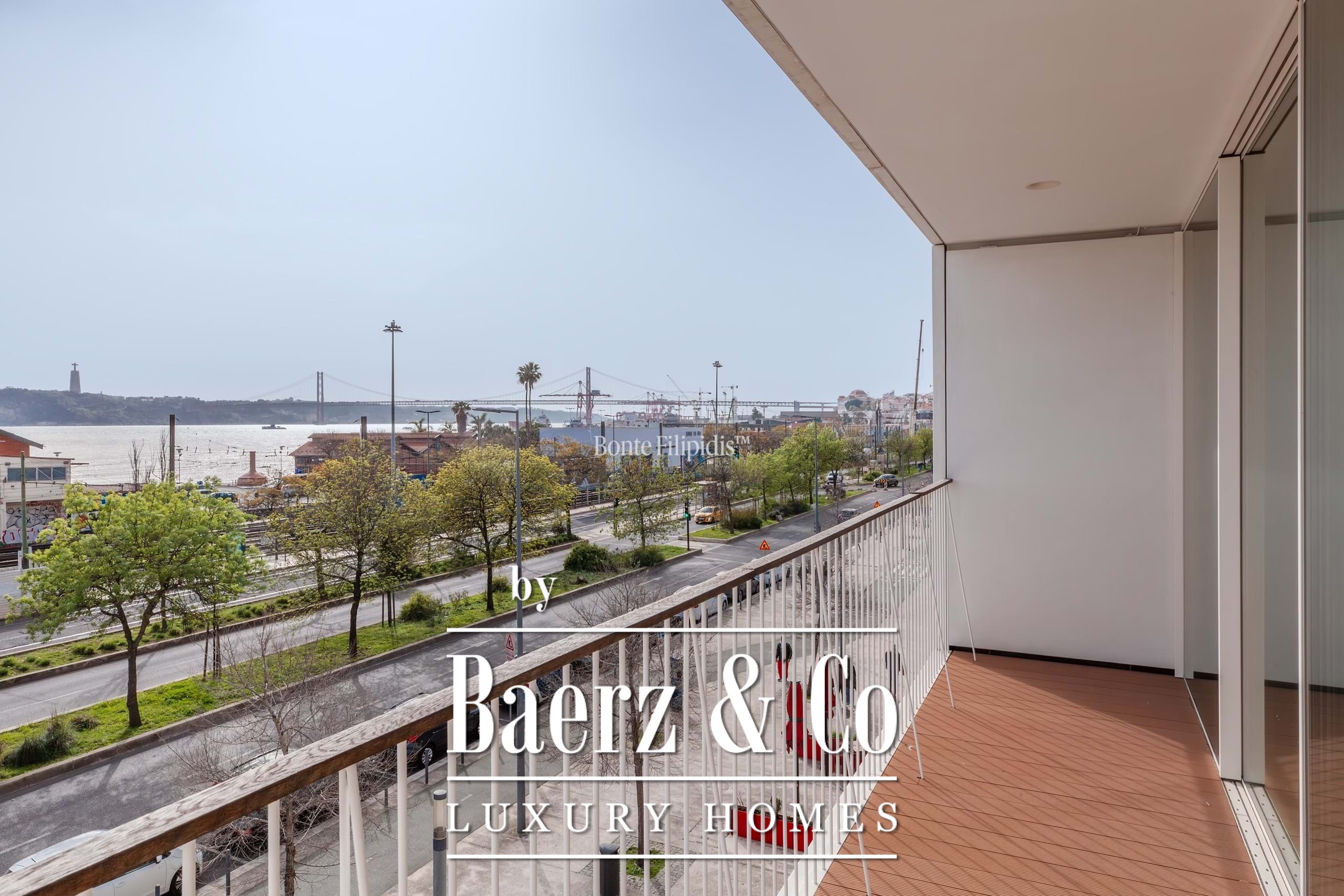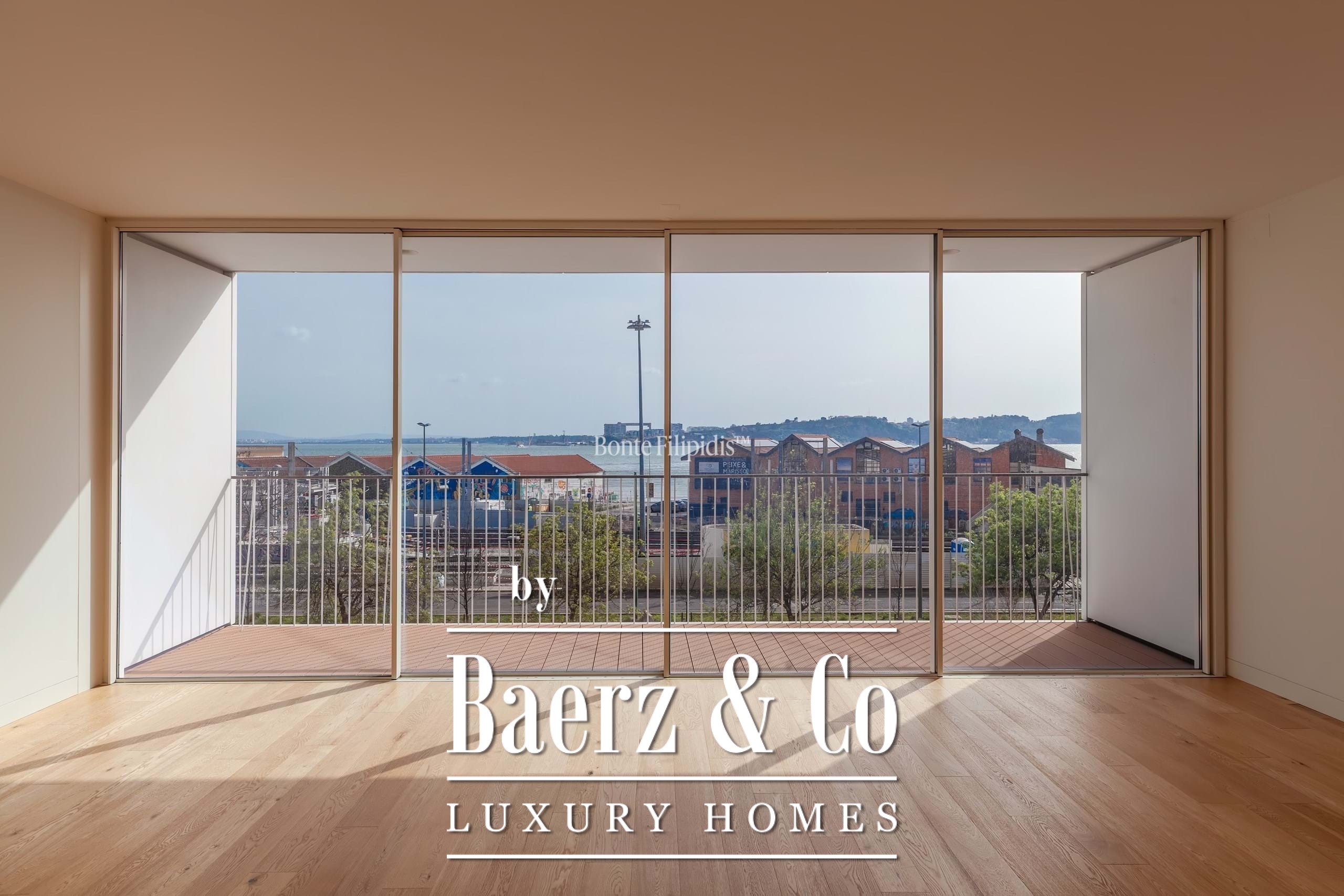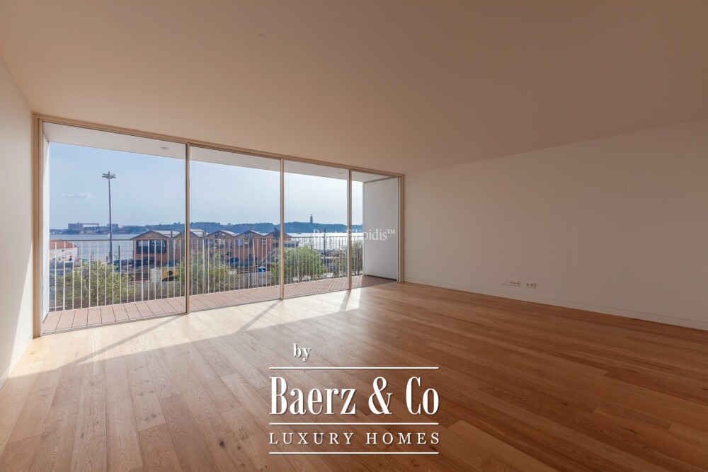 Apartment Misericórdia is set along Av. 24 de Julho, between Cais do Sodré and the Lisbon riverfront, offering an unbroken view across the Tagus and toward the 25 de Abril Bridge. This three-bedroom apartment, completed in 2023, occupies 183 m² of internal space within 244 m² gross area, defined by natural light and uninterrupted flow. The main living and dining space opens seamlessly to a 13.8 m² balcony, framing the daily rhythm of the river and city beyond.