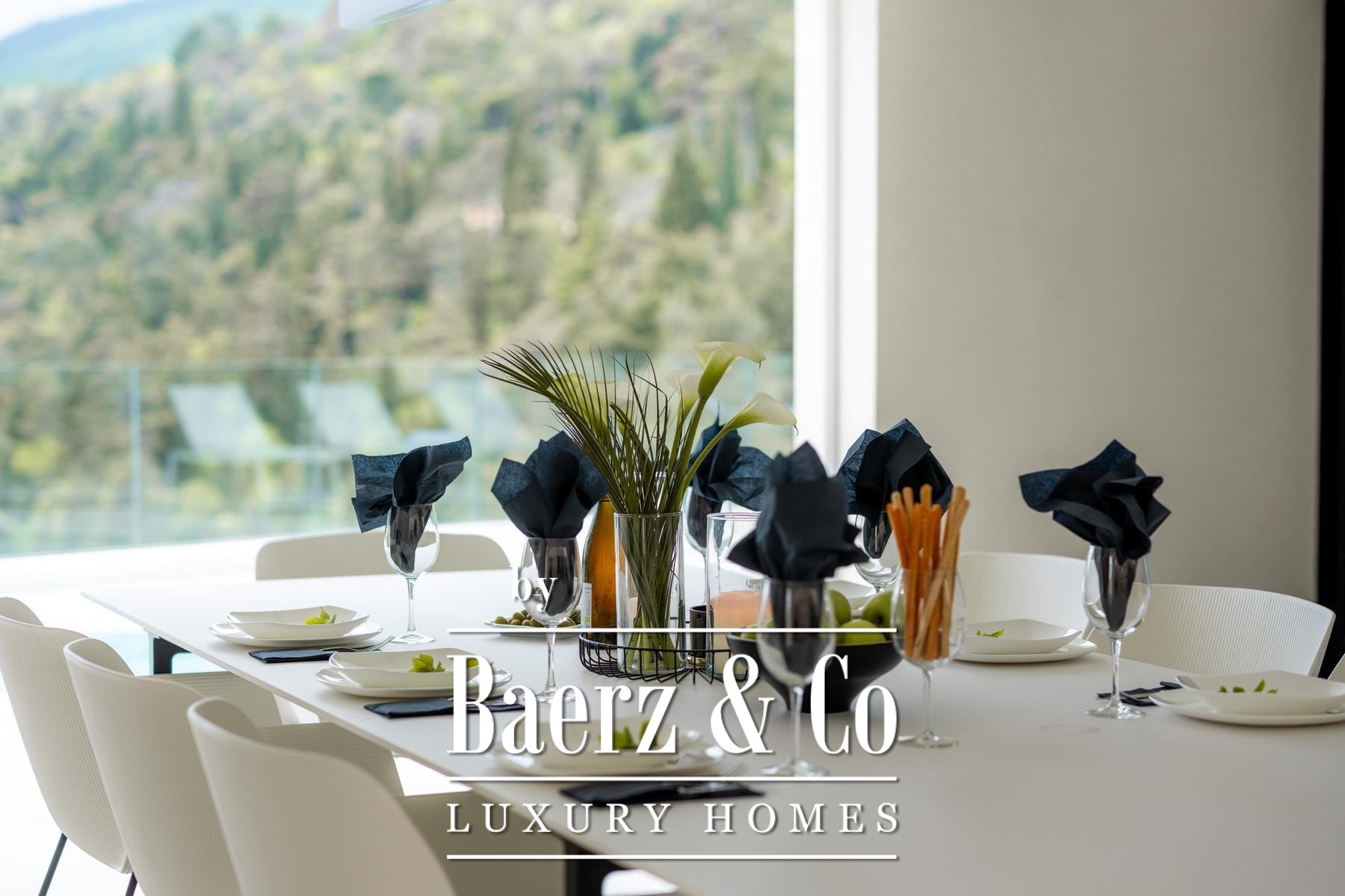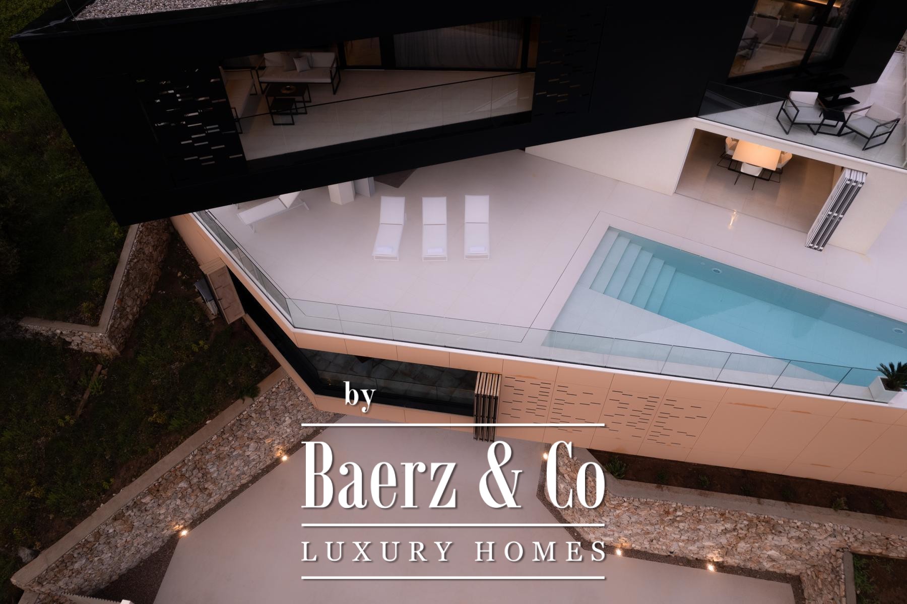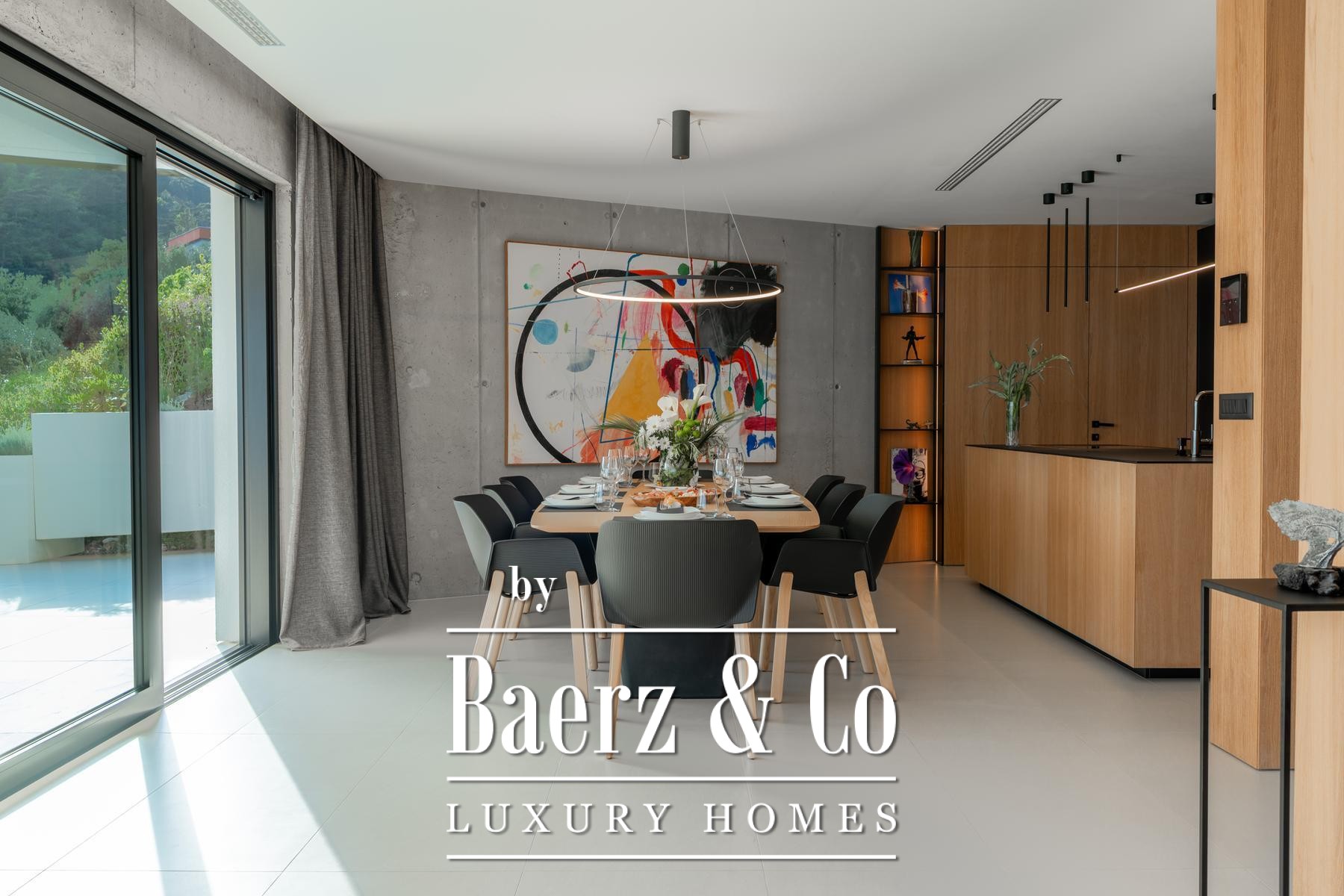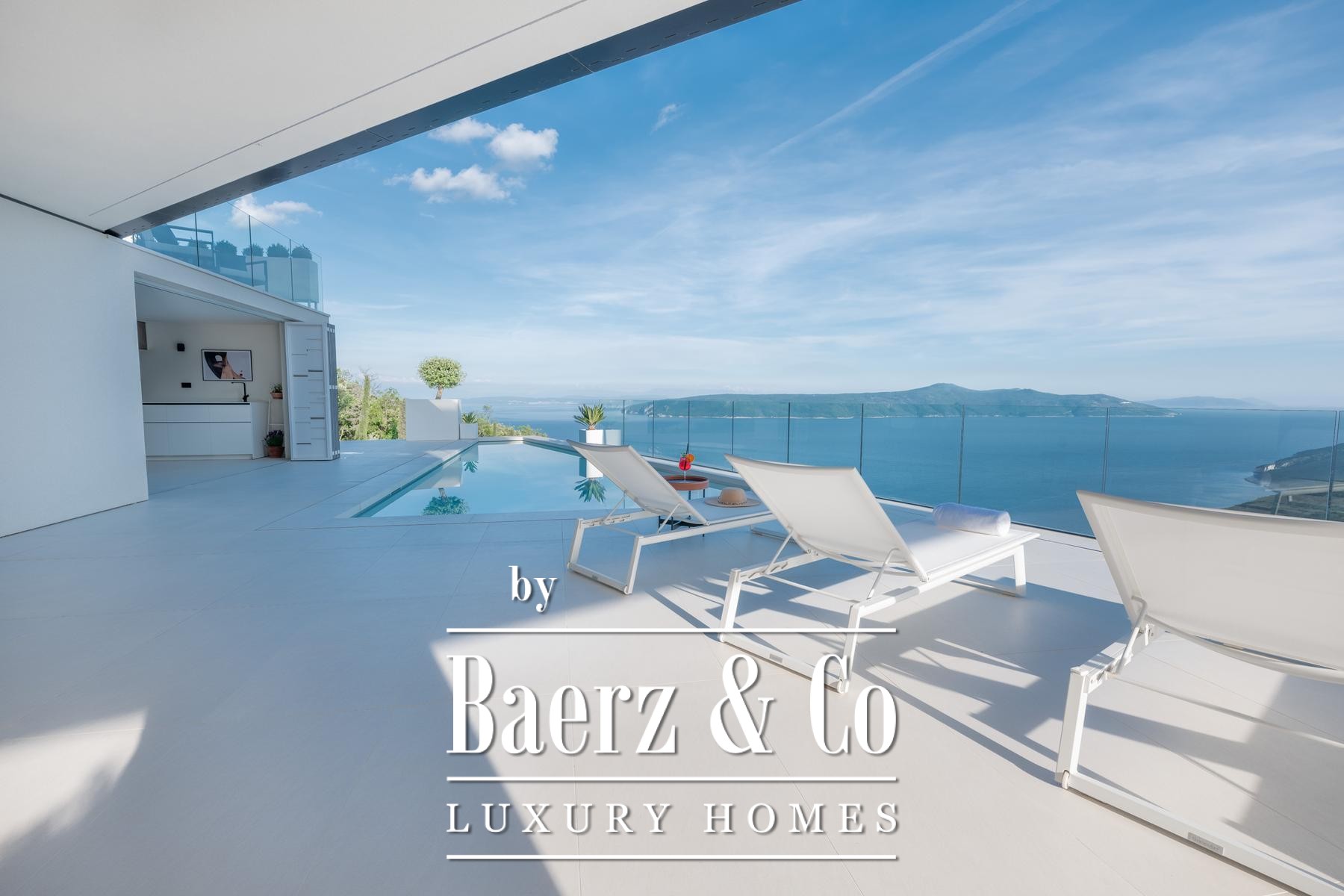 Discover a unique, newly built luxury villa in Mošćenice, above picturesque Mošćenička Draga. Completed in 2023 it offers panoramic views of the Kvarner Bay.This multi-story property, spanning 184 m2, is situated on a 917 m2 plot, perfectly blending modern design and functionality. It features four spacious rooms and four elegantly appointed bathrooms. Finished with meticulous attention to detail and premium materials, the villa includes an advanced smart home system and an elevator connecting all floors. This home is completely ready for immediate occupancy.The residence offers exceptional amenities for relaxation. Enjoy the outdoor swimming pool with sea views or the indoor swimming pool, available year-round. For ultimate wellness, a private sauna is also at your disposal.