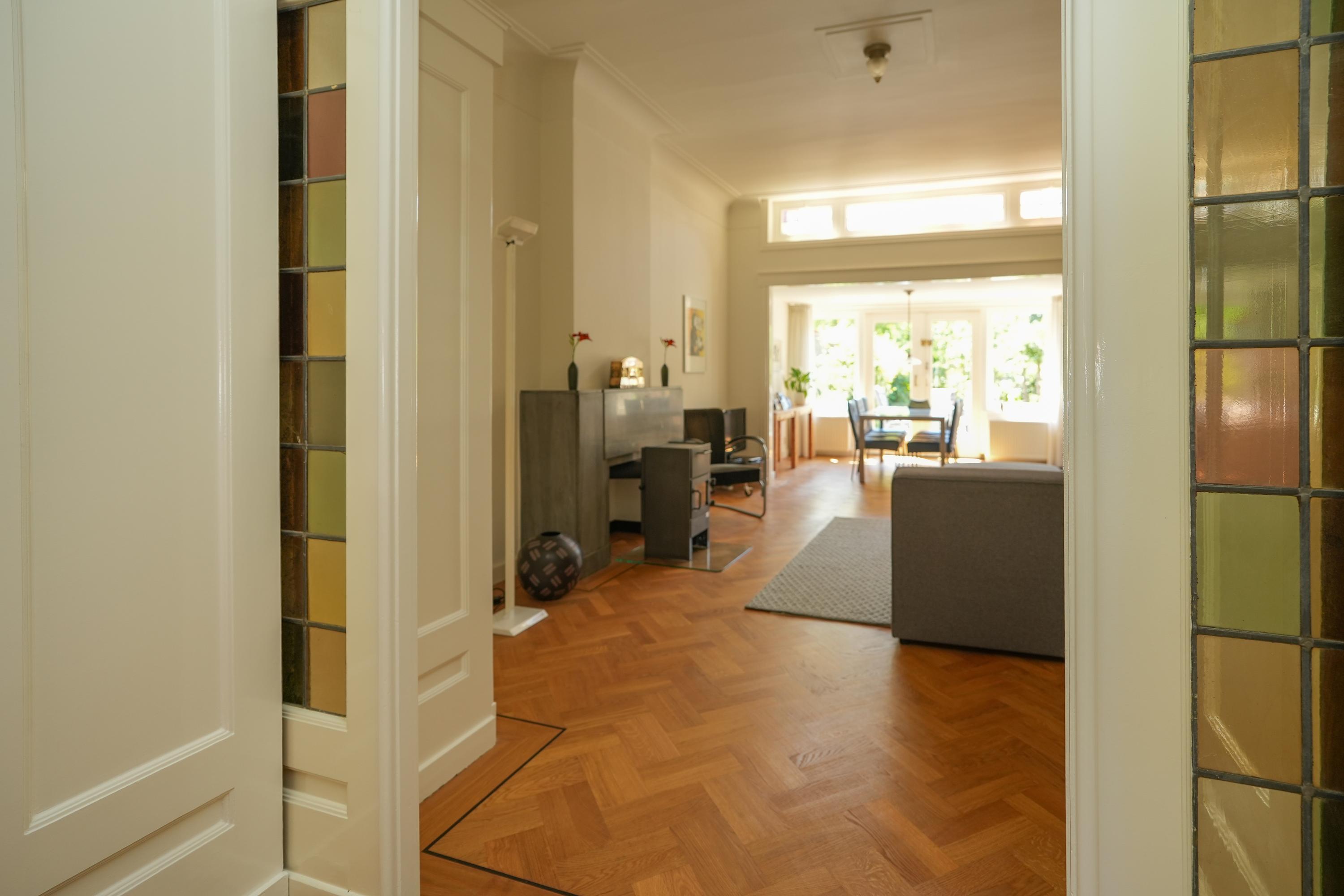De woning is verdeeld over meerdere woonlagen en beschikt over maar liefst zes slaapkamers, twee badkamers en een ruime kelder. Ideaal voor gezinnen of voor wie comfortabel en rustig wil thuiswerken. De woonkamer en suite ademt sfeer, met prachtige glas-in-loodramen, hoge plafonds, schouwen en paneeldeuren die het karakter van het huis onderstrepen. De originele stijlkenmerken zijn op zorgvuldige wijze behouden. Verder bevinden zich op de eerste verdieping onder andere een balkon aan de voorzijde en een dakterras aan de achterzijde, waar je kunt genieten van rust en uitzicht op de groene achtertuin. De zolderverdieping biedt naast extra slaapkamers ook toegang tot een praktische bergzolder. De achtertuin is diep, vol privacy en verrassend groen. Hier vind je ook een stenen berging en een handige achterom. En met een energielabel B, is deze woning bovendien opvallend duurzaam voor zijn bouwjaar!
