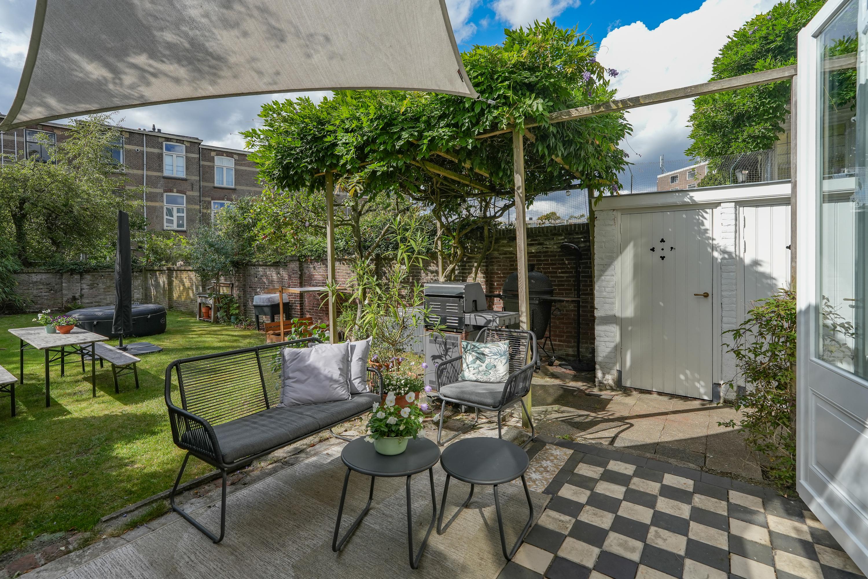This beautiful and luxurious townhouse is a property that really makes an impression. The property was completely renovated in 2020, preserving and restoring many authentic details such as high ceilings with ornate mouldings, en-suite doors and stained glass. This house exudes atmosphere and elegance, while at the same time offering modern living comfort. With no fewer than five spacious bedrooms, the possibility for a sixth bedroom, two bathrooms, three toilets and a spacious basement, this house offers all the space a family could wish for. The stately double front door, the wide balcony at the front, the deep and quiet south-facing back garden and the excellent state of maintenance give this house an extra sense of grandeur and living pleasure. Thanks to its good insulation, the house has an energy label A and is energy efficient.
