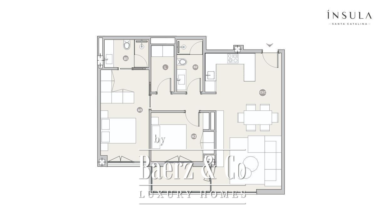 Apartment Palma in Santa Catalina provides an understated retreat amid one of the city’s most desirable quarters. This newly constructed residence, completed in 2025, exudes a quiet confidence, blending high-calibre materials with careful architectural execution. Spanning 111 m², the apartment comprises two refined bedrooms and two bathrooms, designed to enhance privacy and ease. The living area flows seamlessly into a terrace adjoining the kitchen and lounge, a vantage point for the Mediterranean light that defines the neighbourhood’s daily rhythm.