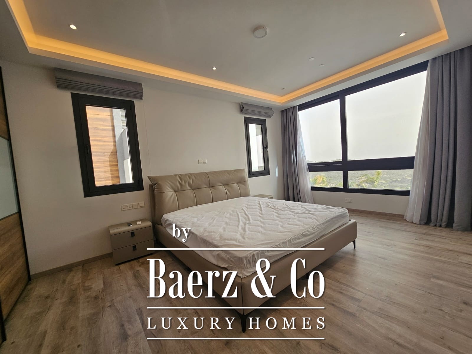 The primary living areas are oriented for natural light, while the villa’s layout accommodates four bedrooms, three bathrooms, and two guest WCs. Premium materials include tiled floors and aluminium double-glazed, energy-efficient windows. Underfloor heating, air conditioning, a ventilation system, and sound and thermal insulation ensure year-round comfort. An internal elevator and staircase connect all floors, emphasizing convenience and accessibility.