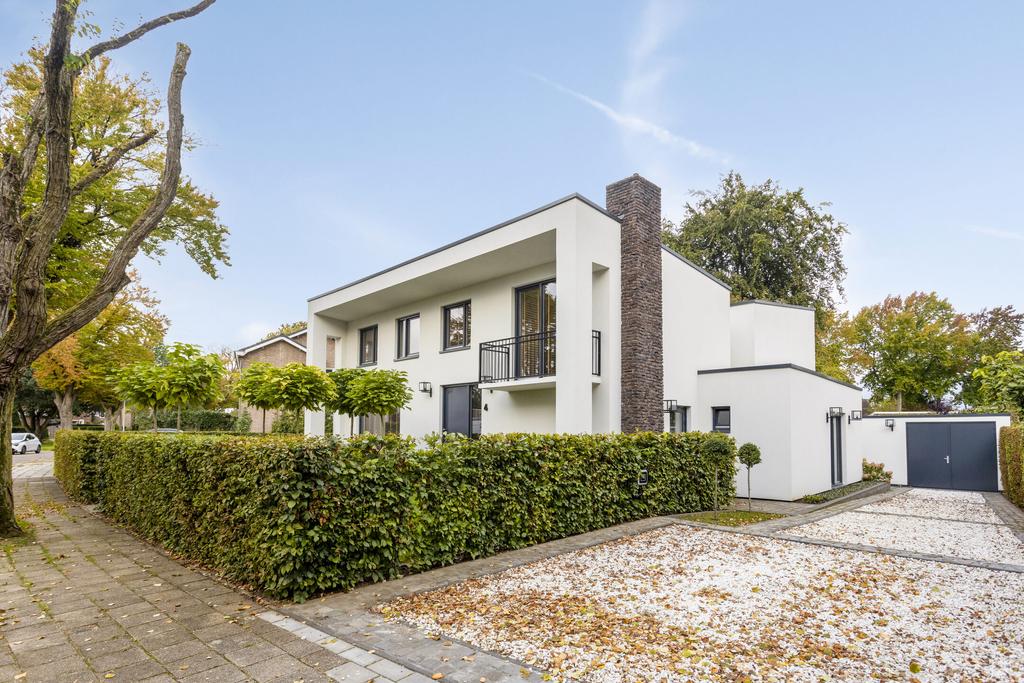 This unique, architecturally designed villa (Delft School style, 1957) offers a generous living space of approx. 235 m², featuring an outdoor swimming pool (2024), a separate guest house, and a garage. The entire property was completely renovated, modernized, and made sustainable between 2018 and 2021. This stunning home boasts three main living areas on the ground floor (living room, dining room, and kitchen-diner), three full-sized bedrooms, and a luxurious bathroom upstairs—all situated on a beautifully enclosed plot of 945 m² in the prime Roer-Zuid location.
