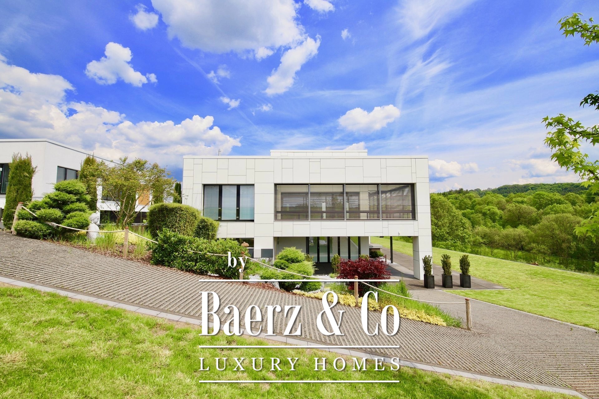 Villa Roth an der Our stands just beyond the Luxembourg border, surrounded by nature and offering an expansive 786 m² of ultra modern architecture on a plot of 3,167 m². This villa Roth an der Our is defined by its clean lines, panoramic vistas, and rigorous attention to detail. Vast glazed spaces flow into nature, turning light and horizon into a daily rhythm. The main building is anchored by two well-appointed kitchens, refined flooring in marble, parquet, and tile, and security systems offering discreet technology and ease—including fingerprint access and automatic locking doors.