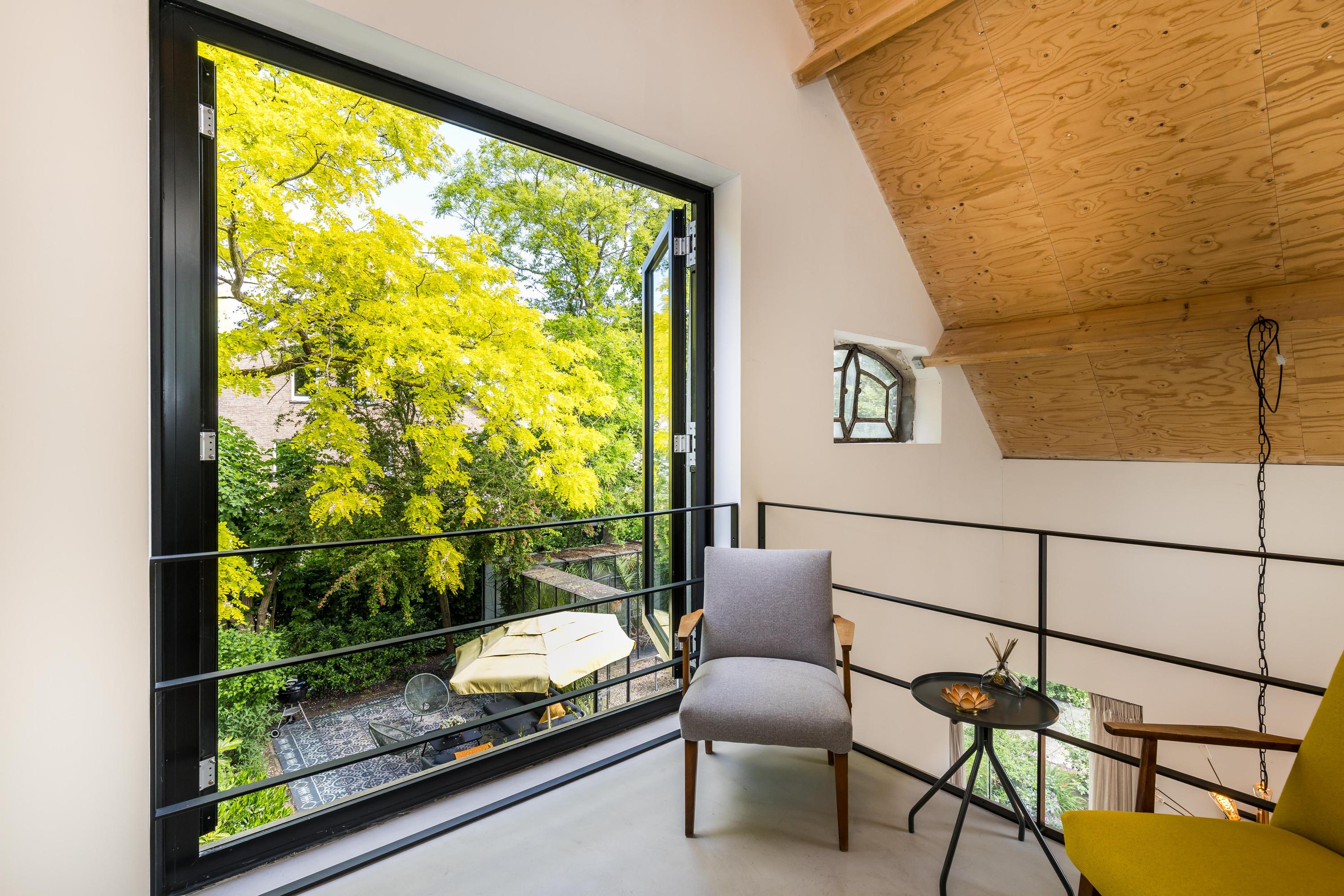 A unique addition to the house is the completely renovated former barn, which was transformed into a full-fledged living space in 2019. This 'back house' is connected to the original house at the front via passages on both the ground floor and the first floor. On the ground floor there is a beautiful, bright open plan kitchen, perfect for cozy dinners and get-togethers. A spacious bedroom has been created on the first floor, which can also serve as an ideal office or office. The back house is also suitable as a separate living space.