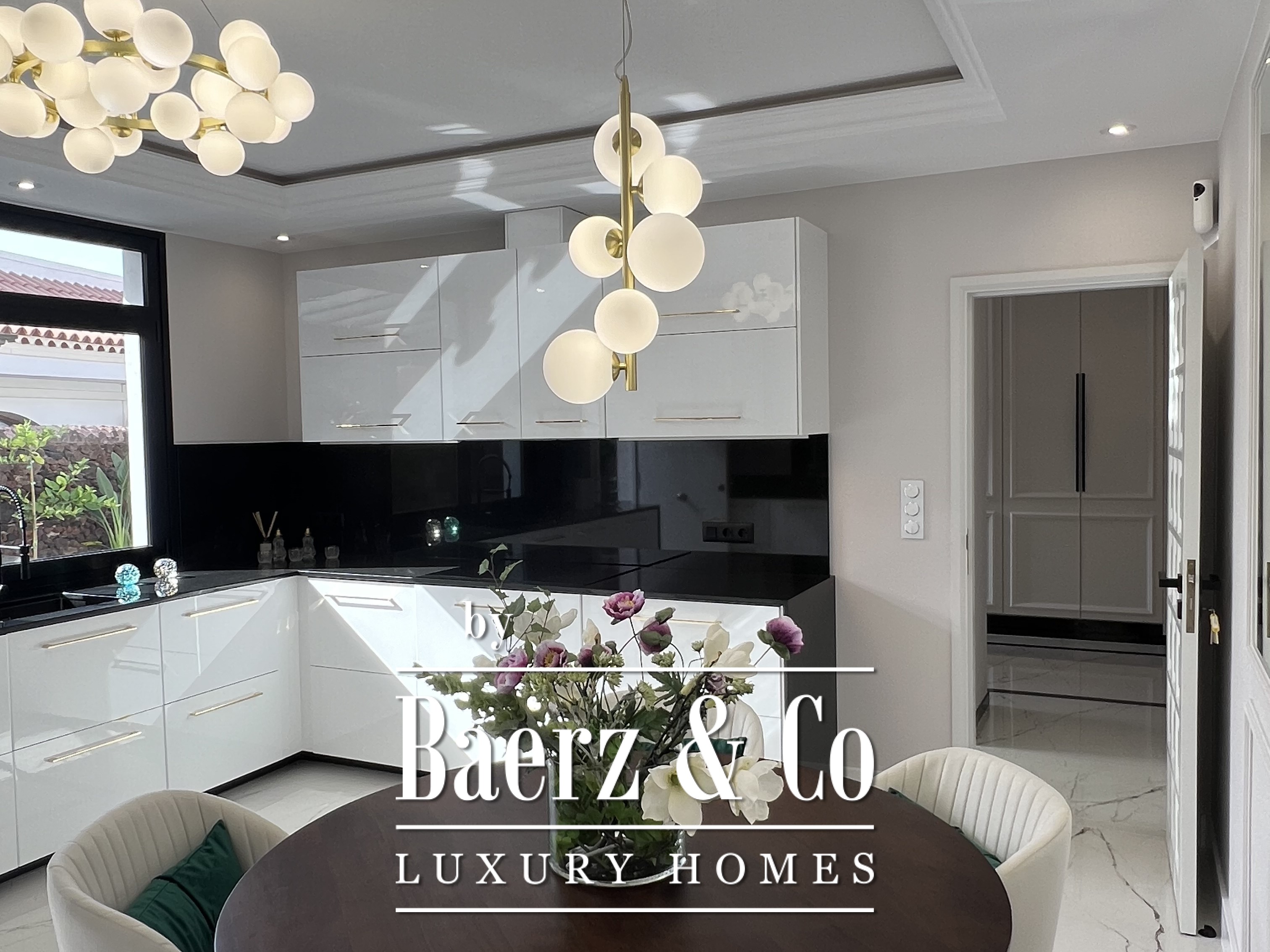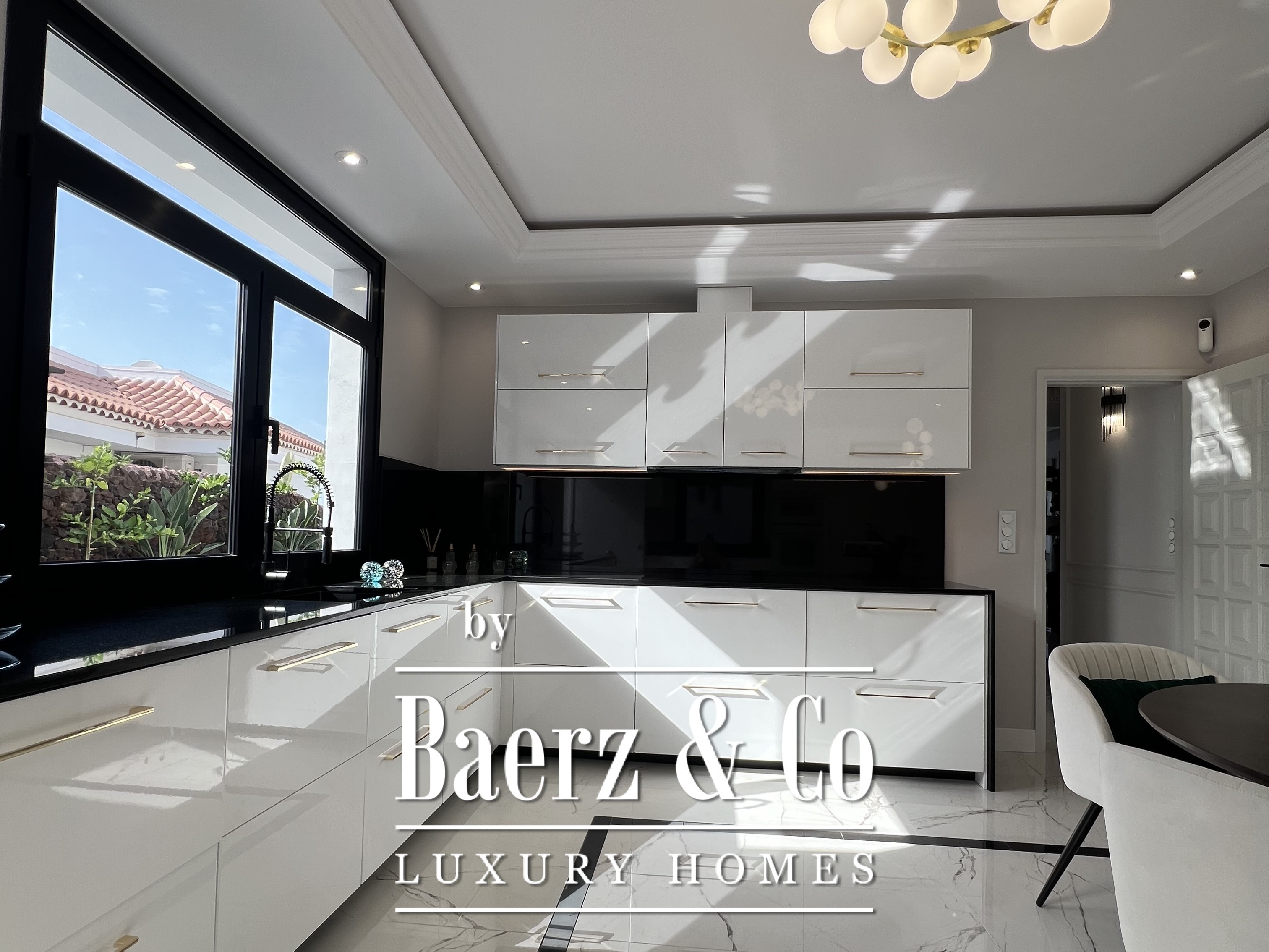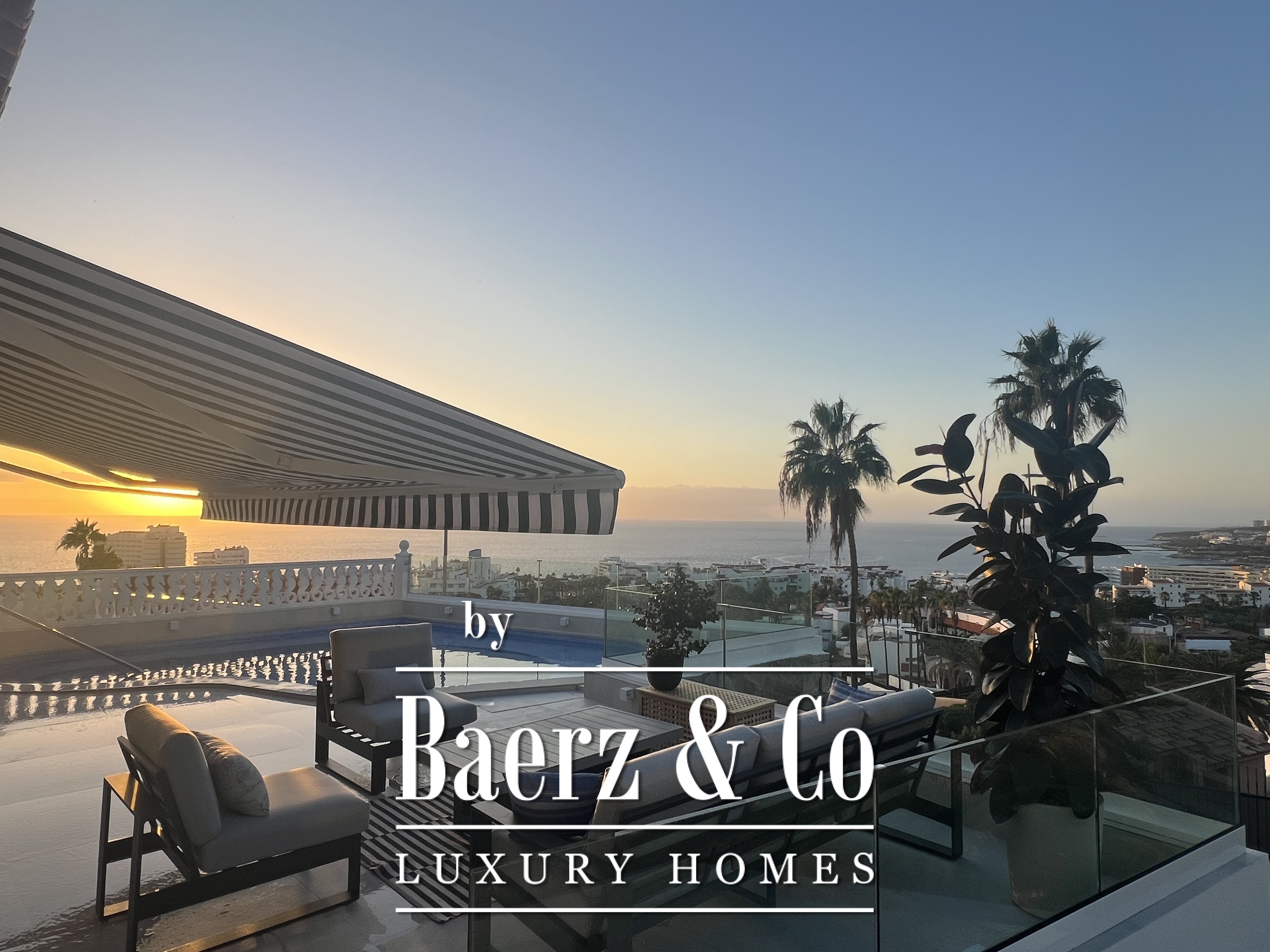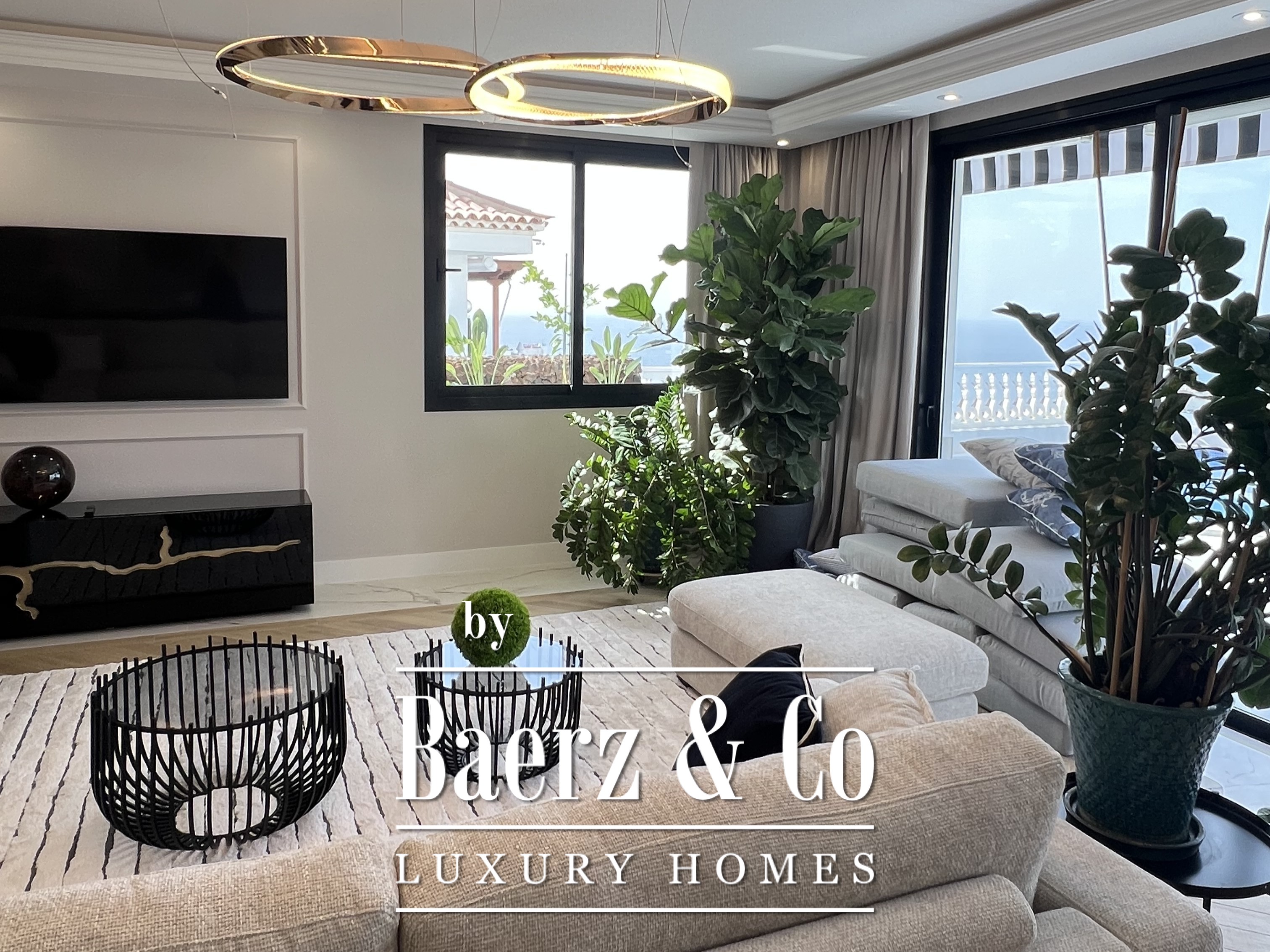 Villa San Eugenio anchors itself quietly within southern Tenerife, offering a calm interpretation of island living with ocean and coastline views. This villa, fully renovated and offered at €2,700,000, delivers a measured balance of openness and discretion across 255 m² of interior space, all on a generous 504 m² plot. The focus keyword, villa San Eugenio, identifies a residence where daily rhythms unfold across lush terraces and fluid living areas, with three main bedrooms positioned on a single level for comfort and continuity.