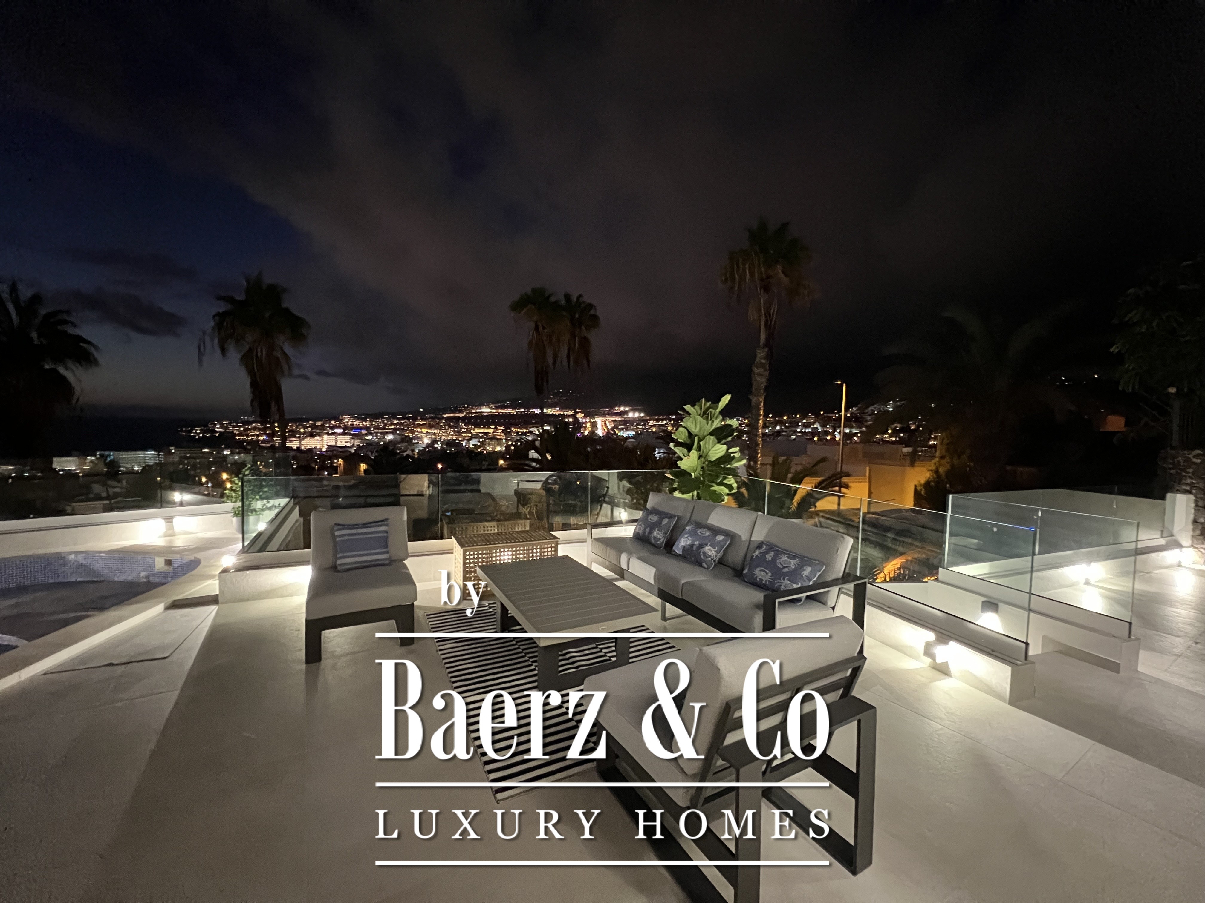Essential features include air conditioning, double glazing, fitted wardrobes, an alarm system, and a private garage for two cars. The rooftop terrace, at 85 m², offers elevated privacy, an ideal setting for gatherings or quiet reflection above the coastline. Nearby, Costa Adeje’s beaches, international school, golf course, and luxury shopping are within easy reach, with Tenerife South airport a brief drive away. This luxury villa for sale in San Eugenio is a statement of comfort and position for those who value space, privacy, and an assured connection to the island’s finest offerings.