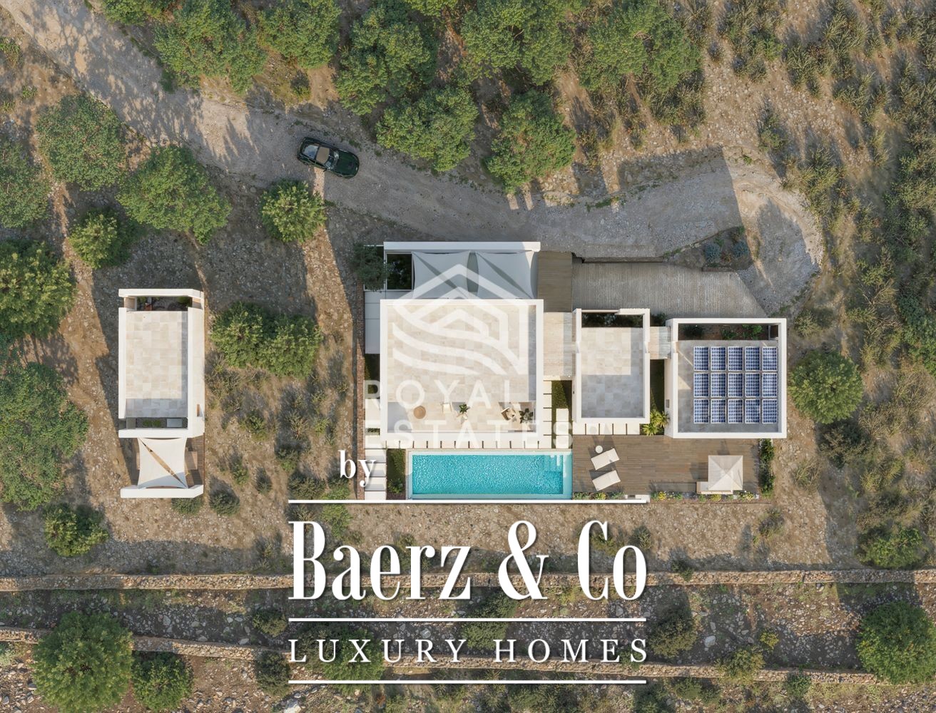 The development concept presents a contemporary take on traditional Ibizan architecture, defined by clean volumes, natural materials and an open flow between interiors and the outdoors. A granted building permit enables a swift move from vision to construction. The planned residence offers approximately 520 m² of built space with five bedrooms and five bathrooms, including distinct suites for family and guests. Interior design centers on abundant natural light and continuous movement between living, dining, terraces and pool area.