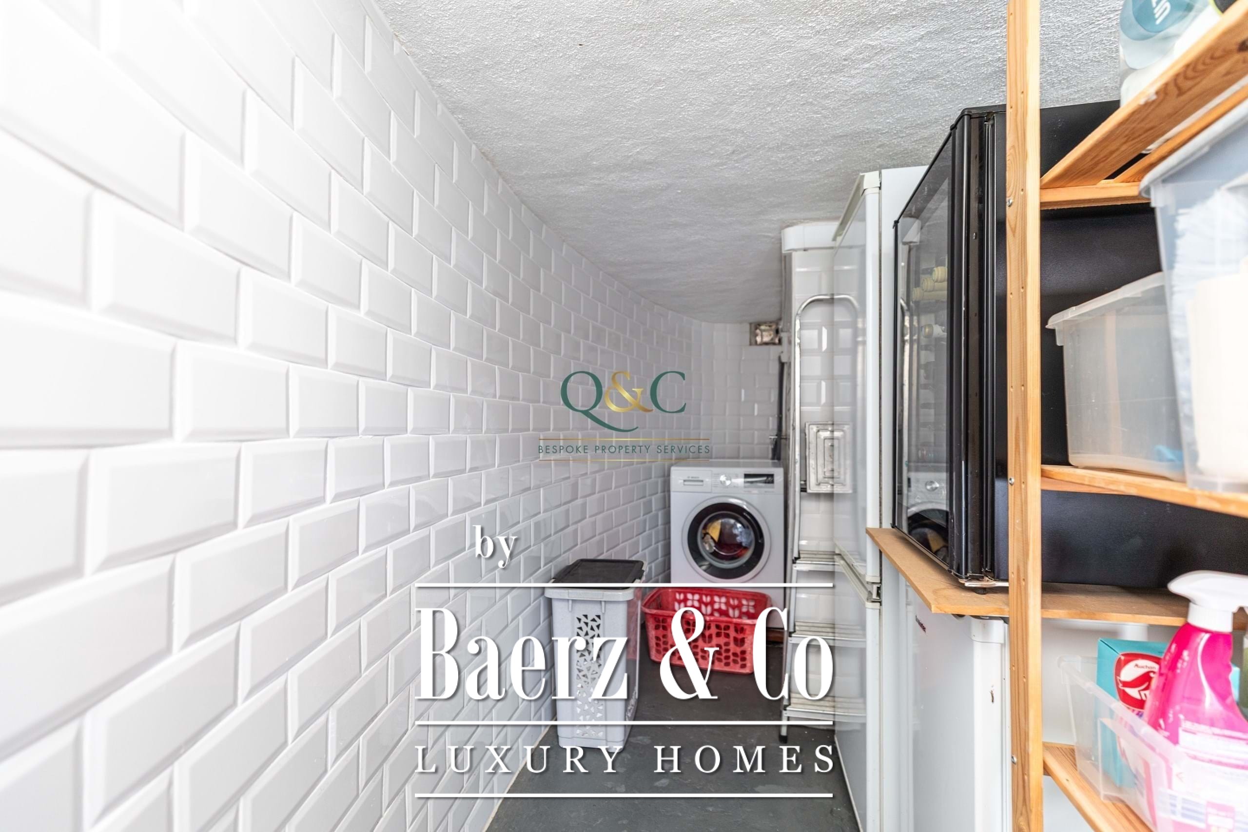 A useful utility room is conveniently located near the entrance, while a standalone, fully insulated wooden studio complete with air conditioning and currently used as a music room offers endless possibilities for work, hobbies, or relaxation.