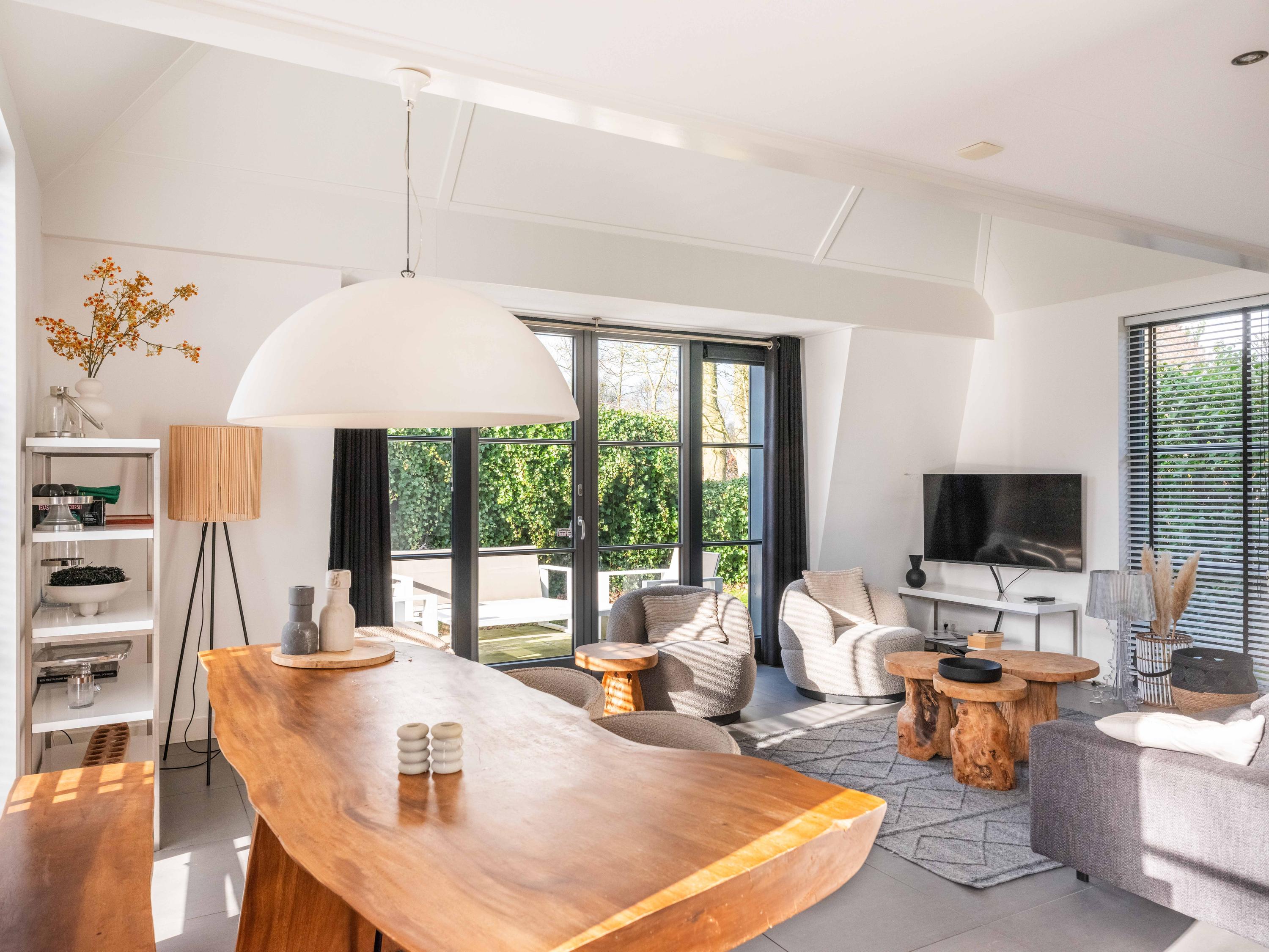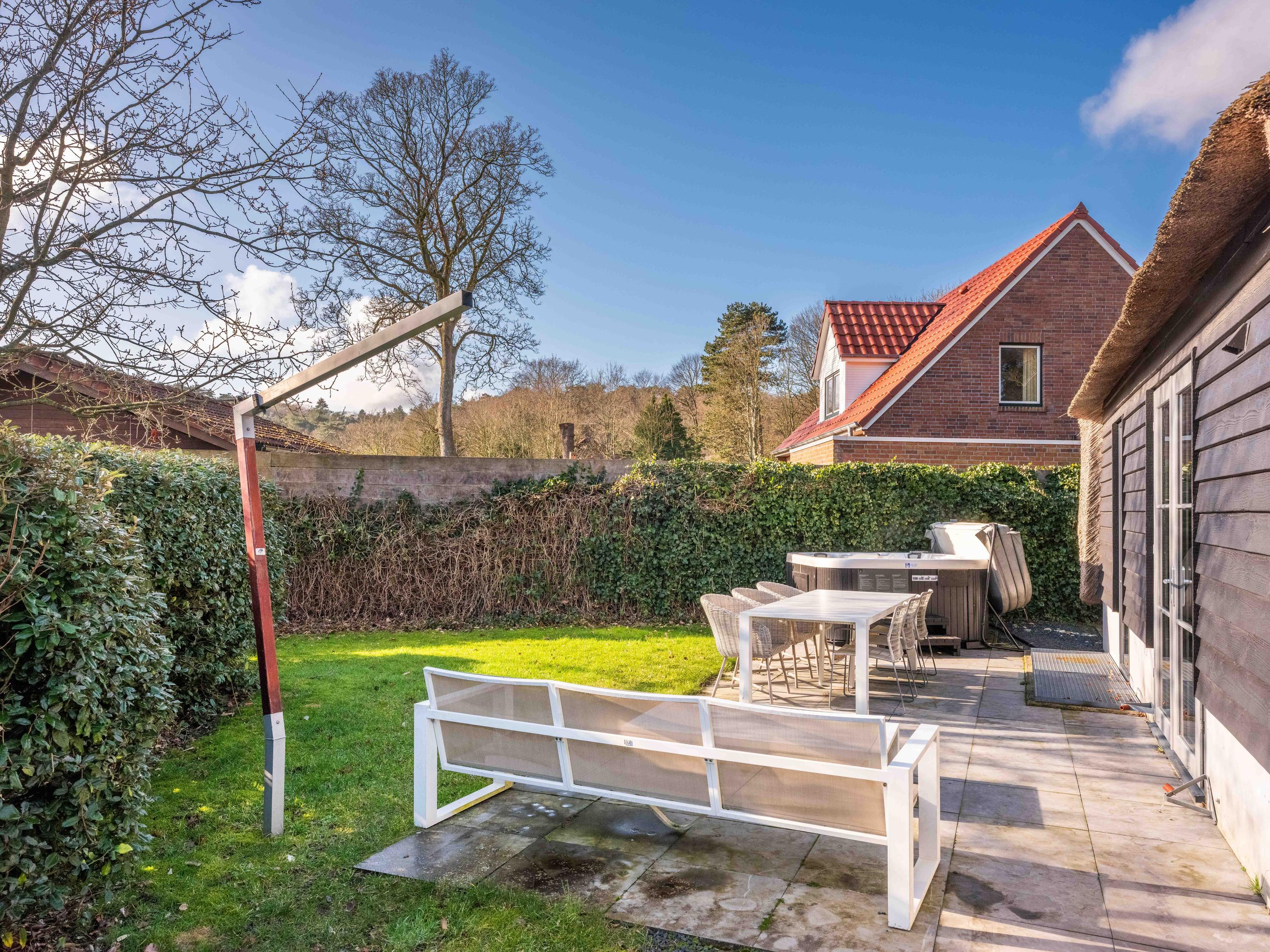 De tuin is heerlijk groen en biedt veel privacy. Hier vindt u een jacuzzi en zowel aan de voor- als achterzijde een terras. Daarnaast is er een eigen parkeerplaats met een laadpaal.