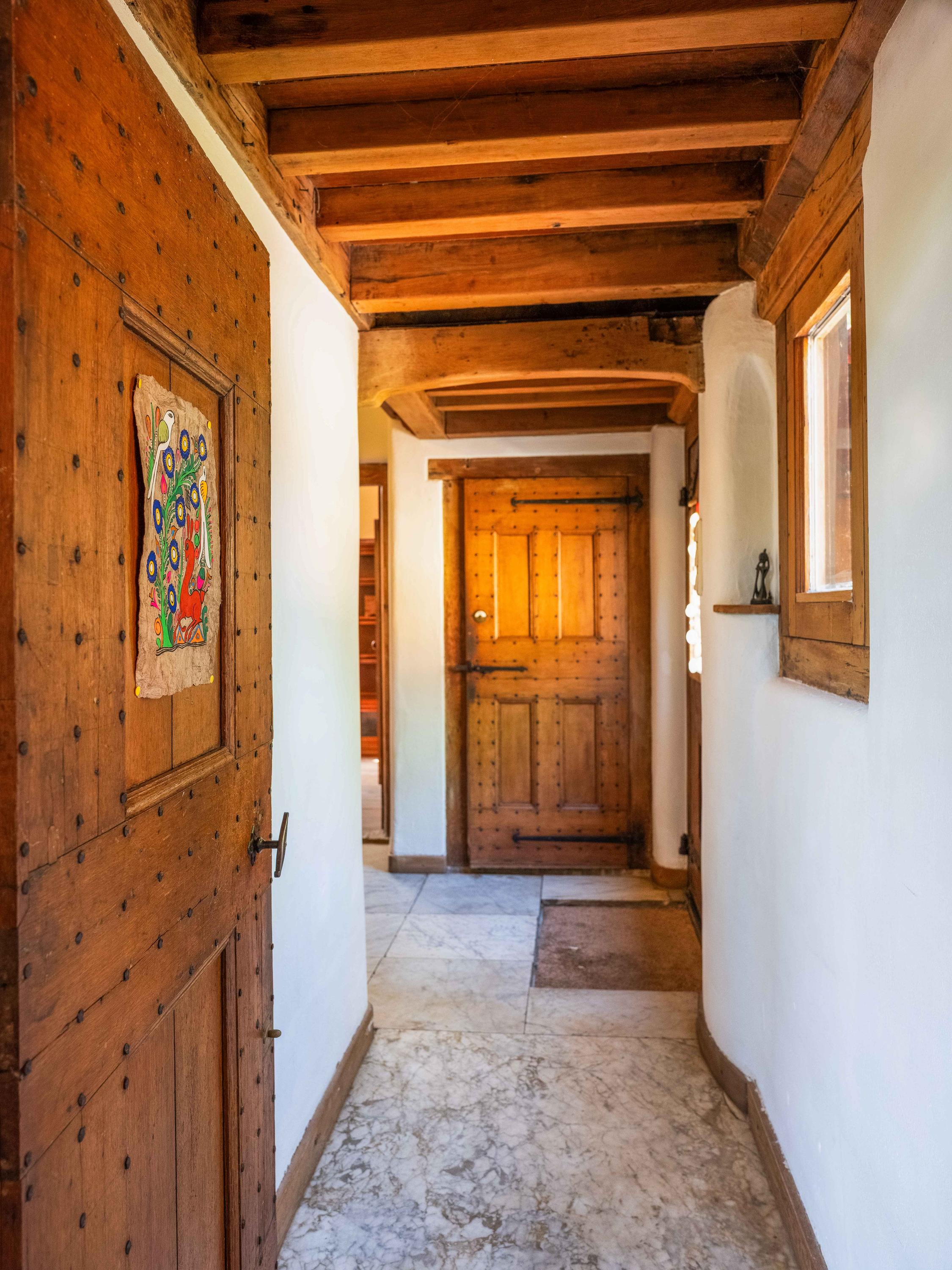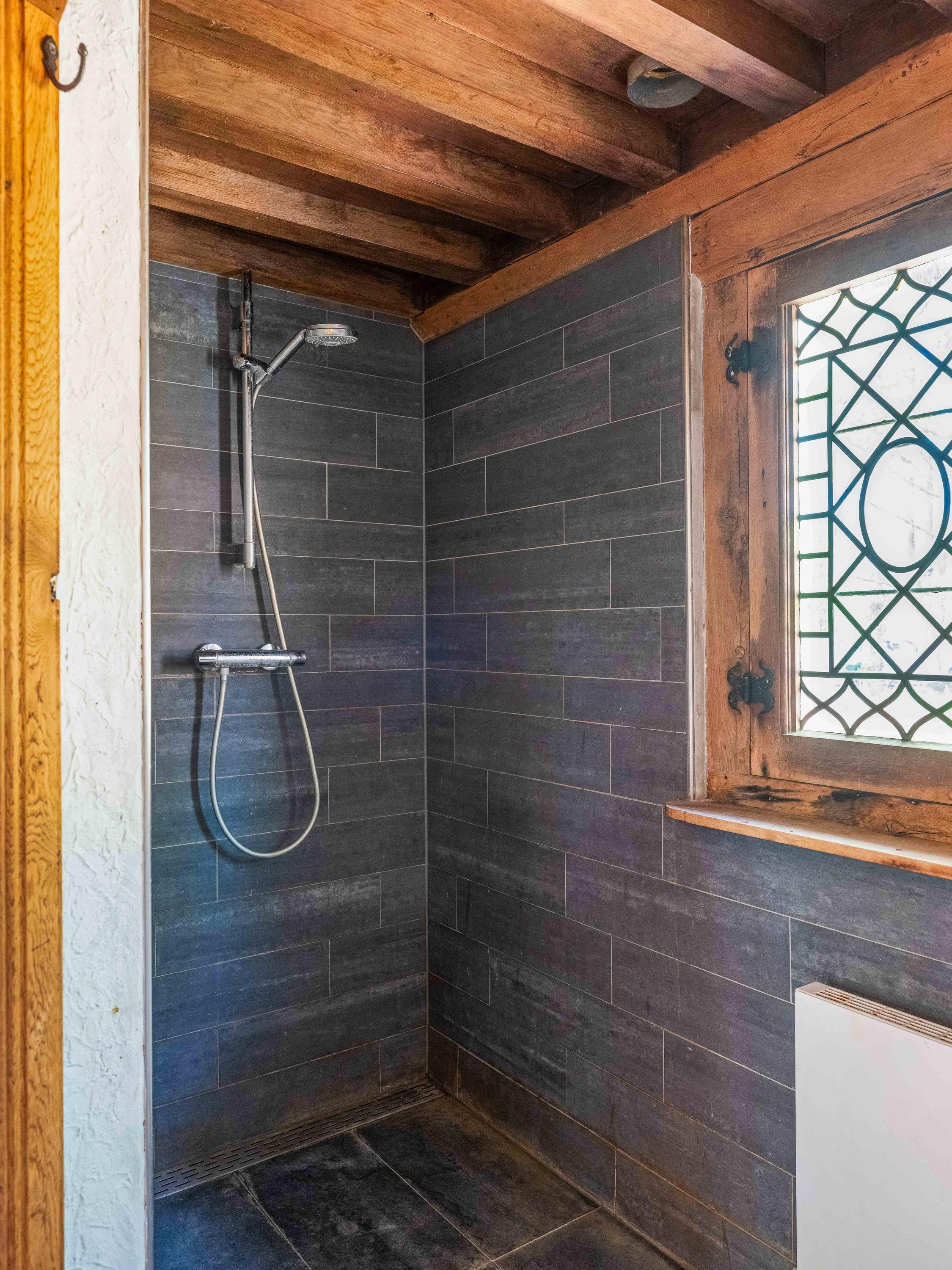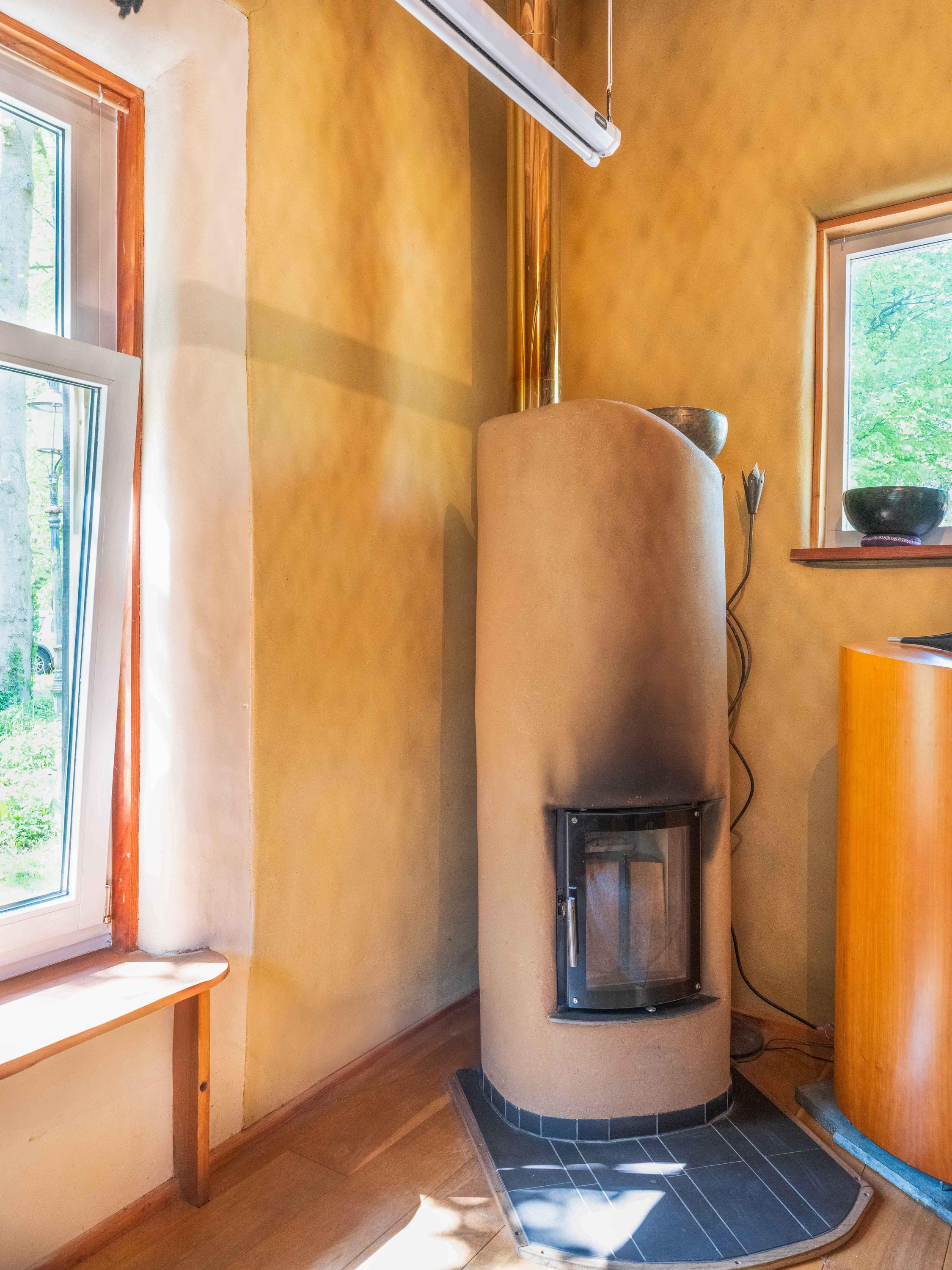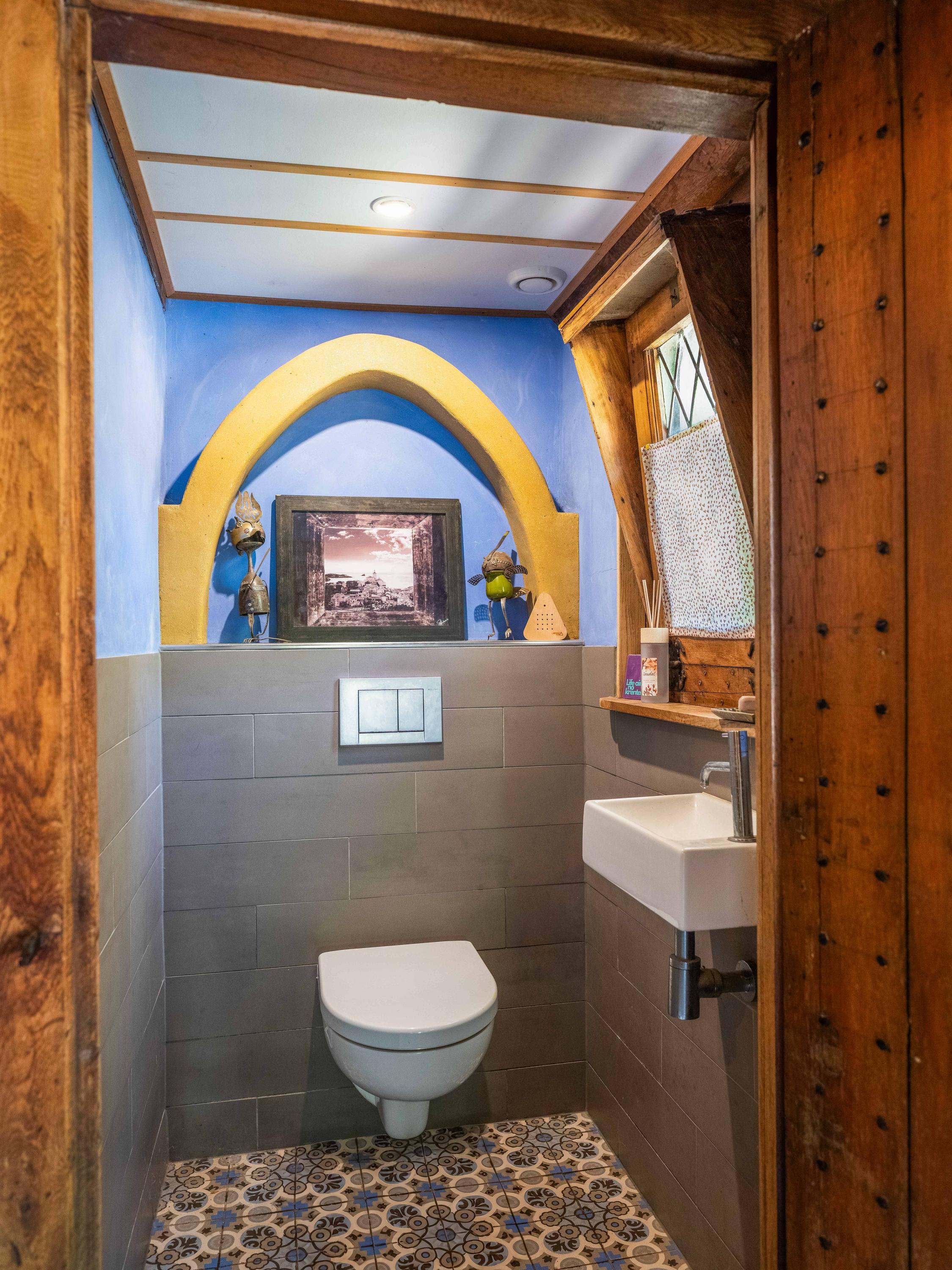Constructed using 17th-century materials, the main house echoes its heritage with robust fireplaces, exposed oak beams, clay-plastered walls, and expansive oak flooring. The generous living area of 273 m² unfolds into quiet nooks and sunlit rooms, including a garden-facing living room warmed by a fireplace, an inviting front living space with a raised alcove, and an attached office that inspires focus looking into the grounds. Modern comforts blend with history, including a bathroom finished in tadelakt and energy delivered by a central heating system.