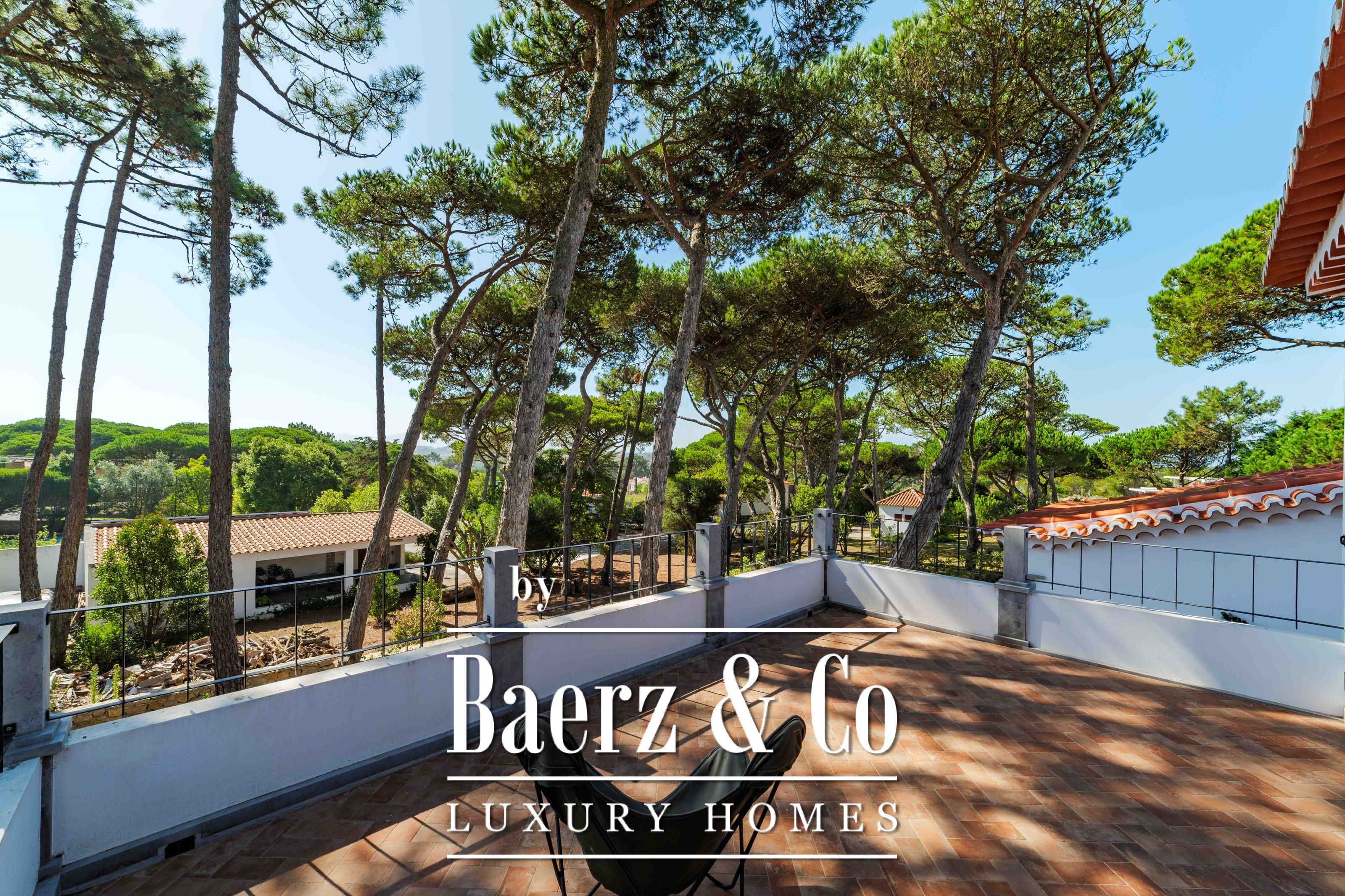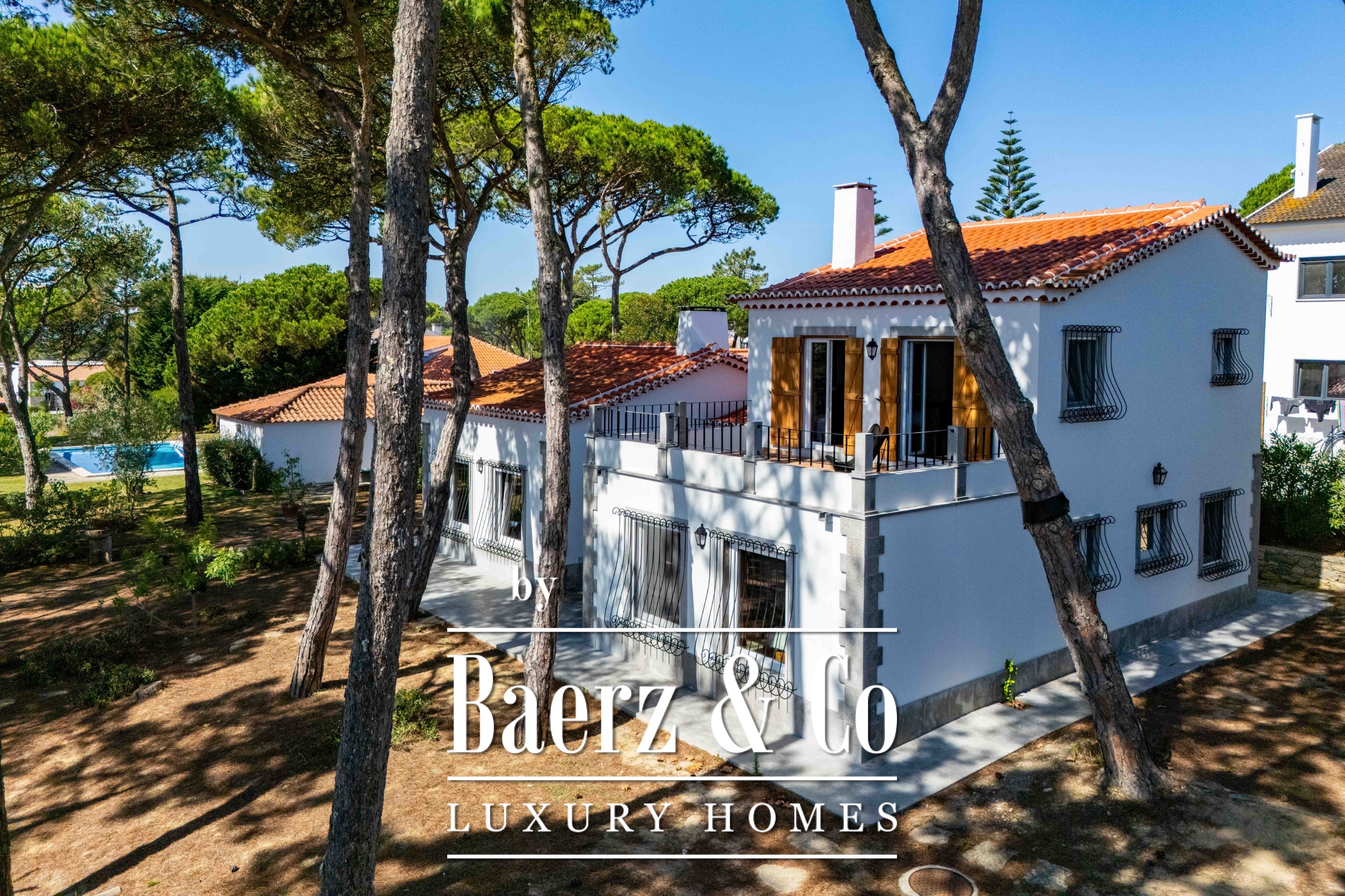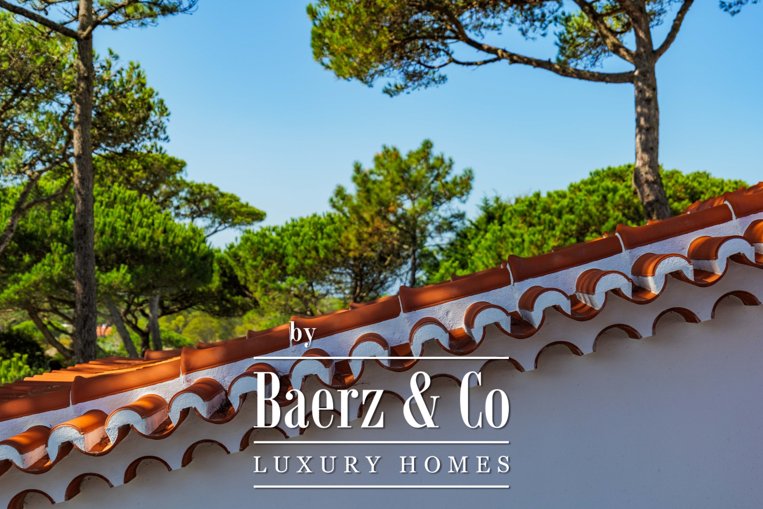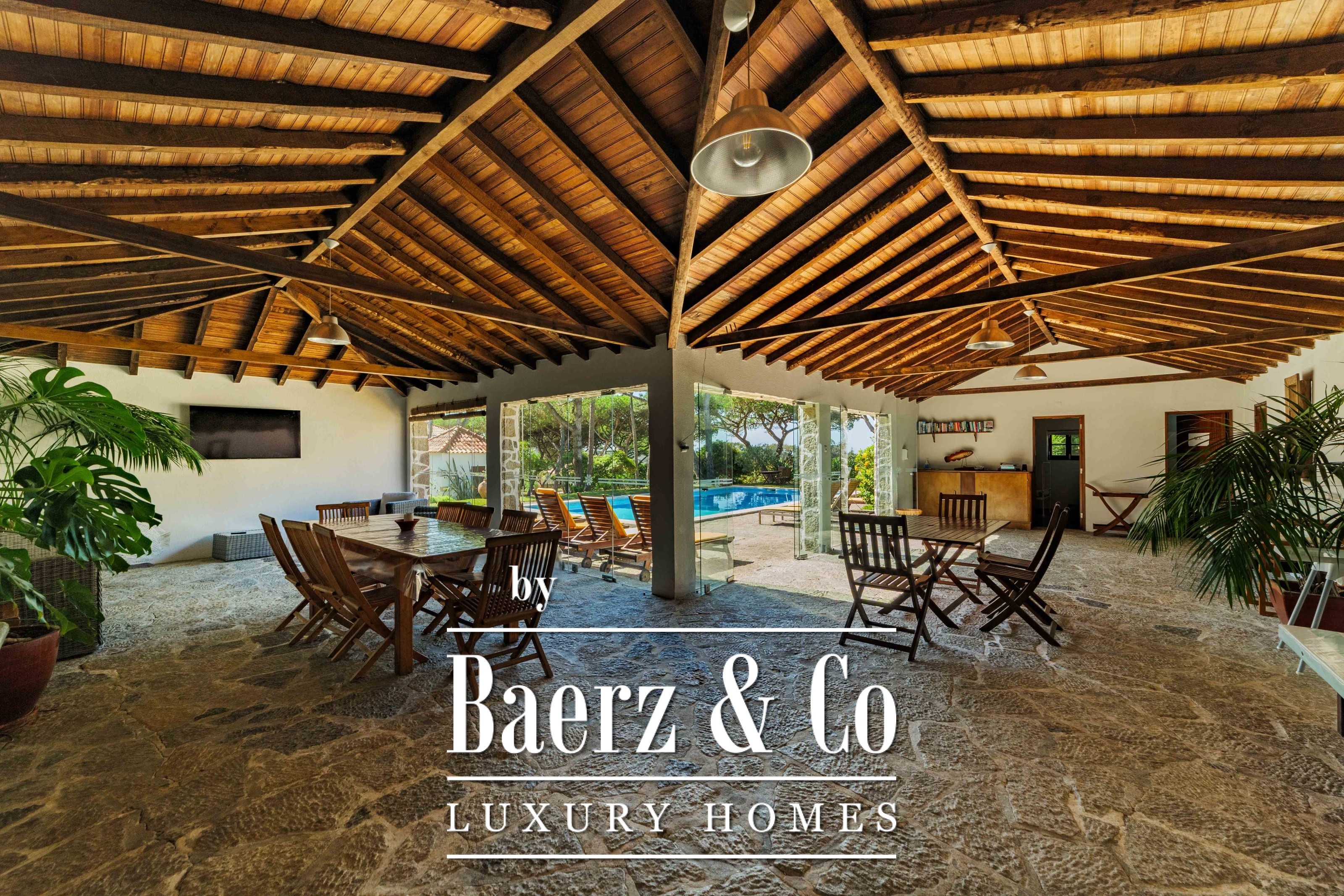 Villa Sintra with garden and sea views blends twentieth-century Portuguese architecture with contemporary sophistication. Set on 2,341 m² of landscaped gardens just five minutes from Praia do Magoito, the main house and guest accommodation are surrounded by mature pine trees under spacious skies.