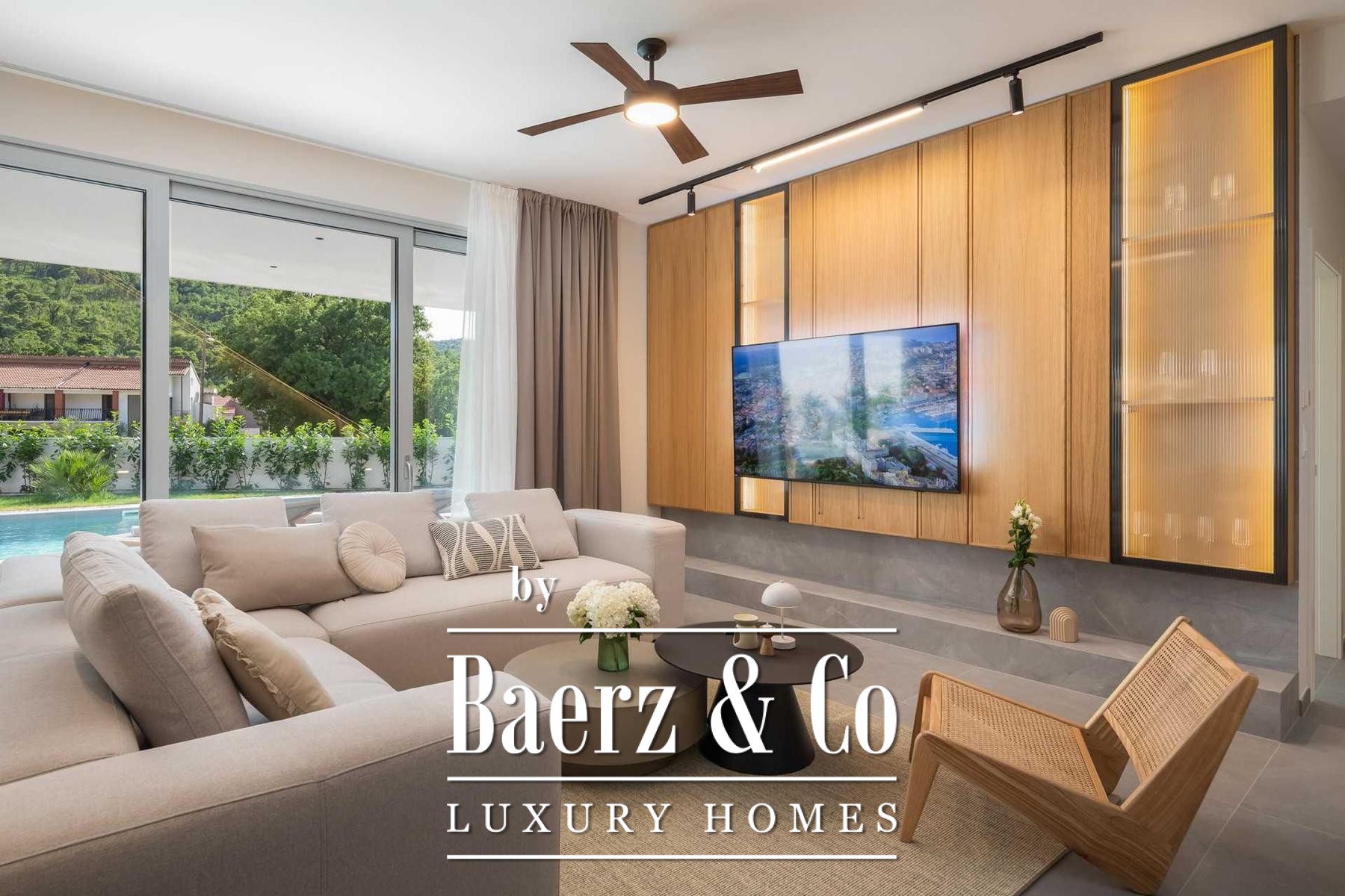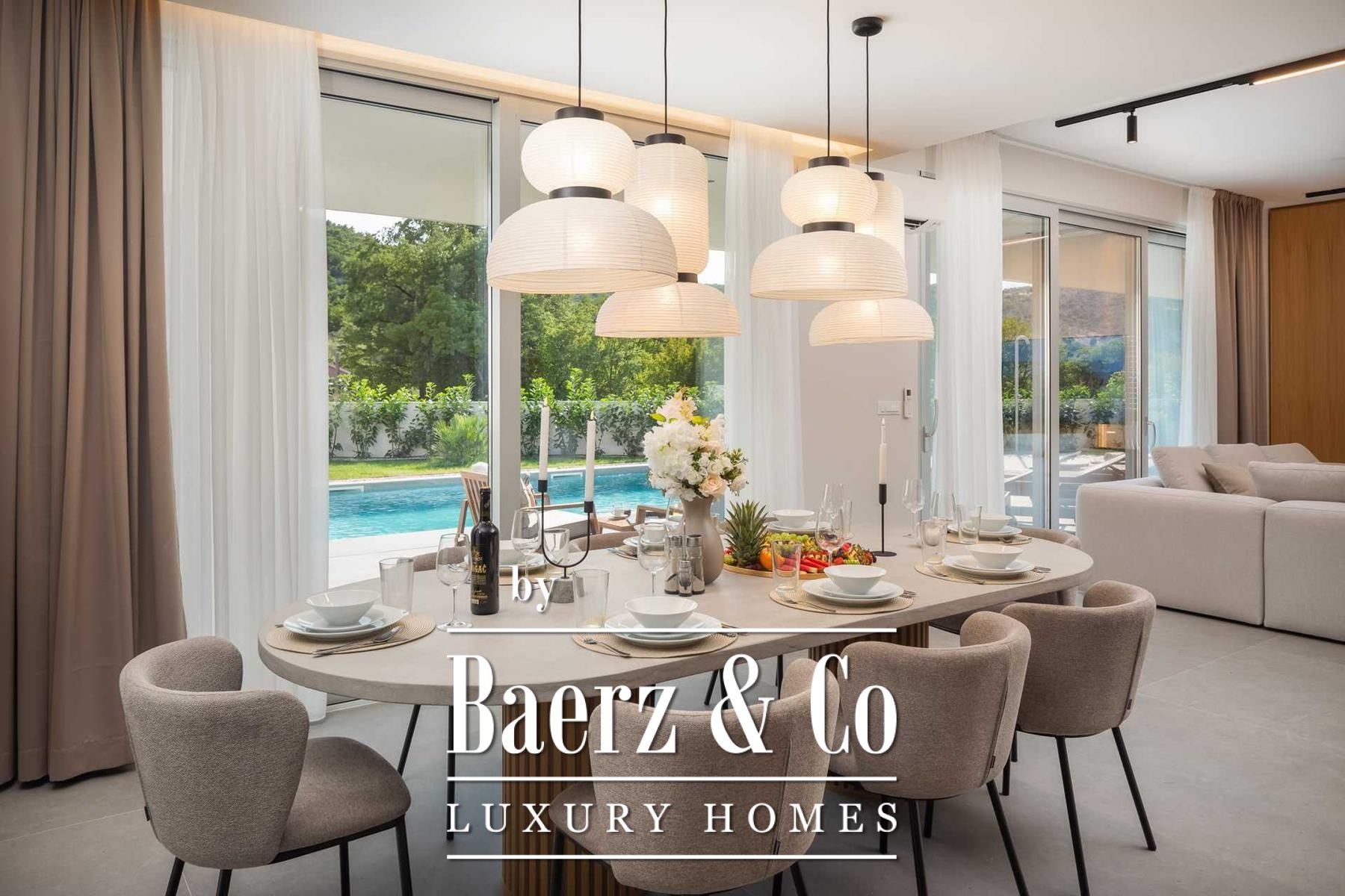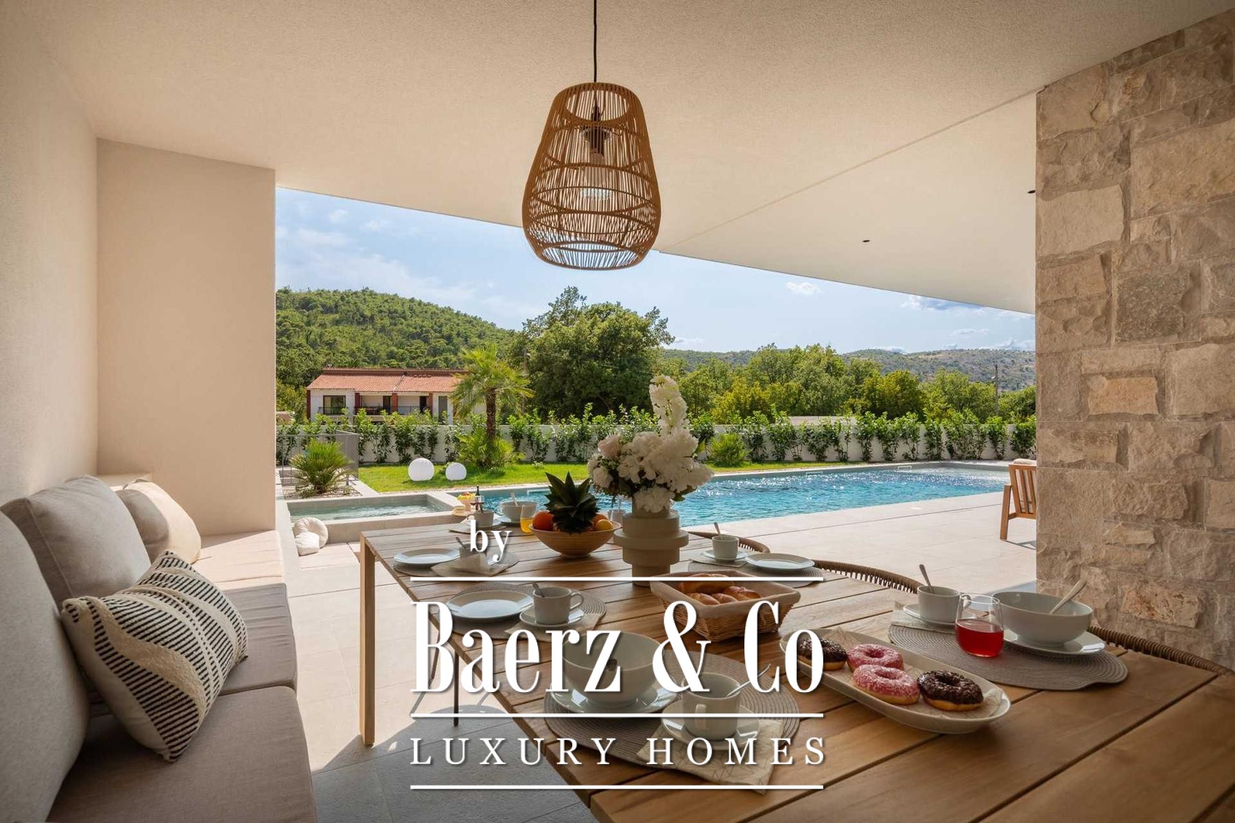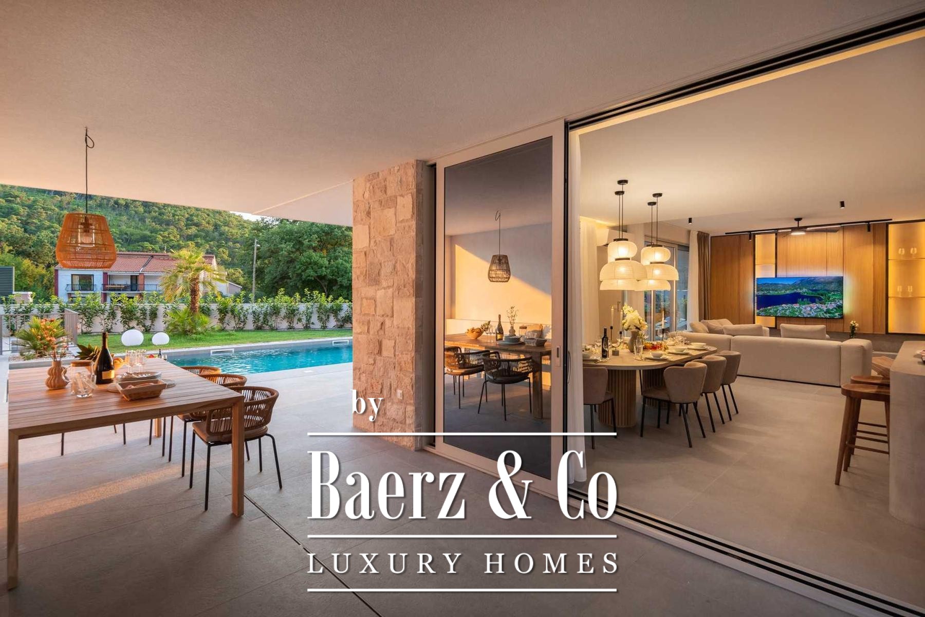 Villa Split Okolica offers a contemporary retreat on a generous 2,090 m² plot, distinguished by privacy and refined spatial planning. This villa’s 330 m² of living area unfolds over two levels, each crafted for balance between private sanctuary and versatile entertaining.