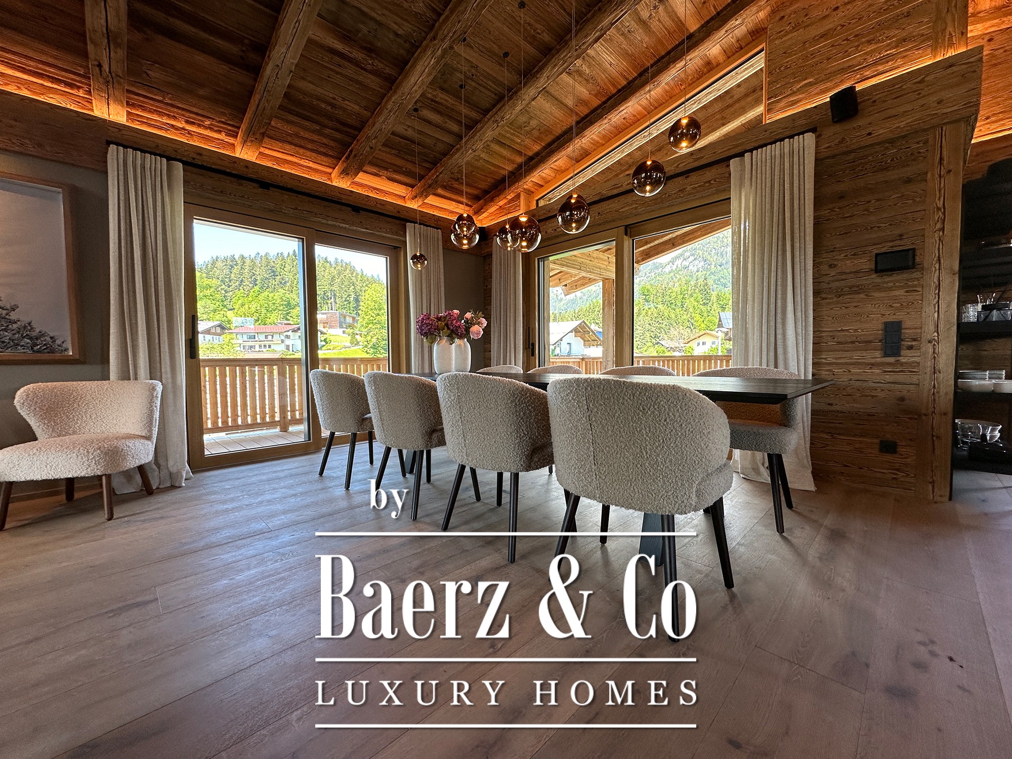 Town house St. Johann in Tirol sets an exacting standard for luxurious alpine living, with a total size of approximately 340 m² and breathtaking views that frame the Wilder Kaiser and the Kitzbüheler Horn. This newly completed chalet, sold fully furnished, balances a traditional Tyrolean aesthetic—including exposed wood beam ceilings, stone and wood facades, reclaimed elements—with refined contemporary comforts designed for privacy and memorable gatherings.