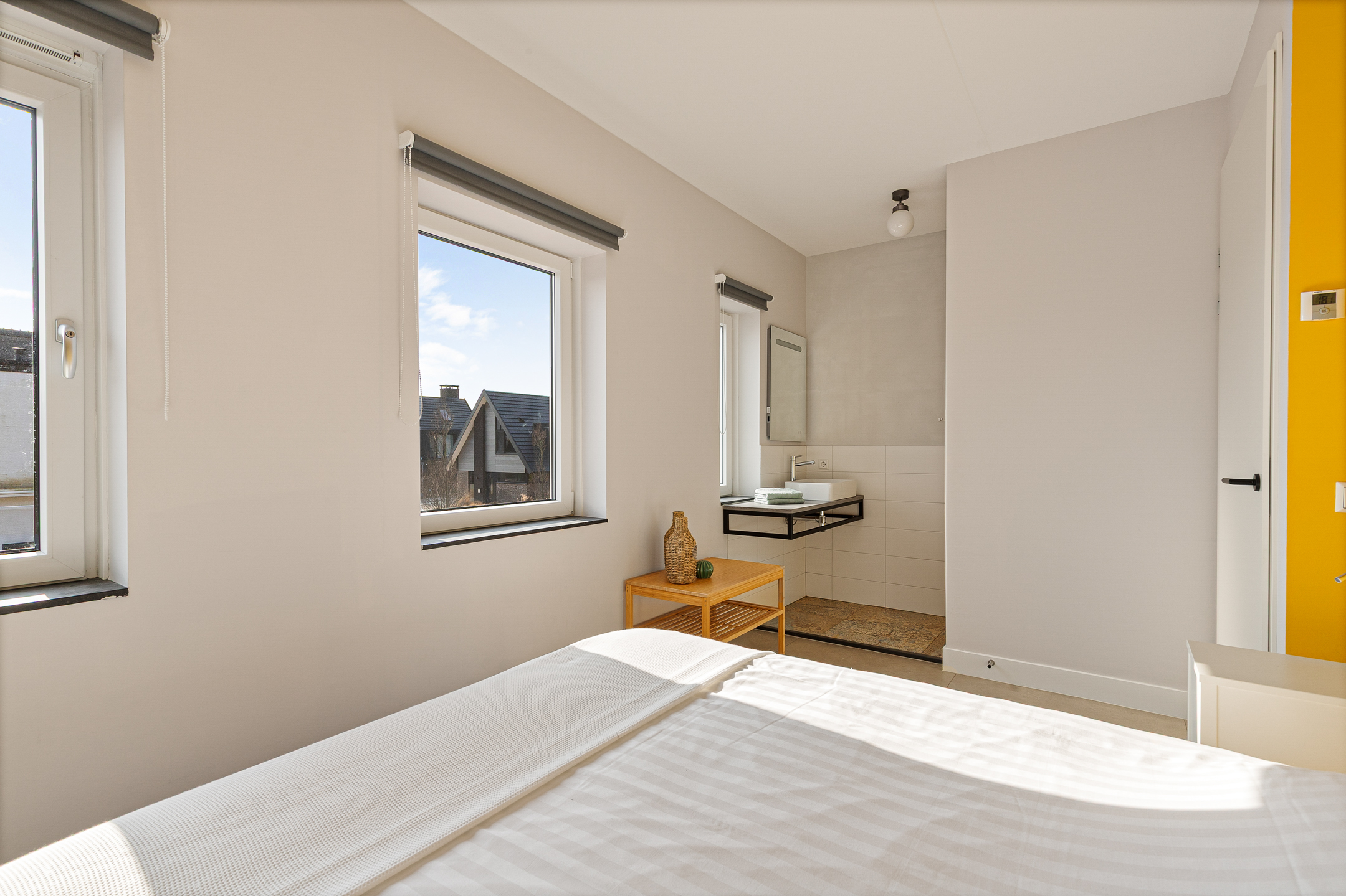 Via een vaste trap bereikt u de tweede verdieping met de vierde en vijfde royale slaapkamers, eveneens voorzien van eigen badkamers. De hoge plafonds met stoere balken in het zicht geven de kamers een ruimtelijk loft gevoel. Vanaf deze verdieping heeft u een bijzonder uitzicht over de omgeving en bij helder weer is zelfs de overkant van het IJsselmeer te zien. Ook hier zijn de kamers individueel qua temperatuur in te regelen. Op de overloop is een derde toilet, ruimte voor de witgoedopstelling en een toegang naar de technische ruimte.