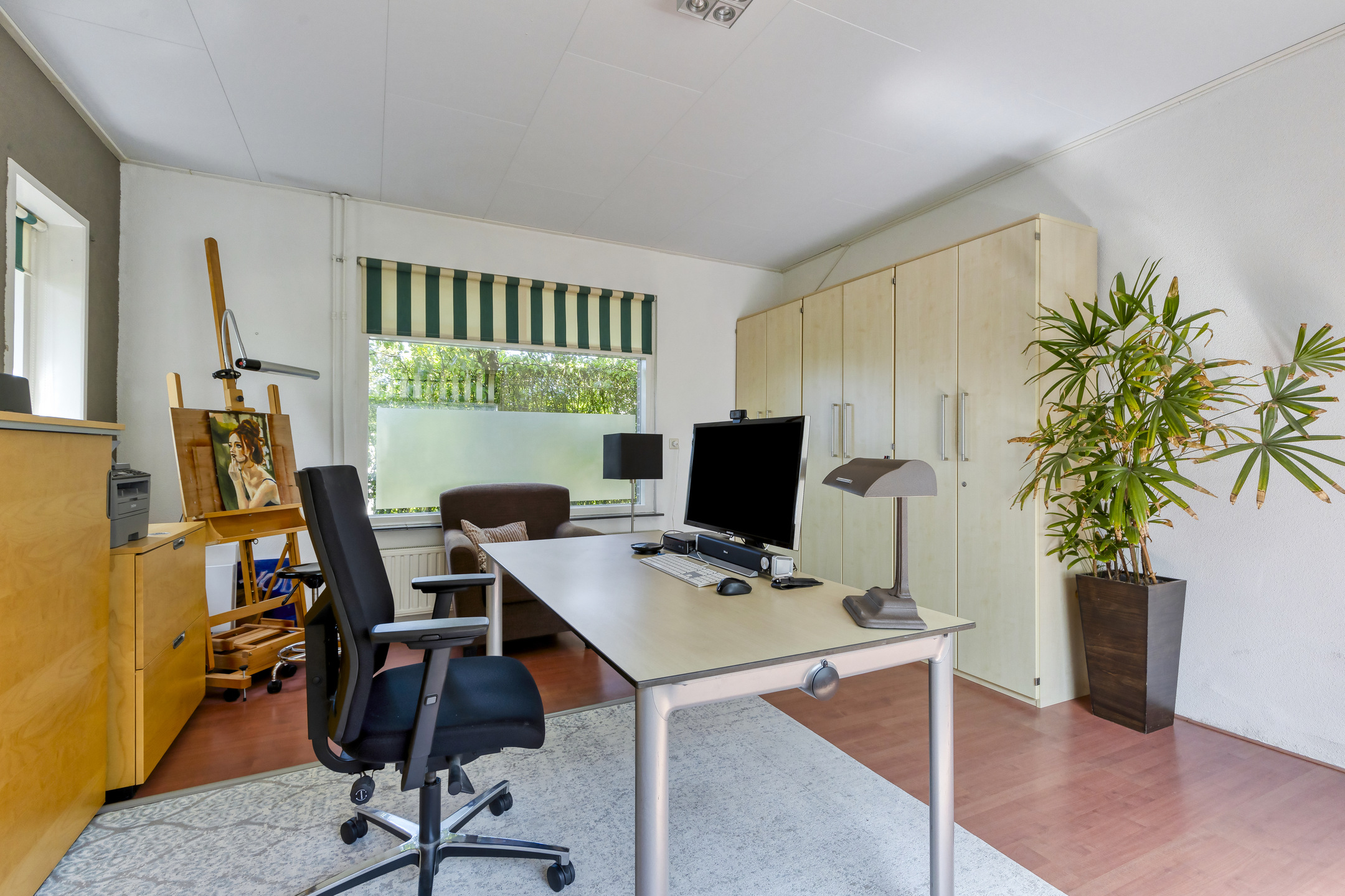slaap-/werk-/hobbykamer, wandafwerking spuitwerk, laminaatvloer, plafond afgewerkt met agnesplaten;
