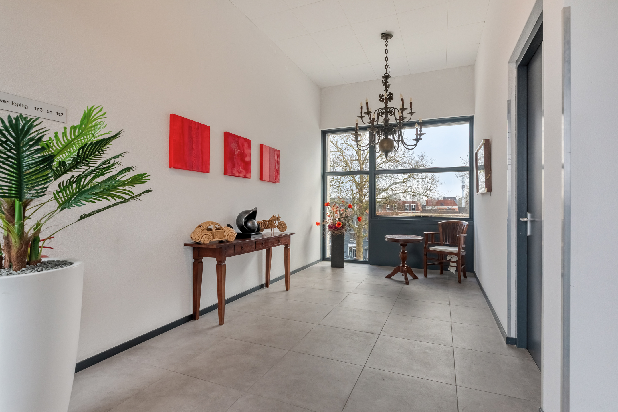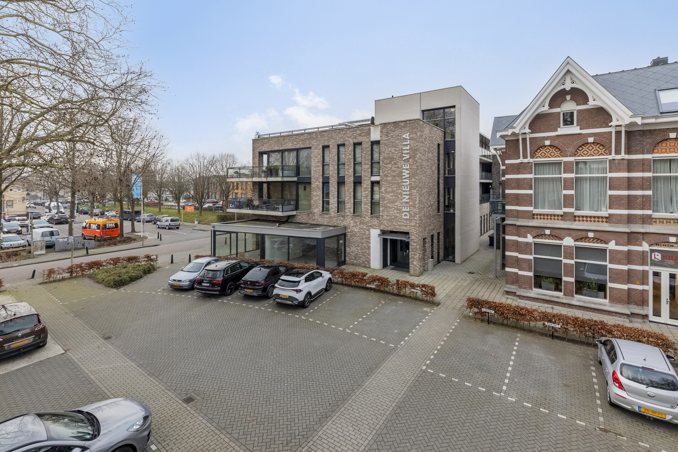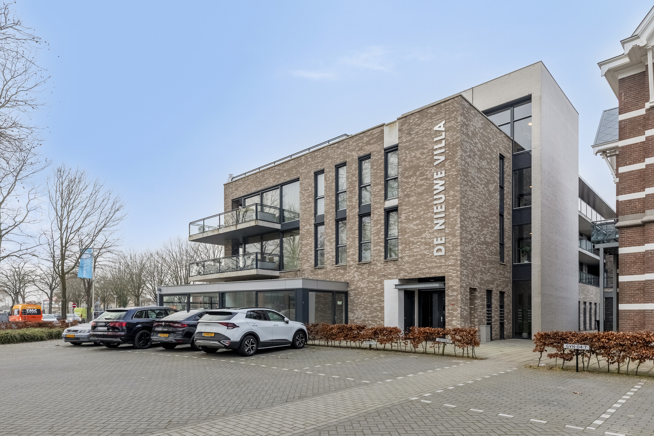 You arrive at the apartment complex ‘De Nieuwe Villa’ (2018), park your car in one of the two private parking spaces, and walk towards the central hall.