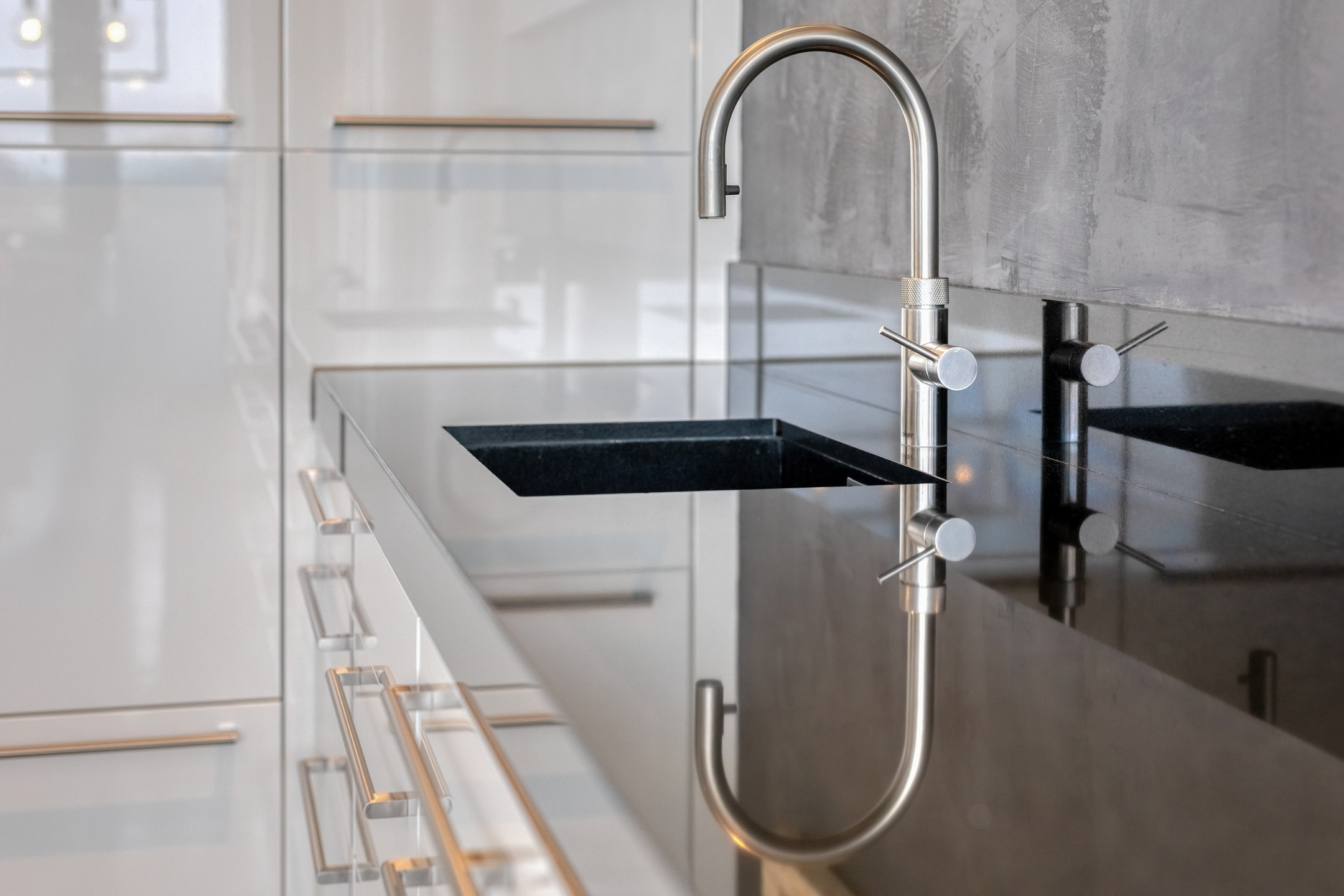 • Attention chefs! This Poggenpohl kitchen with cooking island, steam oven, double ovens, and coffee machine ensures that every dish feels like a five-star experience.