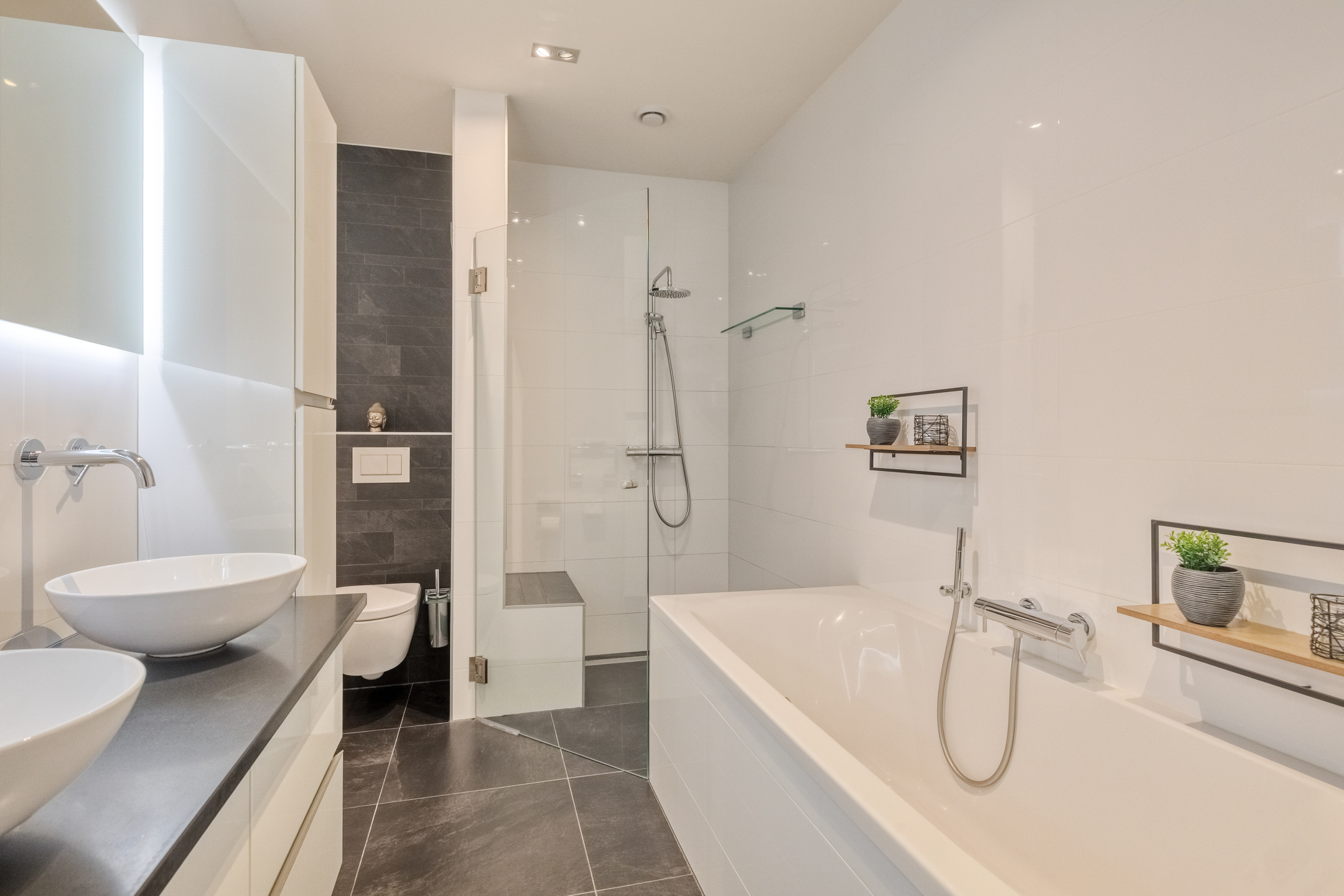• From a relaxing bath to an energizing start under the Sunshower: this modern bathroom is your private wellness resort, day in, day out.