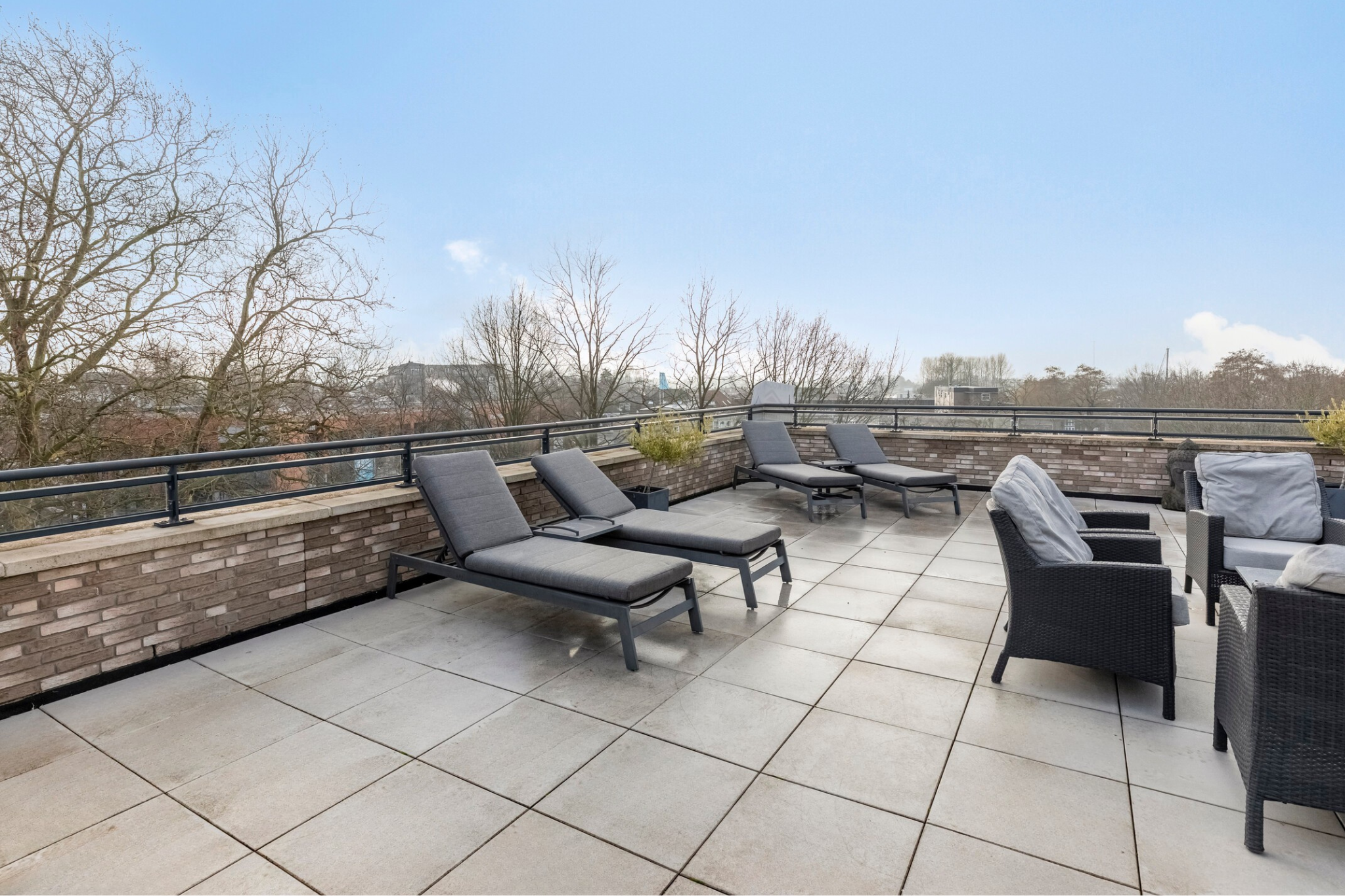 Step onto the spacious rooftop terrace of approx. 165 m² and experience the ultimate sense of freedom and space. Facing the sunny west, this terrace provides the perfect setting for any outdoor activity: relaxing in a comfortable lounge area, hosting drinks with friends, or simply enjoying outdoor living and the breathtaking views over the city and the horizon.
