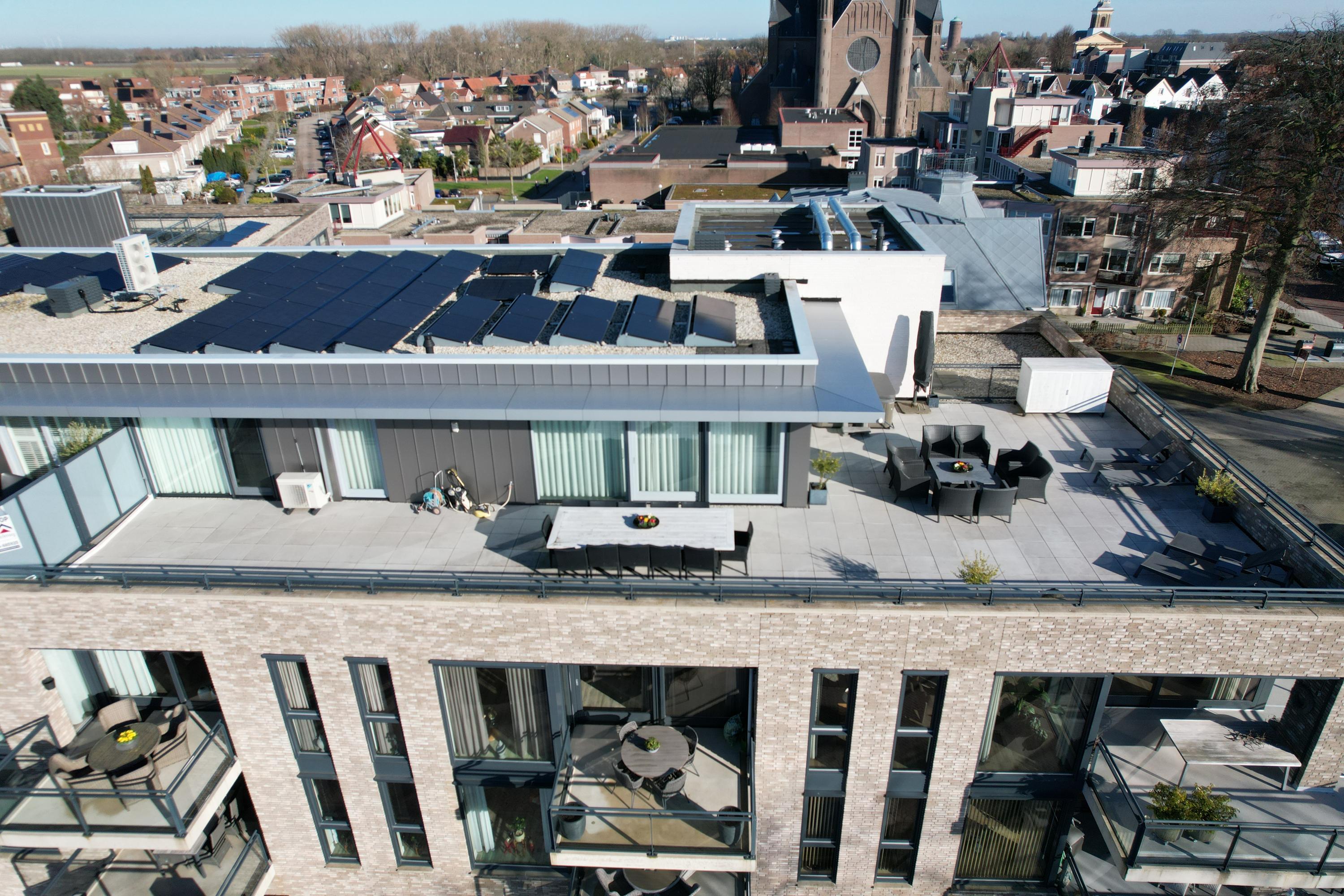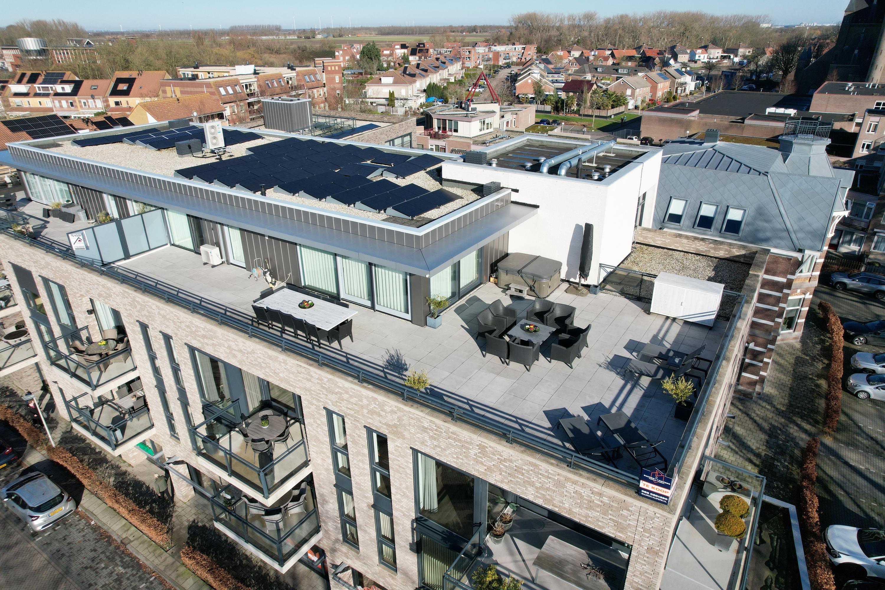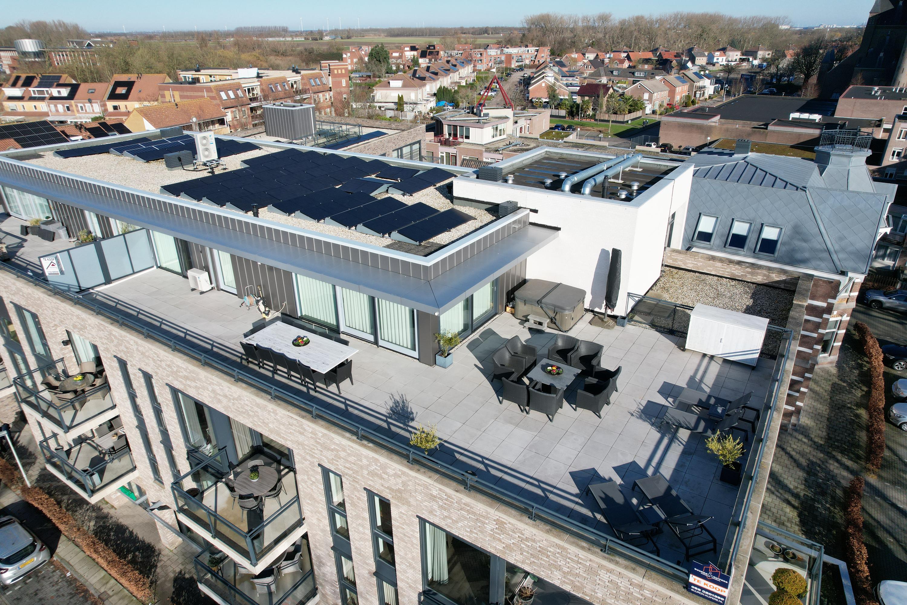 • Living for now and for the future. This penthouse, complete with 10 solar panels, 2 air-conditioning units, fully equipped with underfloor heating, and an A energy label, is designed for years of comfortable living.