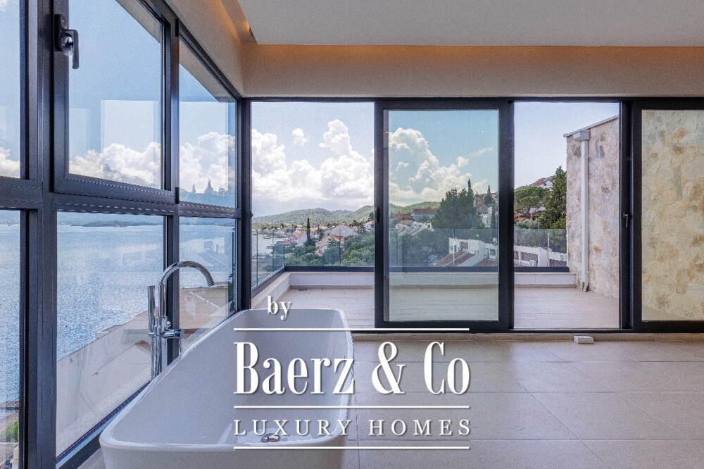 The interior has an author's design with a set of several lighting scenarios. Italian ceramic tiles of the highest quality were used in the decoration, climate systems and ventilation, heated floors, and fireplaces were installed.
