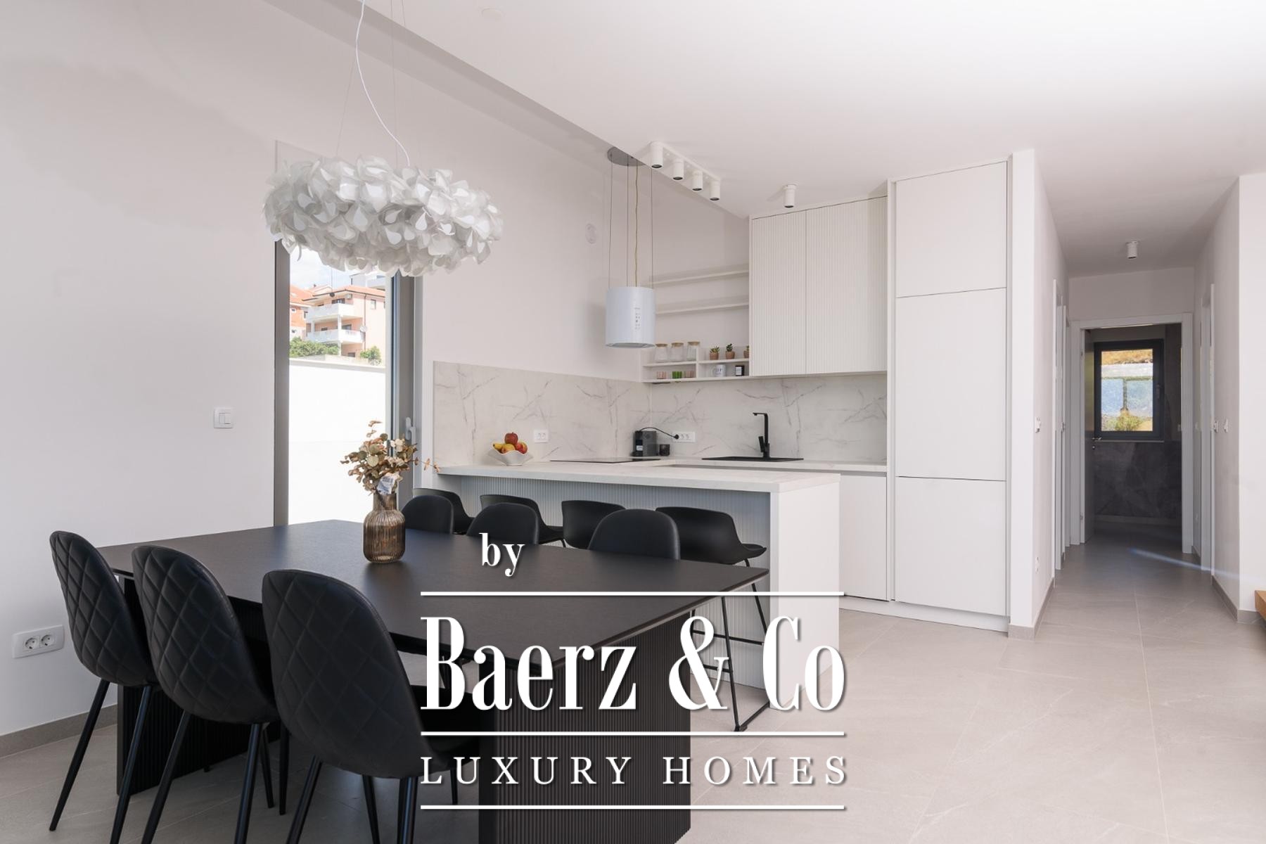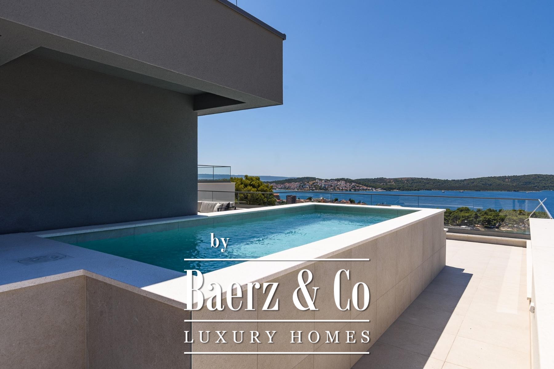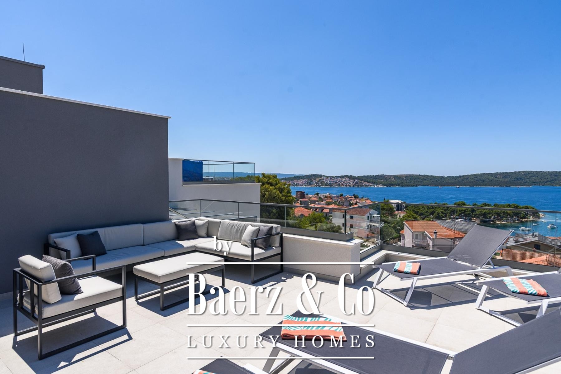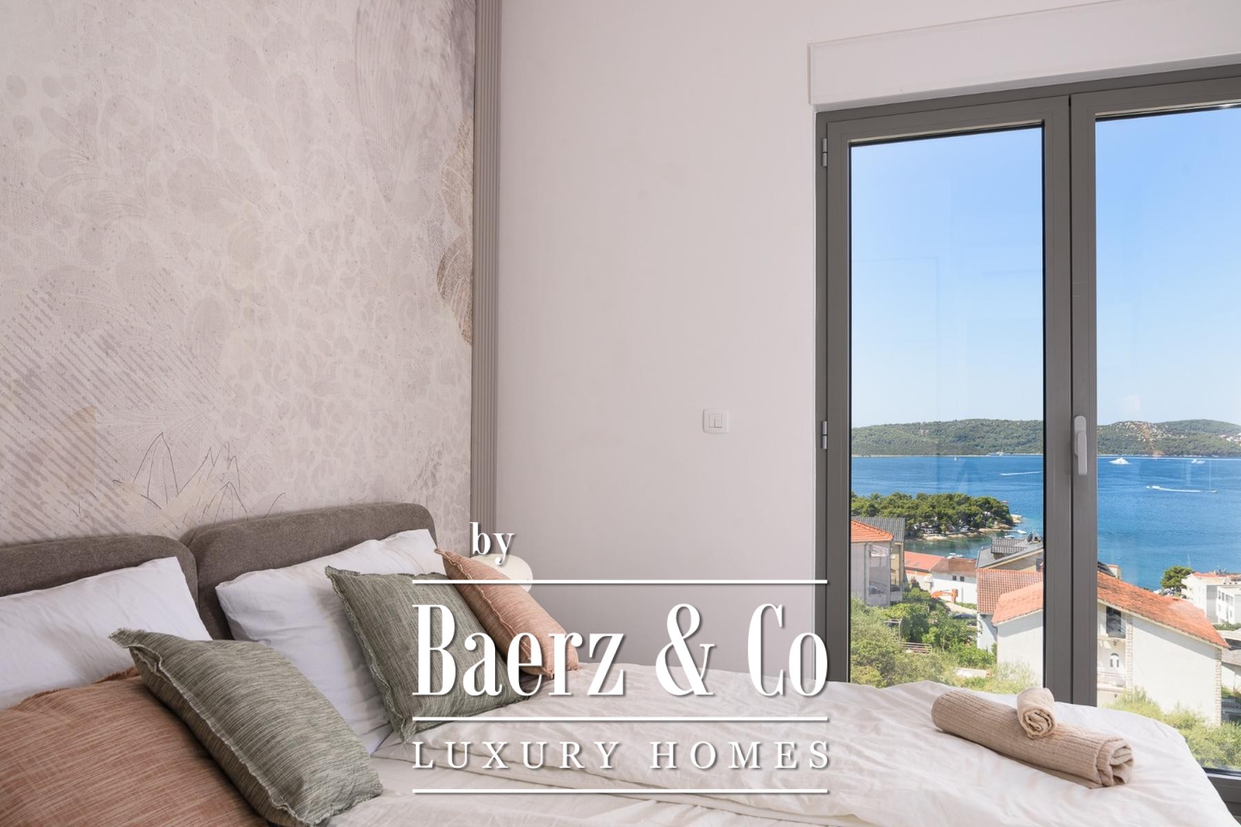 Luxury apartment Trogir commands an exceptional setting, with 132 m² of refined living space distributed across two thoughtfully designed levels. This residence offers panoramic sea views that frame every moment, with interiors shaped by top-quality materials and bespoke furnishings. The apartment features four bedrooms and four bathrooms, optimized for both privacy and gathering, with a generous open area uniting kitchen, dining, and living functions as the social heart.