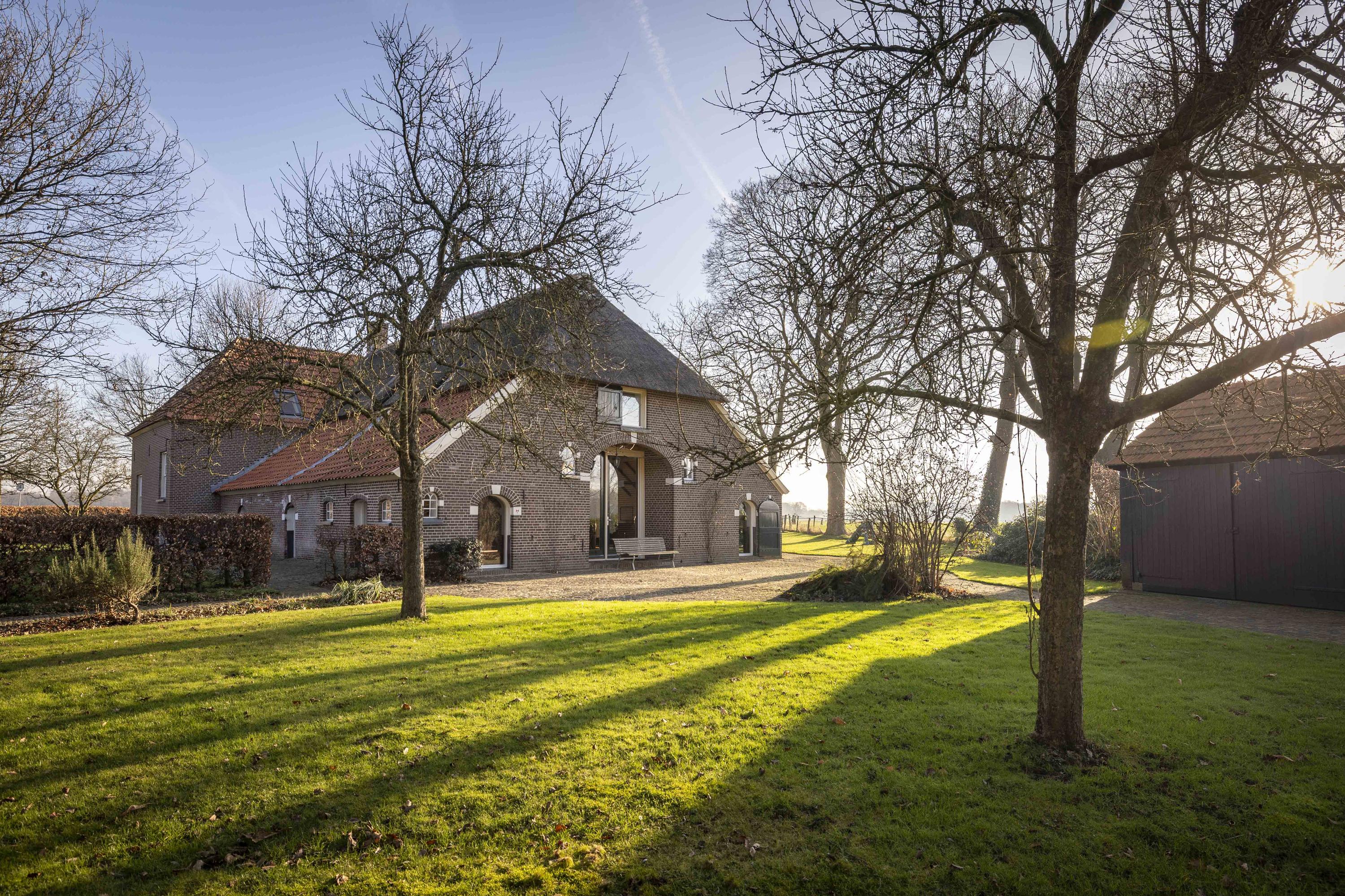 In the sunshine, the house shines out at you, with its fresh red tiles, neat joints, thatched roof (renovated in 2021), and beautiful woodwork covered in thick varnish. Despite its long history, Erve 't Norde is also completely up to date under the hood: the current residents have made the farm sustainable from top to bottom, with thick insulation, HR++ glass, 45 solar panels, and a super-efficient clay stove, making it ready for the next 163 years.