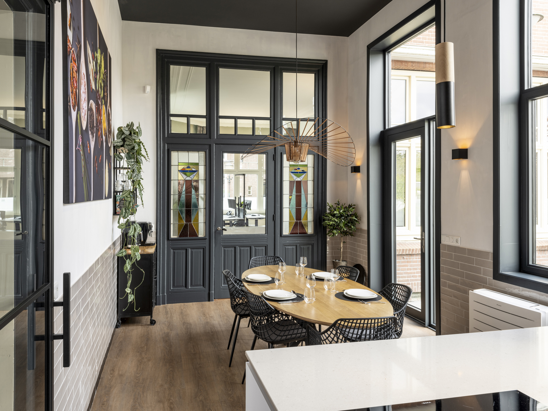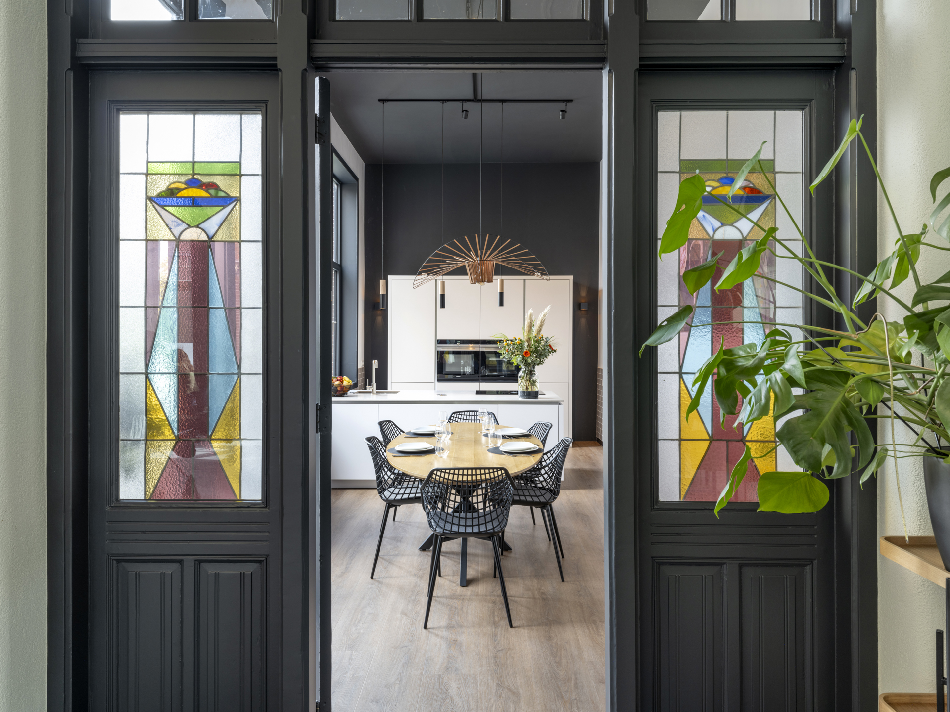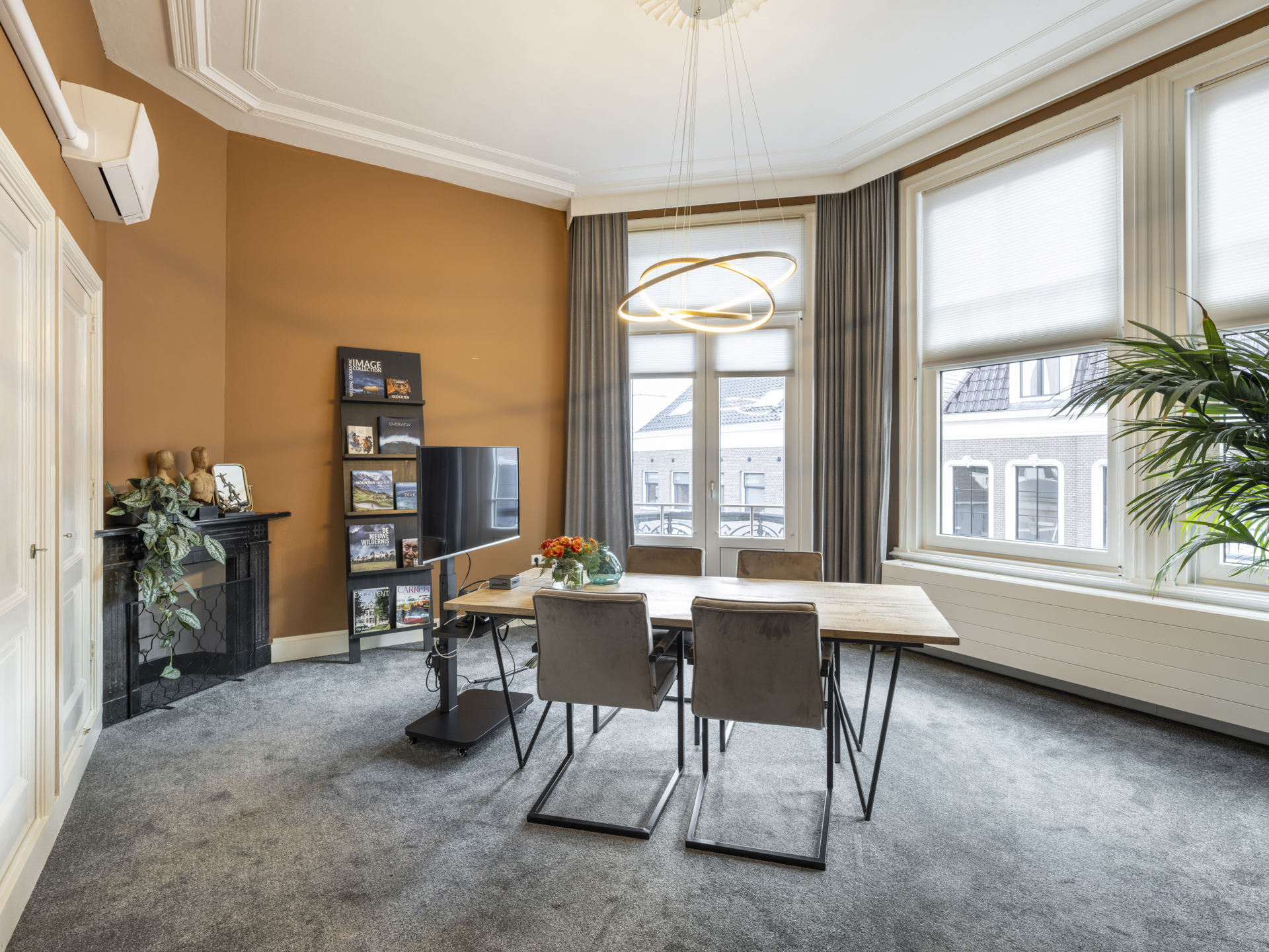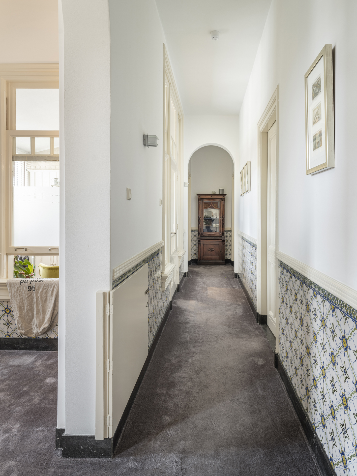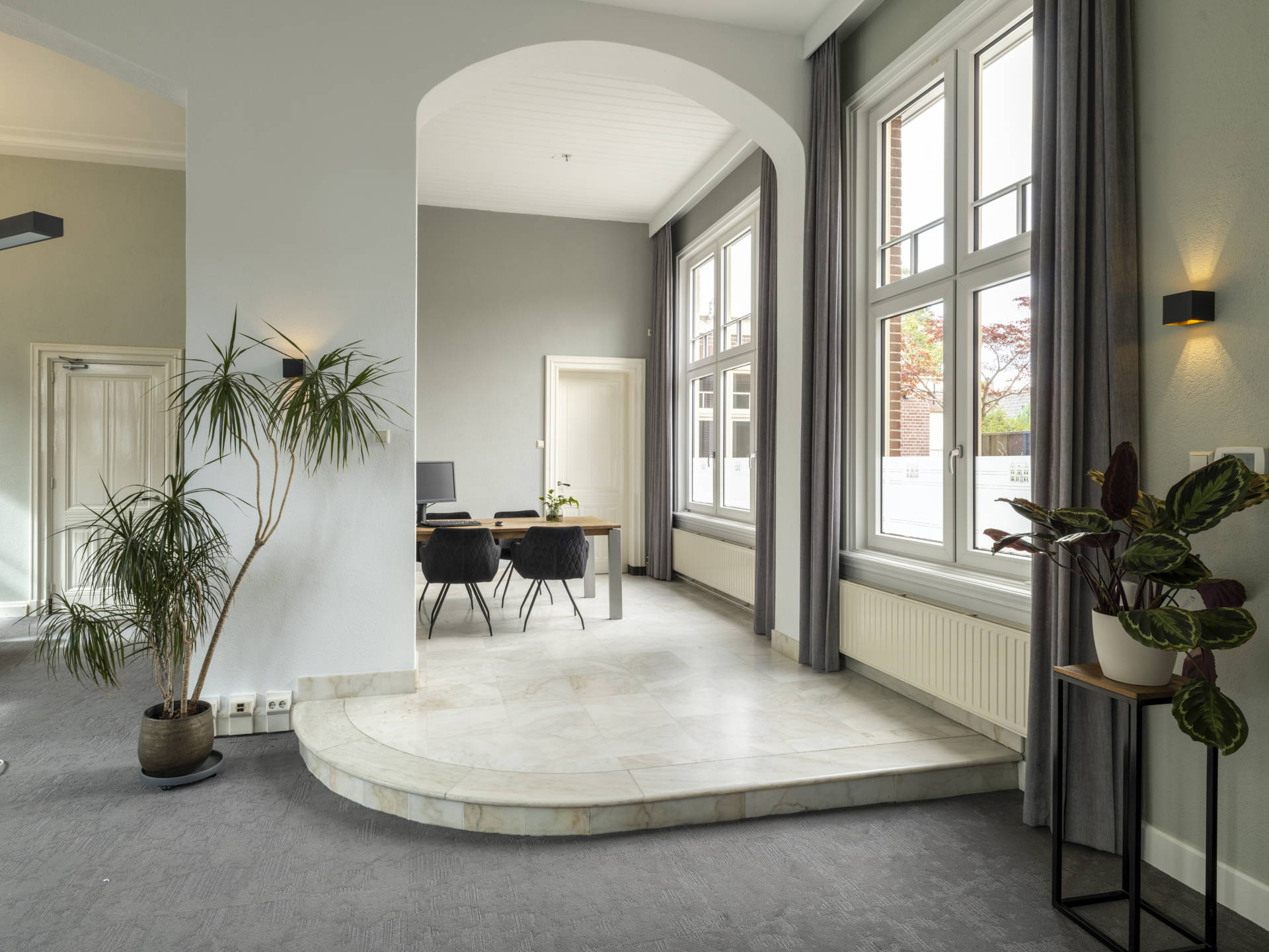 Historic villa Zevenbergen stands in the heart of the city on Stationsstraat, occupying the imposing former post office. With 514 m² of living area and a plot size of 645 m², this unique residence has been comprehensively renovated yet preserves its atmosphere, authentic details, and stately rhythm. Built at the end of the 19th century as a post office with a director's residence, the villa retains many original features referencing its storied history.