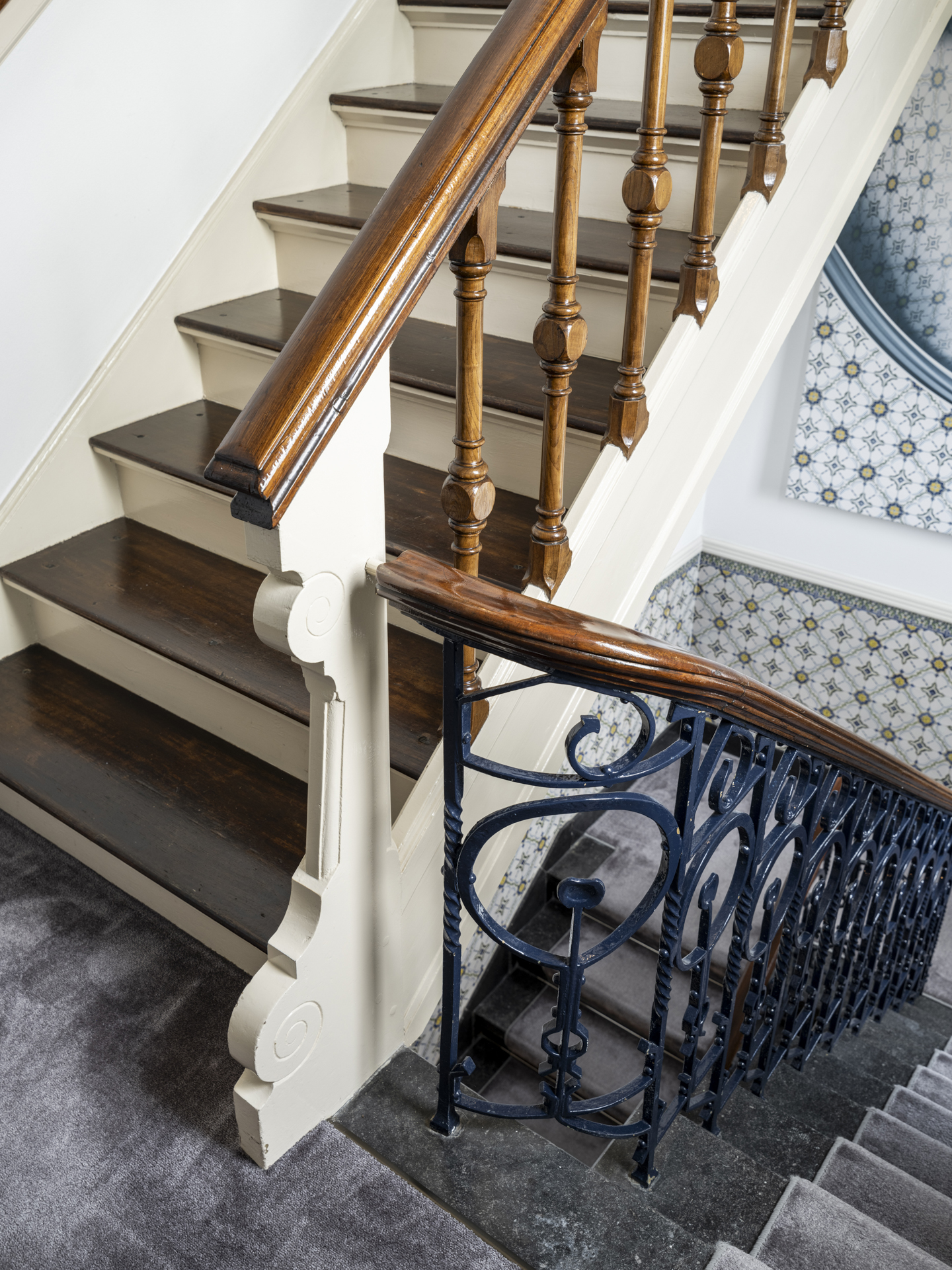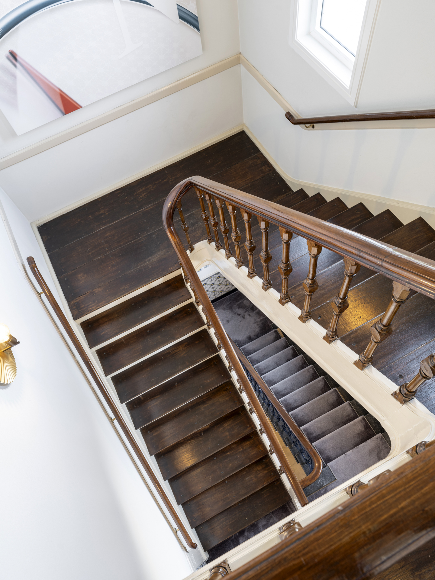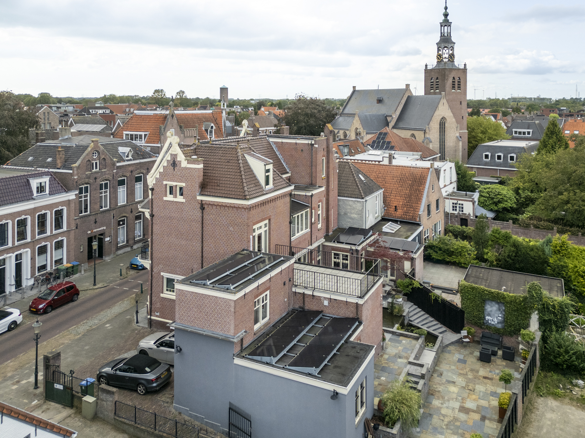 Period elements such as an original hardstone staircase, marble floors, intricate plasterwork, and leaded glass appear throughout. The flow of the home is anchored by a dramatic central hallway, with distinct living and working rooms branching off. Carefully updated, the villa marries heritage with modern comfort: high-grade insulation, HR++ double glazing, 23 solar panels, and three heating systems.