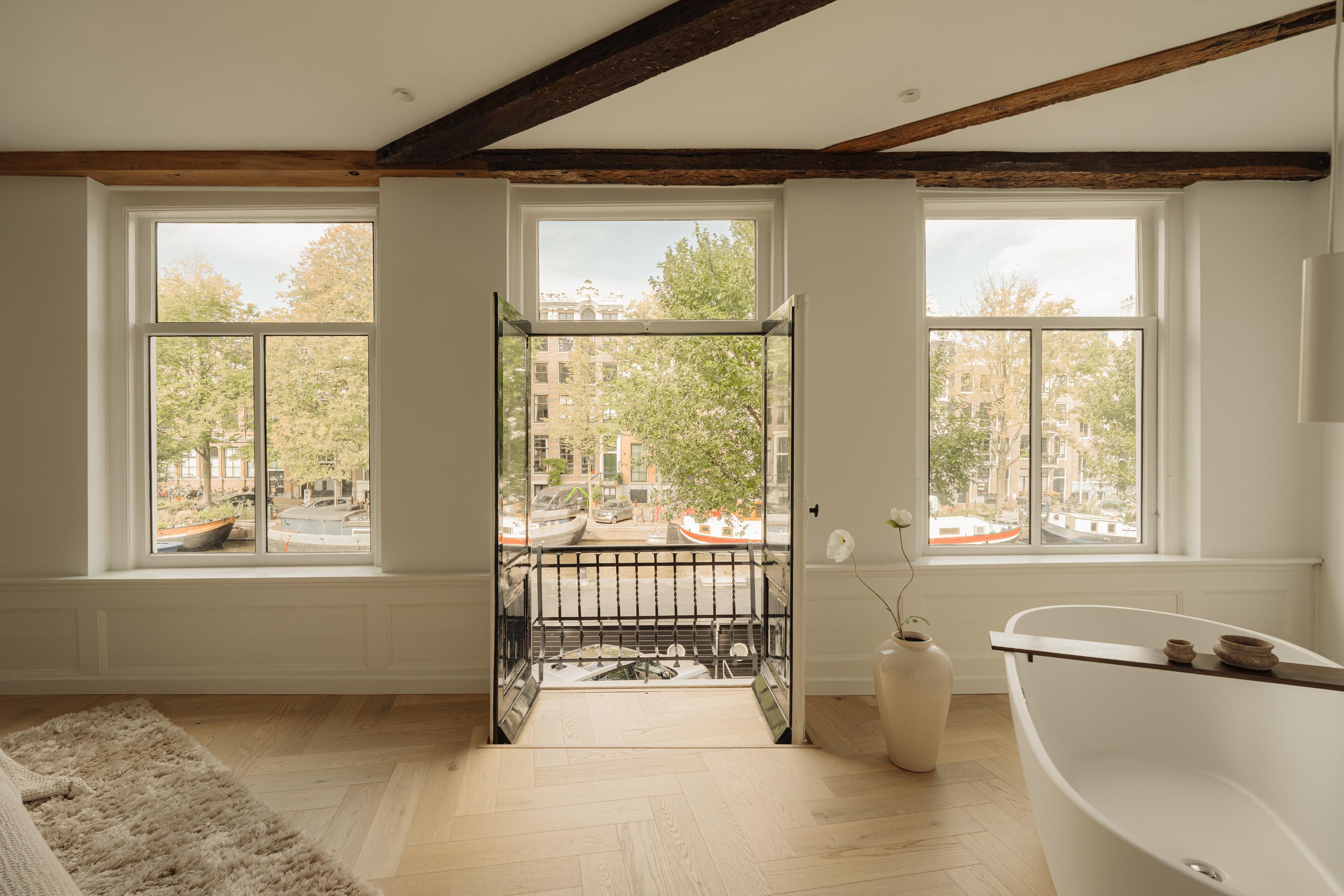 Canal House Amsterdam Singel 29 es un referente de patrimonio y refinado confort en el corazón de uno de los canales más antiguos de la ciudad. Esta propiedad ofrece aproximadamente 342 m² de superficie habitable distribuidos en cinco plantas, complementados por una casa de jardín independiente de 41 m², reflejo de la arquitectura atemporal del cinturón de canales de Ámsterdam. Minuciosamente renovada con respeto por su carácter monumental, la casa canalera presenta interiores amplios con vigas originales a la vista, techos altos y grandes ventanales que inundan de luz natural los espacios y evocan la historia del edificio.