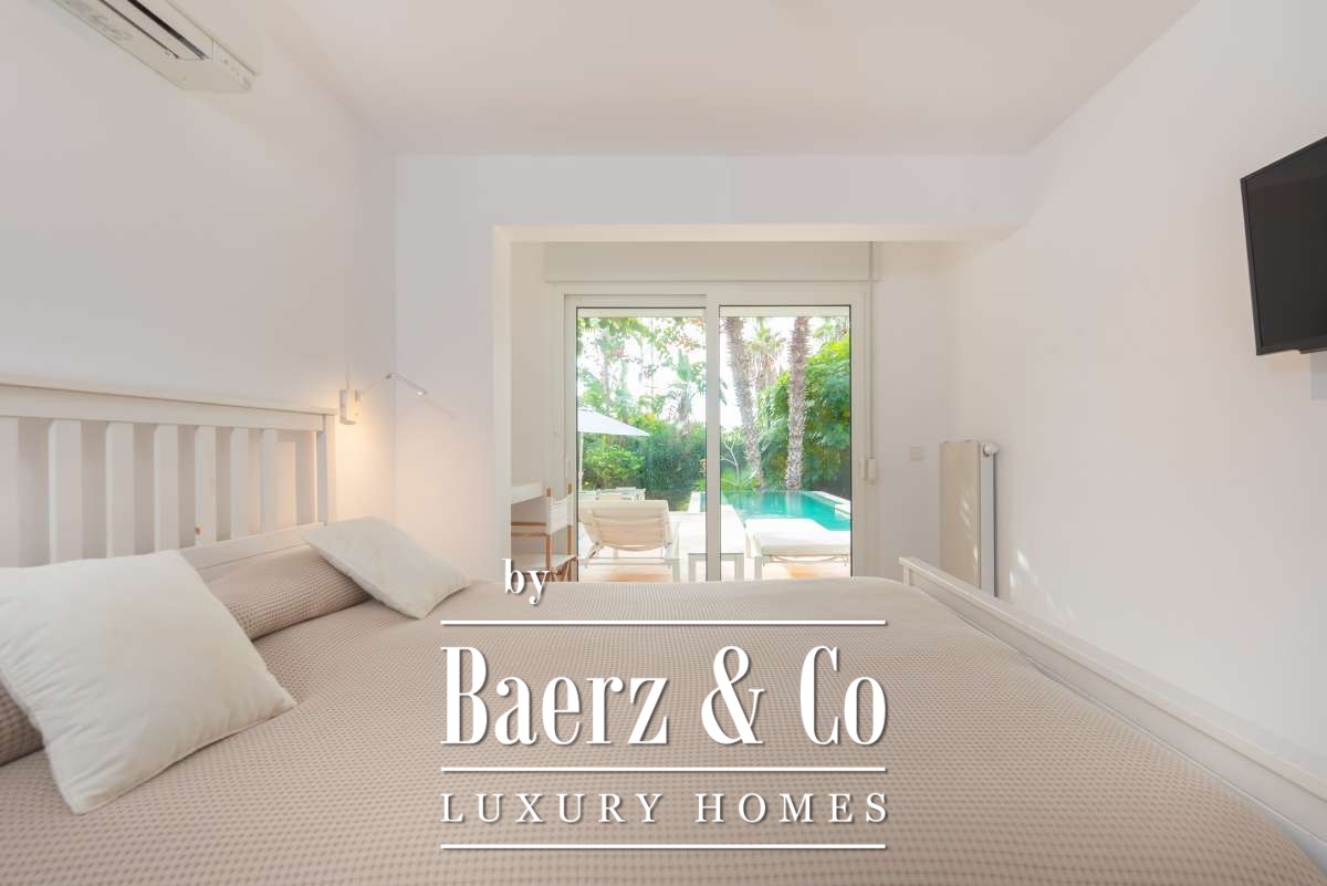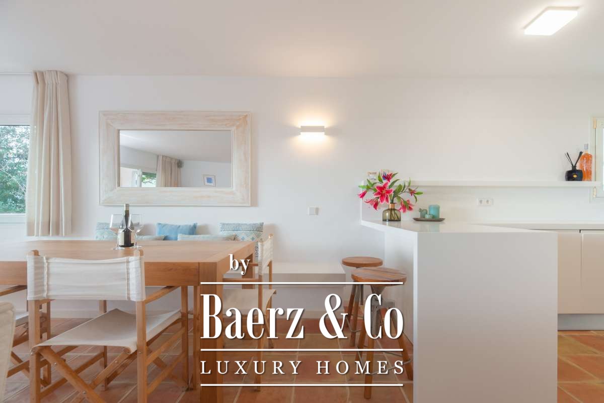 Con 181 m² de elegantes espacios interiores, la villa está distribuida en ambientes amplios, bañados por luz natural y con una fluida transición entre el interior y el exterior. Tres dormitorios y cuatro baños garantizan privacidad y calma, cada rincón está diseñado para aportar confort y comodidad. El corazón de la vivienda se encuentra en su cocina, que se integra de manera natural con las áreas de comedor y salón, haciendo que la propiedad sea idónea tanto para la vida familiar íntima como para la recepción discreta de invitados.