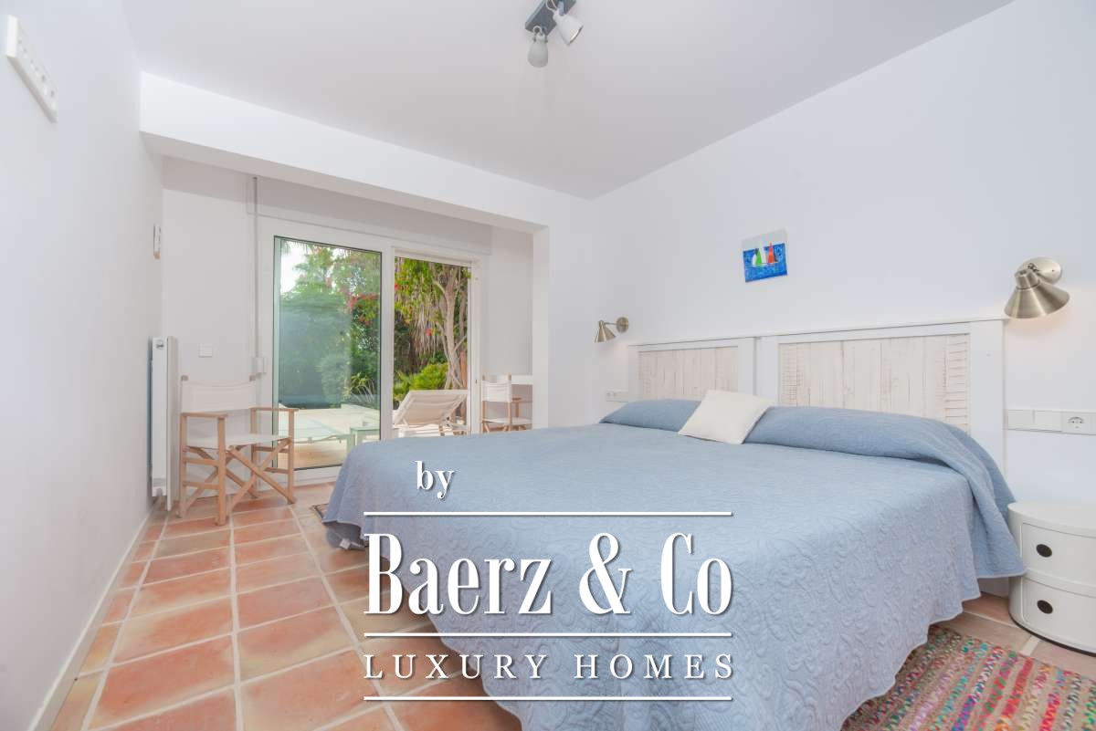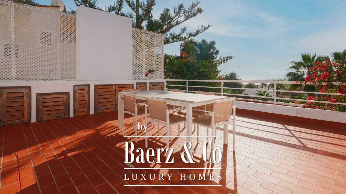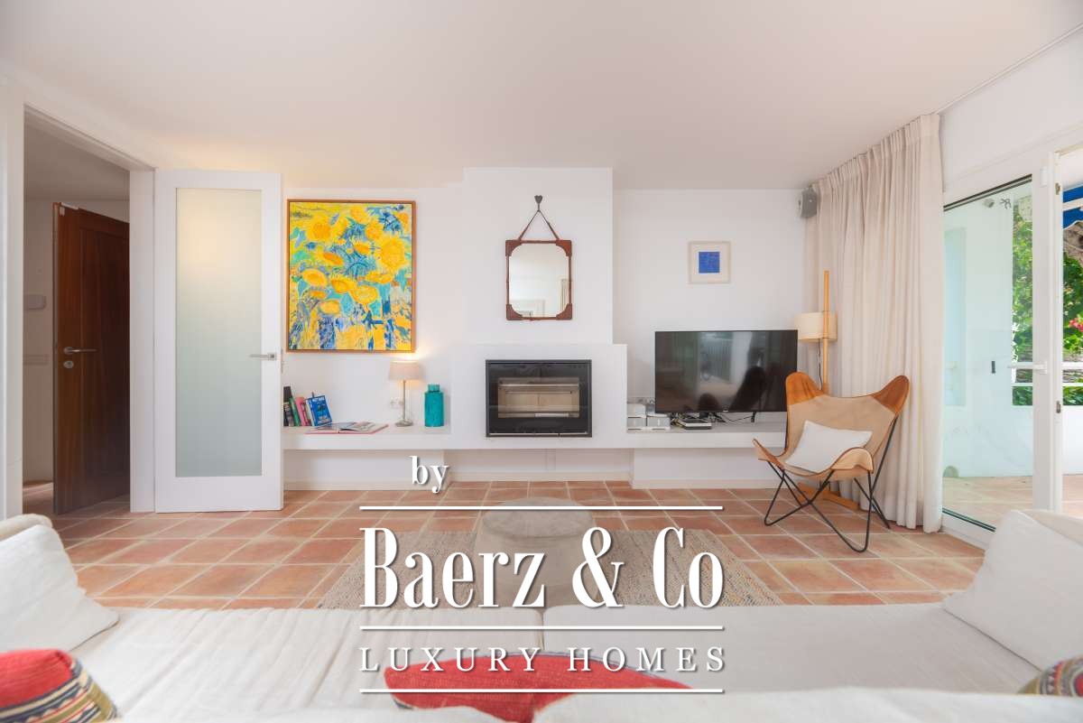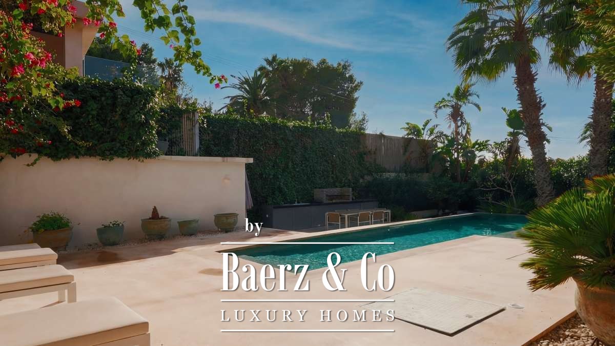 Varias terrazas, una cocina exterior y jardines paisajísticos rodean la piscina privada orientada al sur y proporcionan impresionantes vistas panorámicas al mar y la ciudad, favoreciendo momentos de descanso a lo largo del día. El parking comunitario, sistema de alarma, aire acondicionado y persianas de seguridad contribuyen a una vida sin complicaciones. Esta villa de lujo en venta en Ibiza representa el auténtico ritmo mediterráneo, ofreciendo serenidad, luminosidad y acceso a todo aquello que define la singularidad de Ibiza.