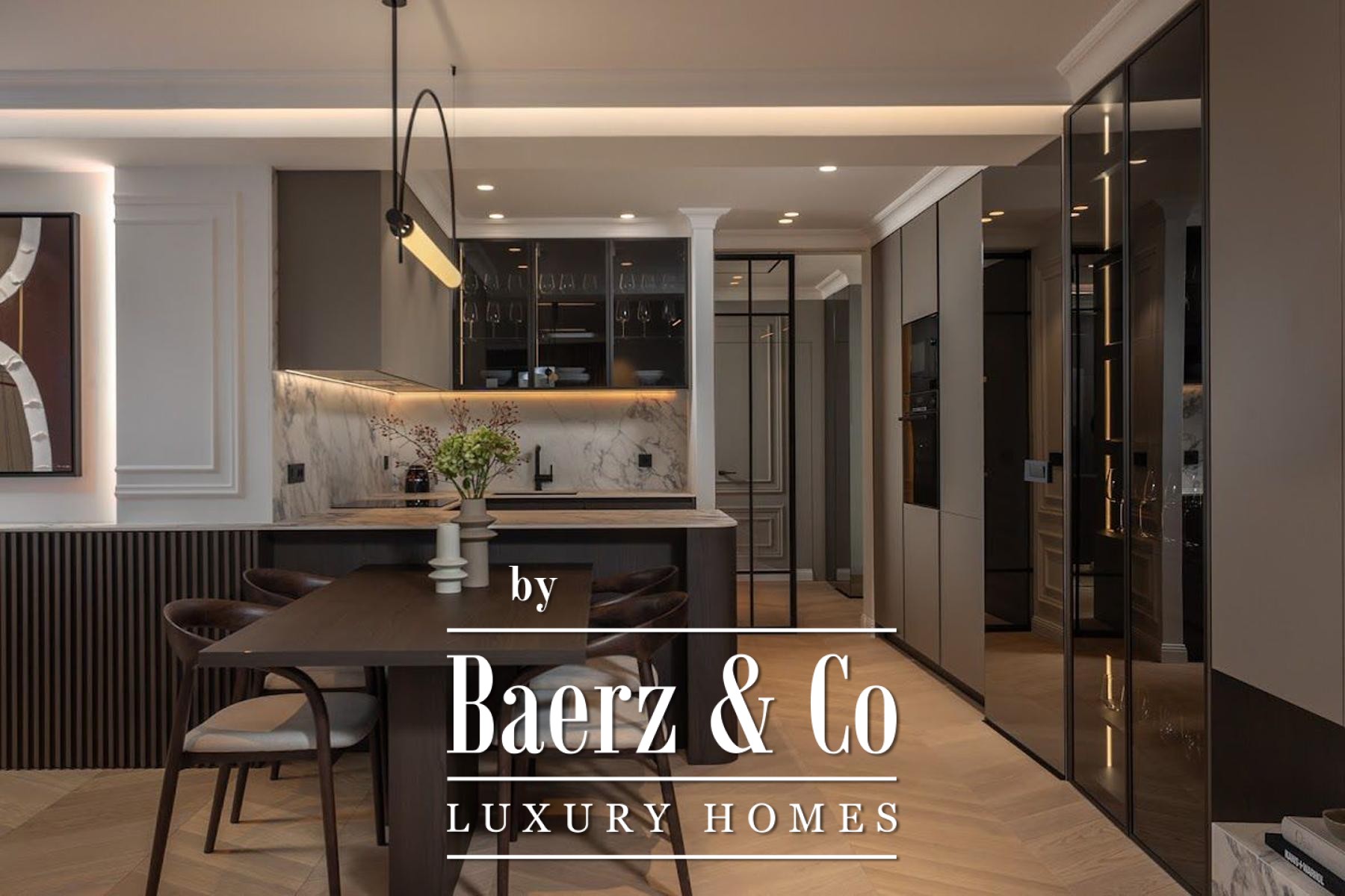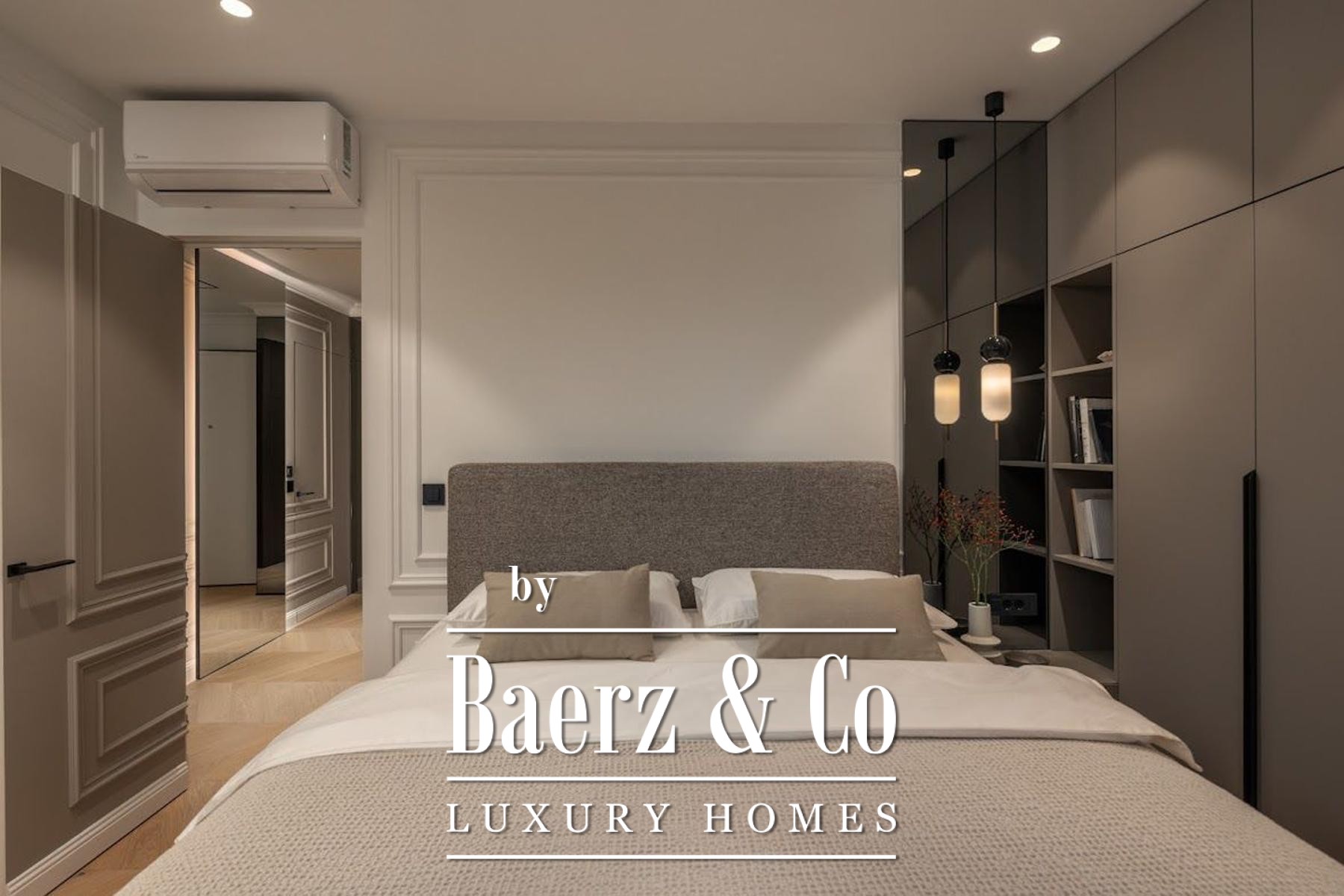 Desde el acceso directo en ascensor que conecta el garaje subterráneo con la entrada privada, este penthouse transmite una intimidad y discreción poco comunes. La residencia dispone de cinco dormitorios y cinco baños, cada uno equipado con instalaciones sanitarias a medida y suelo radiante. Los ambientes gozan de abundante luz natural, con una elegante tarima Chevron Boen, carpintería de aluminio, ventanas con triple acristalamiento y una iluminación LED integrada que aportan un aire refinado y acogedor.