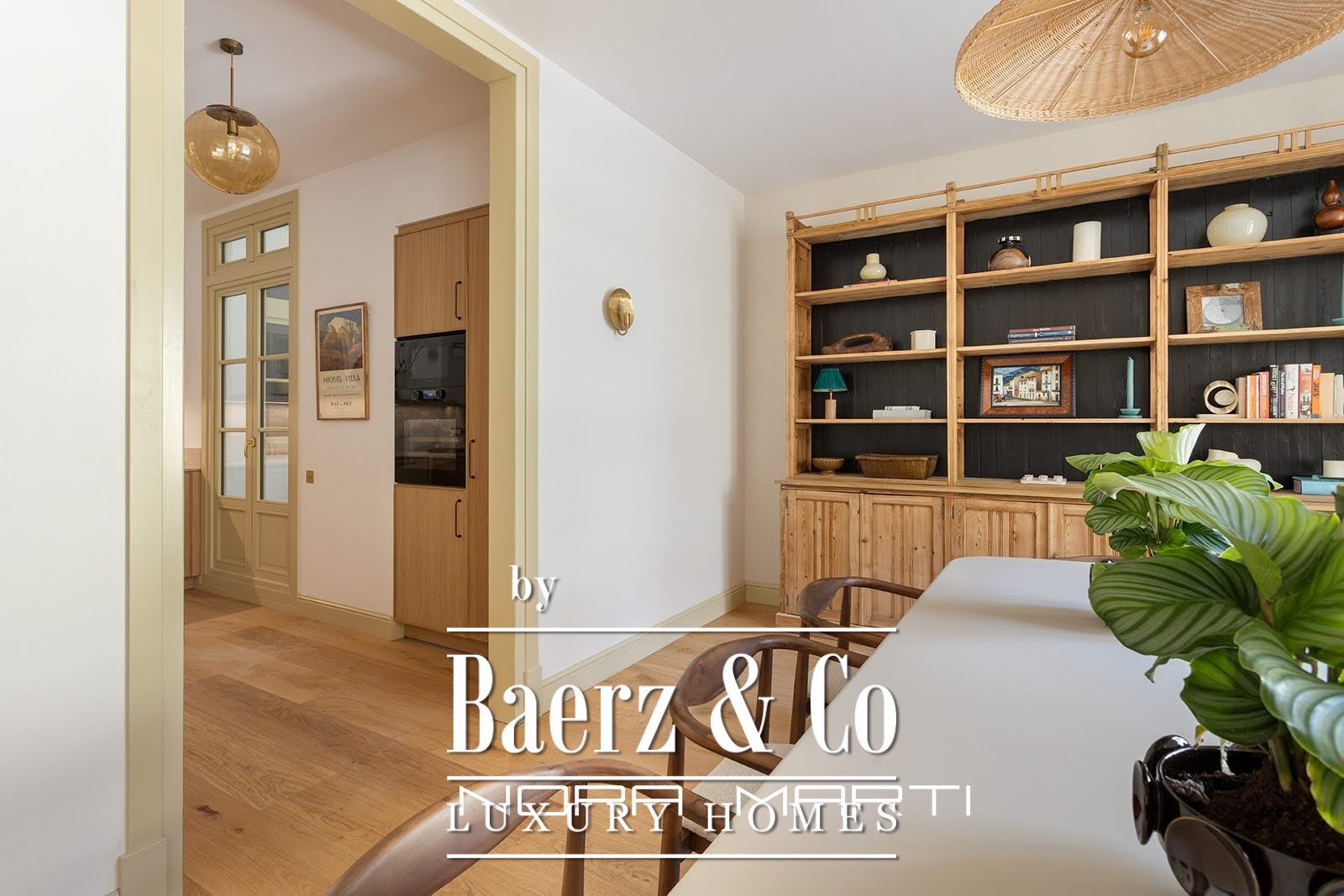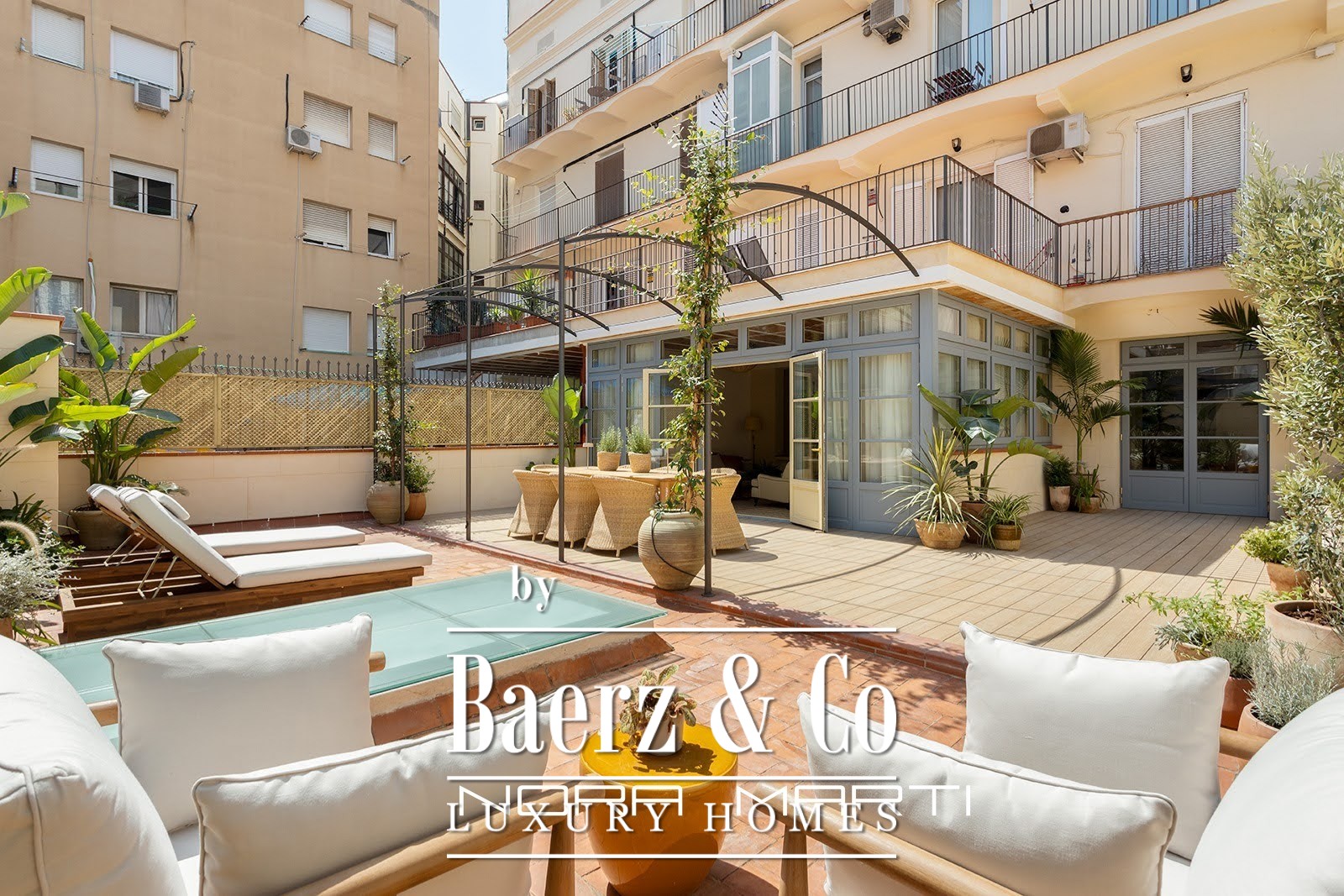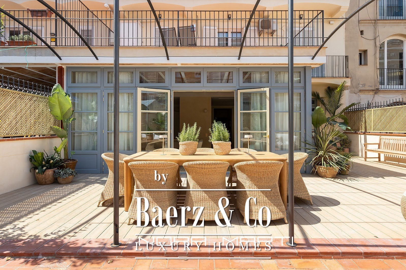 Chacune des trois chambres, orientées vers l’extérieur, dispose d’un lit double, de placards sur mesure et de salles d’eau attenantes dotées de robinetterie en laiton vieilli d’un fabricant catalan de renom. L’éclairage décoratif, en provenance de Catalogne et d’Angleterre, mélange pièces vintage et antiques, enrichissant l’atmosphère. La terrasse végétalisée, particulièrement accueillante, offre une rare tranquillité sur le Passeig de Sant Joan, propice à la détente, la convivialité et un sentiment d’espace unique au centre de Barcelone. Cet appartement de prestige à vendre au Passeig de Sant Joan conjugue matériaux intemporels et confort contemporain dans une adresse urbaine d’exception.
