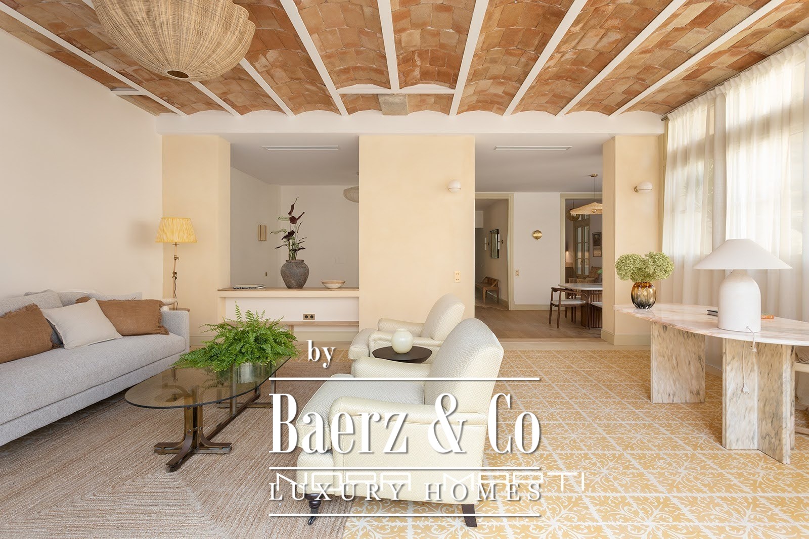 L’appartement Barcelona Passeig de Sant Joan se situe en plein cœur de la ville, offrant 200 m² d’espace de vie raffiné, complétés par une terrasse privée de 100 m². La lumière naturelle pénètre généreusement grâce à la double exposition, illuminant à la fois les espaces de vie et privés. La résidence préserve le caractère architectural d’origine, notamment les plafonds catalans voûtés parcourant toute la longueur du logement, procurant une impression de volume et de sérénité.