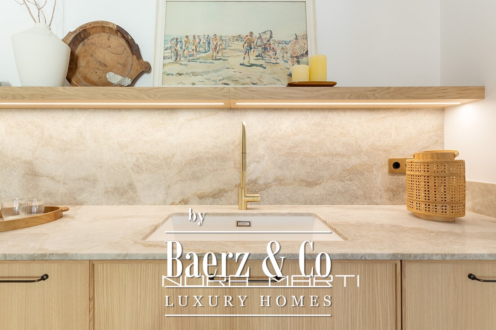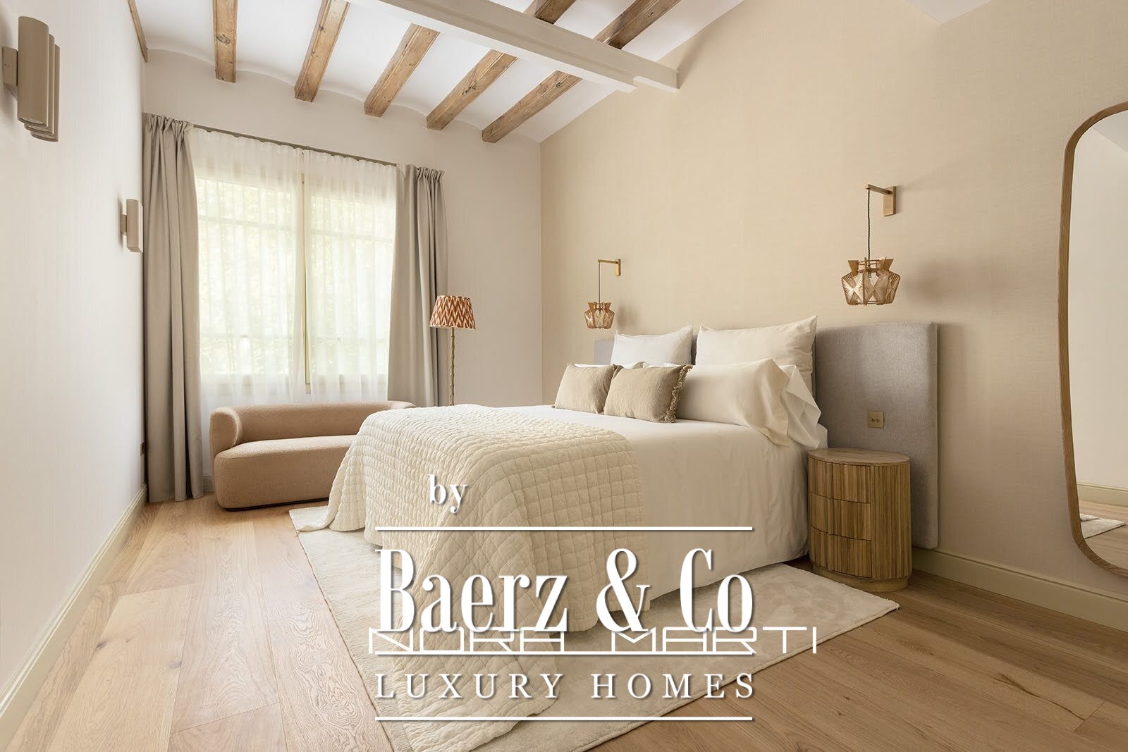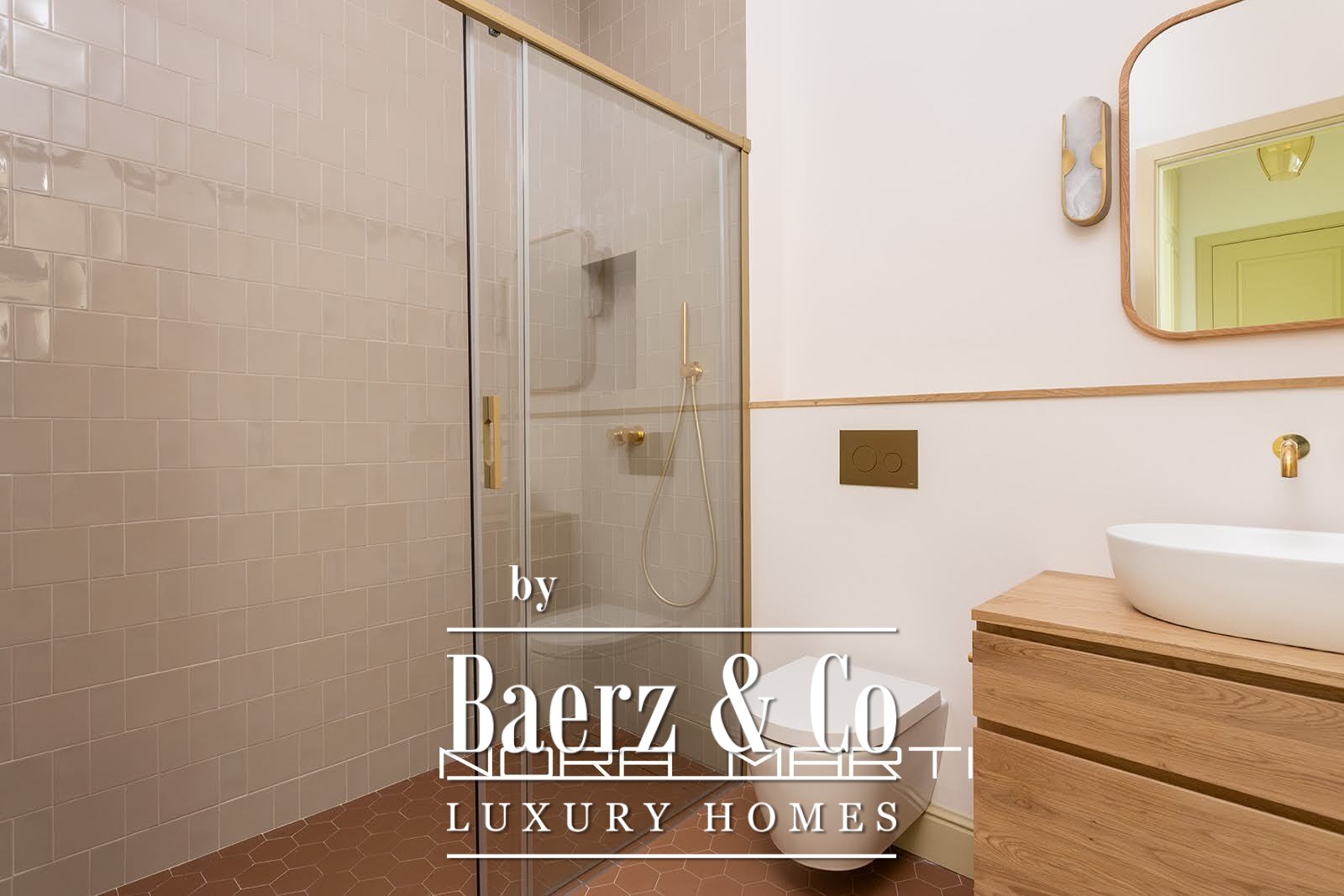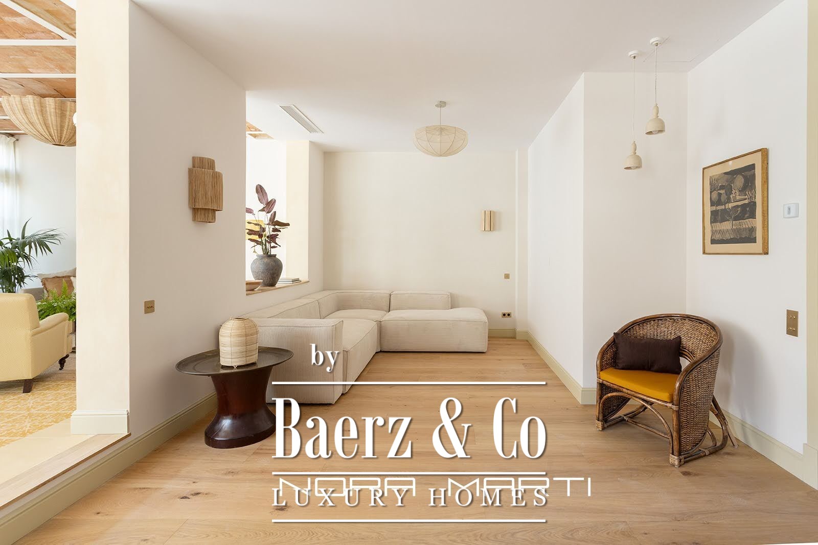 Le salon, mis en valeur par des carreaux artisanaux locaux et de larges baies vitrées, s’ouvre sur une terrasse paisible, créant une transition harmonieuse entre confort intérieur et quiétude extérieure. La cuisine, entièrement modernisée, comprend une cave à vin, un grand four et un vaste espace repas, idéale pour le quotidien comme pour recevoir. Le design intérieur marie élégamment éléments naturels et raffinement discret, associant un parquet en chêne naturel à larges lames, chauffage au sol et climatisation bi-zone pour un confort constant.