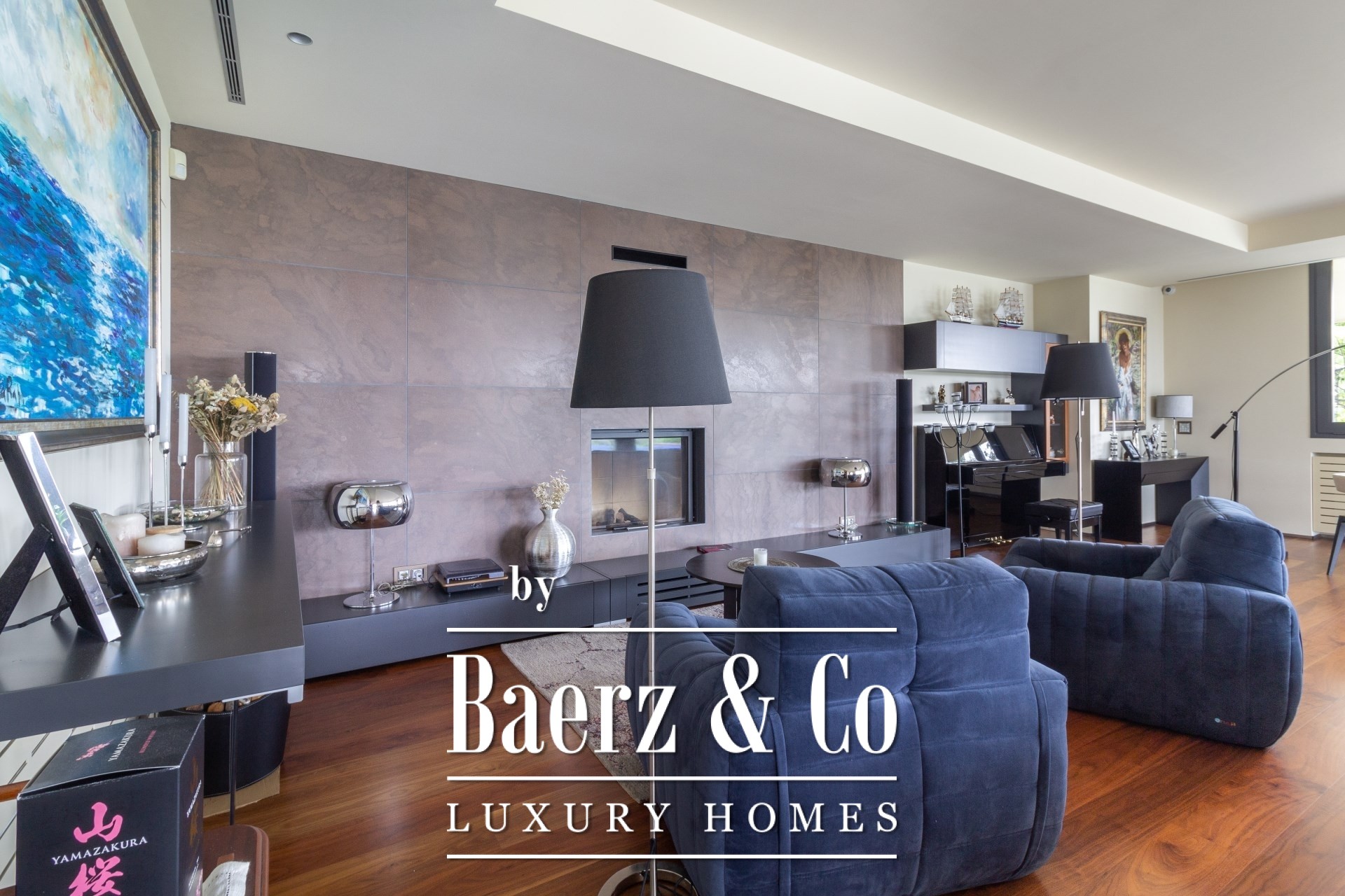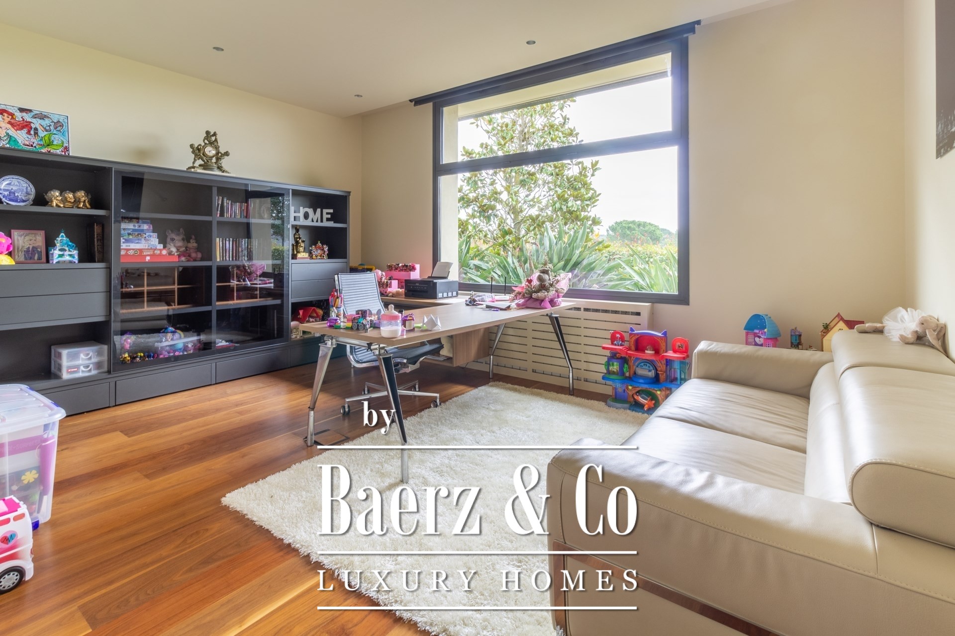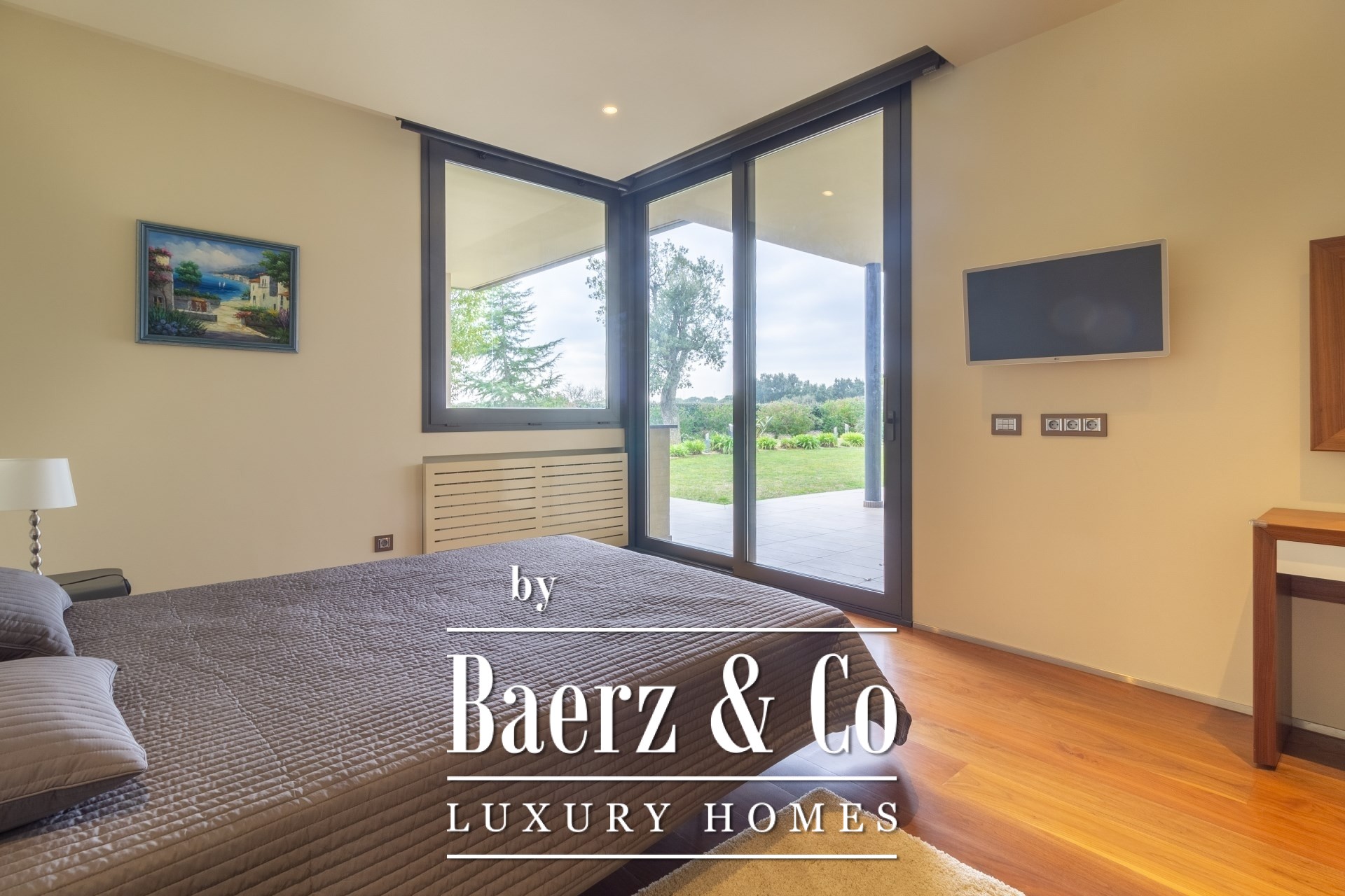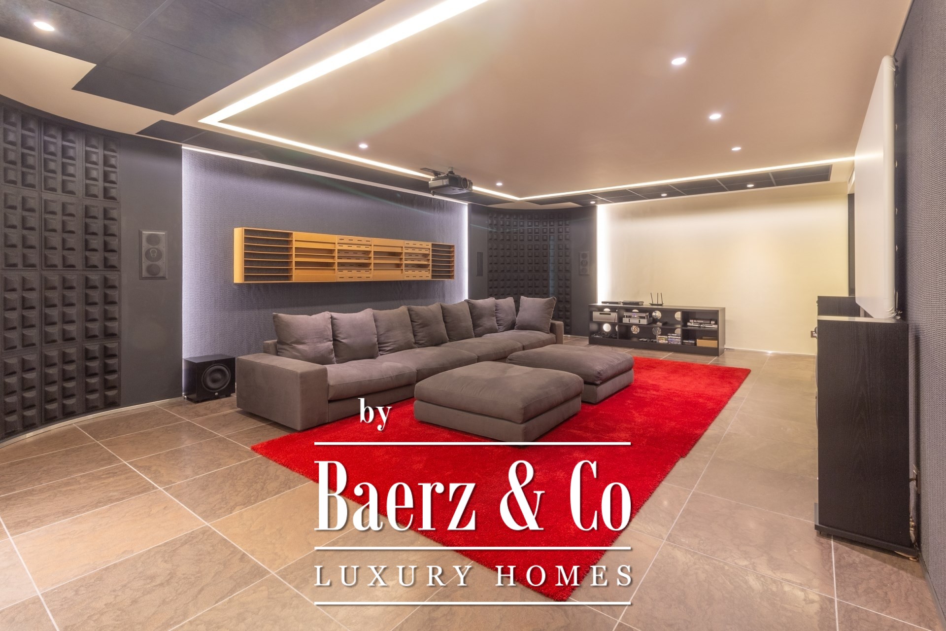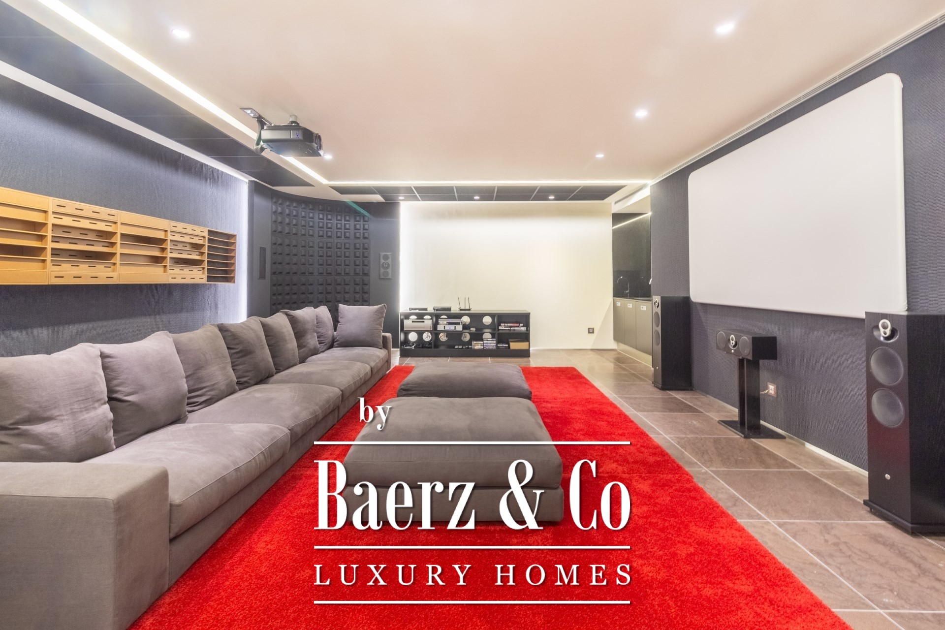 À l’extérieur, les jardins matures entourent la piscine avec cascade, le barbecue et la cuisine extérieure, ainsi que de généreux espaces détente. Chauffage au sol, climatisation par gaines, fenêtres électriques, système audio intégré, surveillance complète et ascenseur témoignent de l’attention portée au confort et à la sécurité.