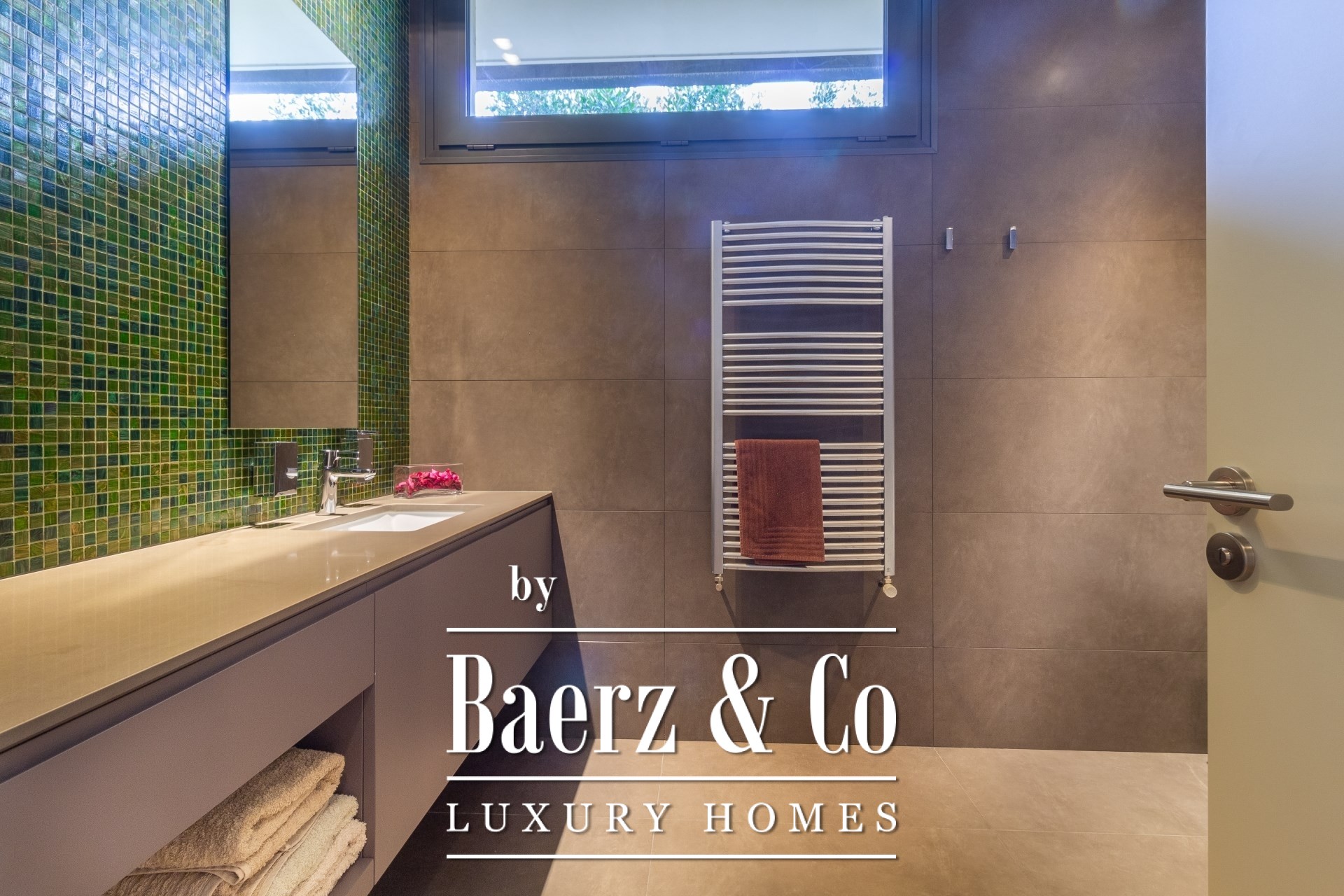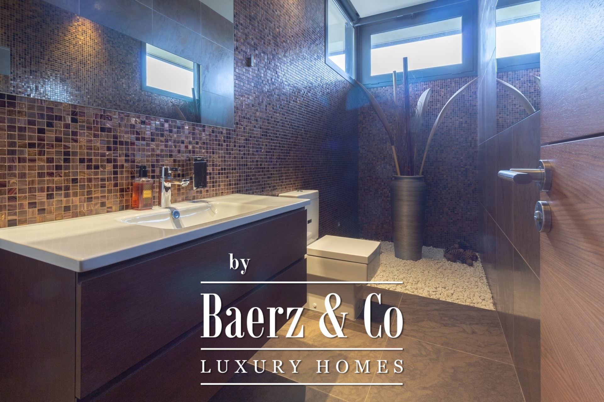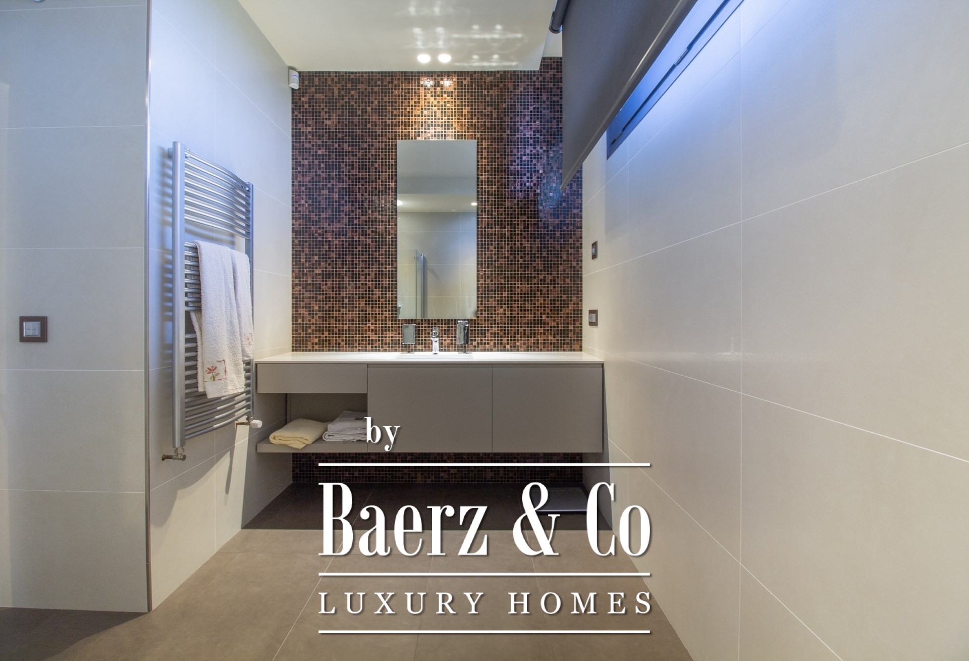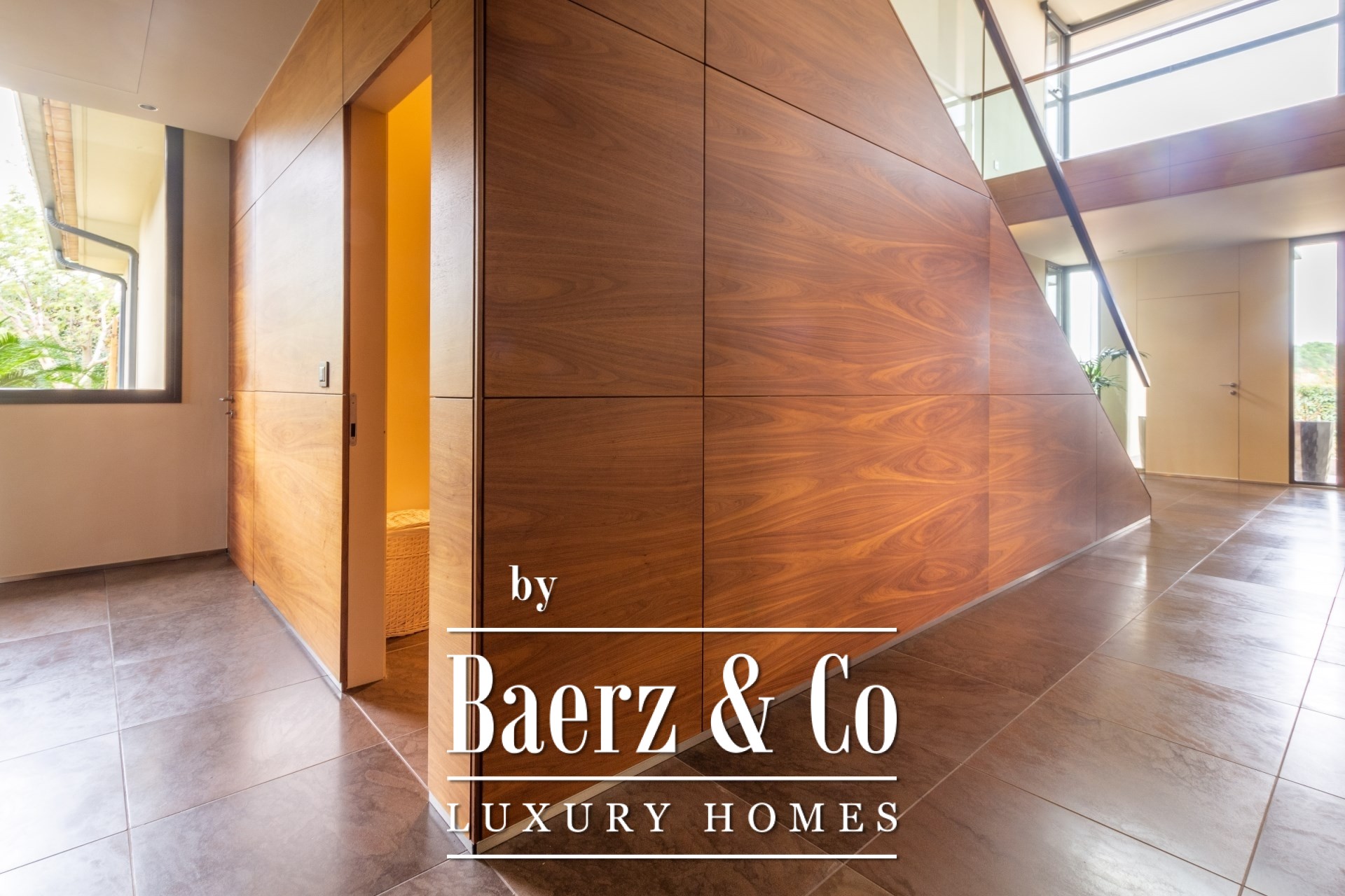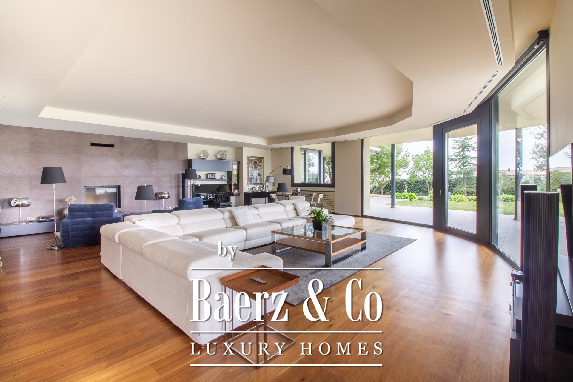 À l’extérieur, les jardins matures entourent la piscine avec cascade, le barbecue et la cuisine extérieure, ainsi que de généreux espaces détente. Chauffage au sol, climatisation par gaines, fenêtres électriques, système audio intégré, surveillance complète et ascenseur témoignent de l’attention portée au confort et à la sécurité.