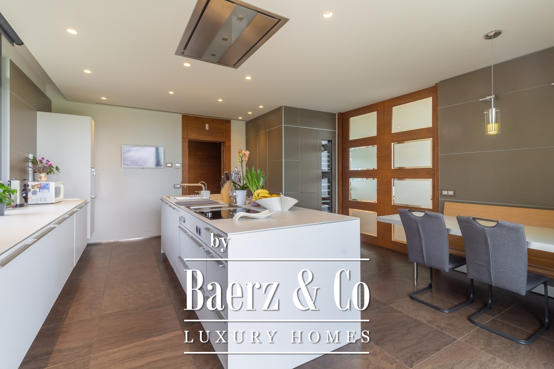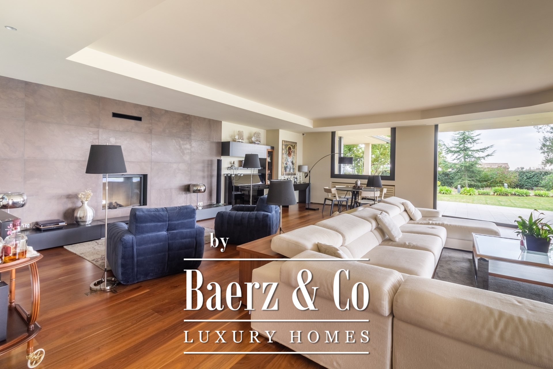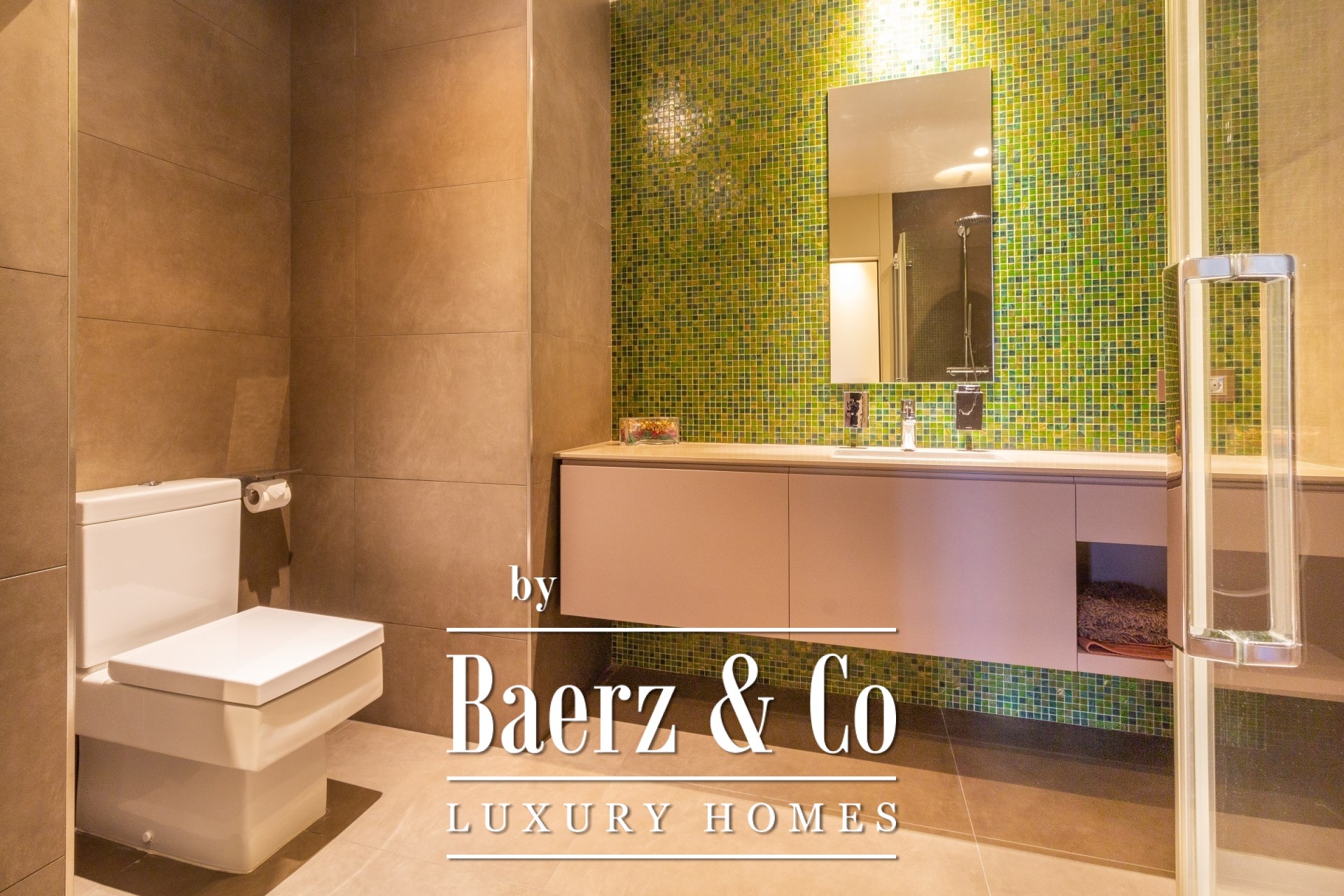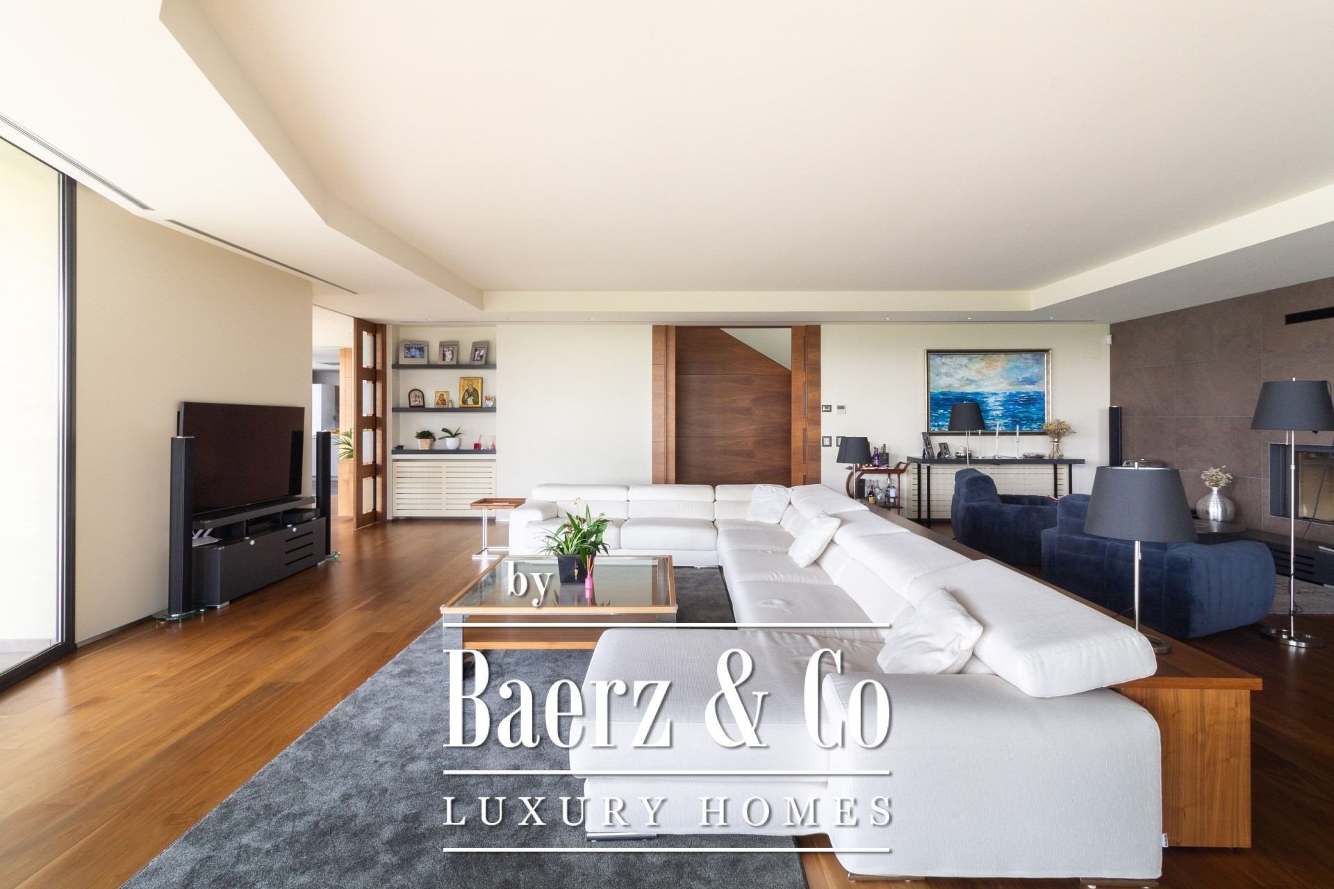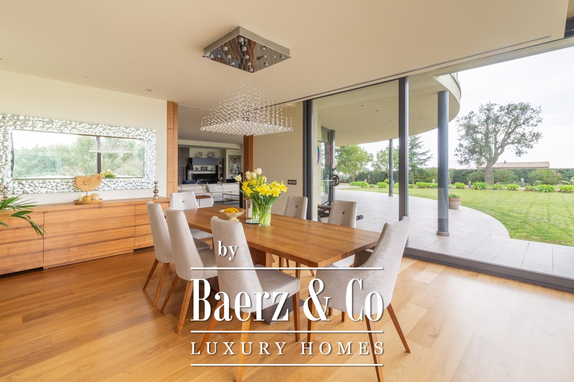 À l’extérieur, les jardins matures entourent la piscine avec cascade, le barbecue et la cuisine extérieure, ainsi que de généreux espaces détente. Chauffage au sol, climatisation par gaines, fenêtres électriques, système audio intégré, surveillance complète et ascenseur témoignent de l’attention portée au confort et à la sécurité.