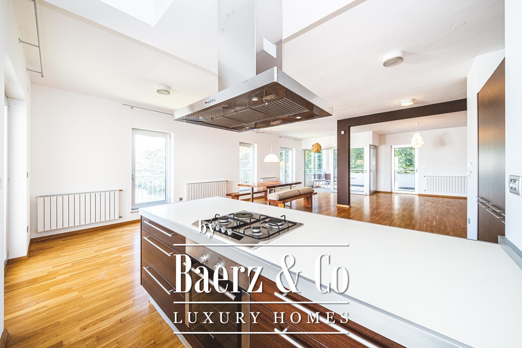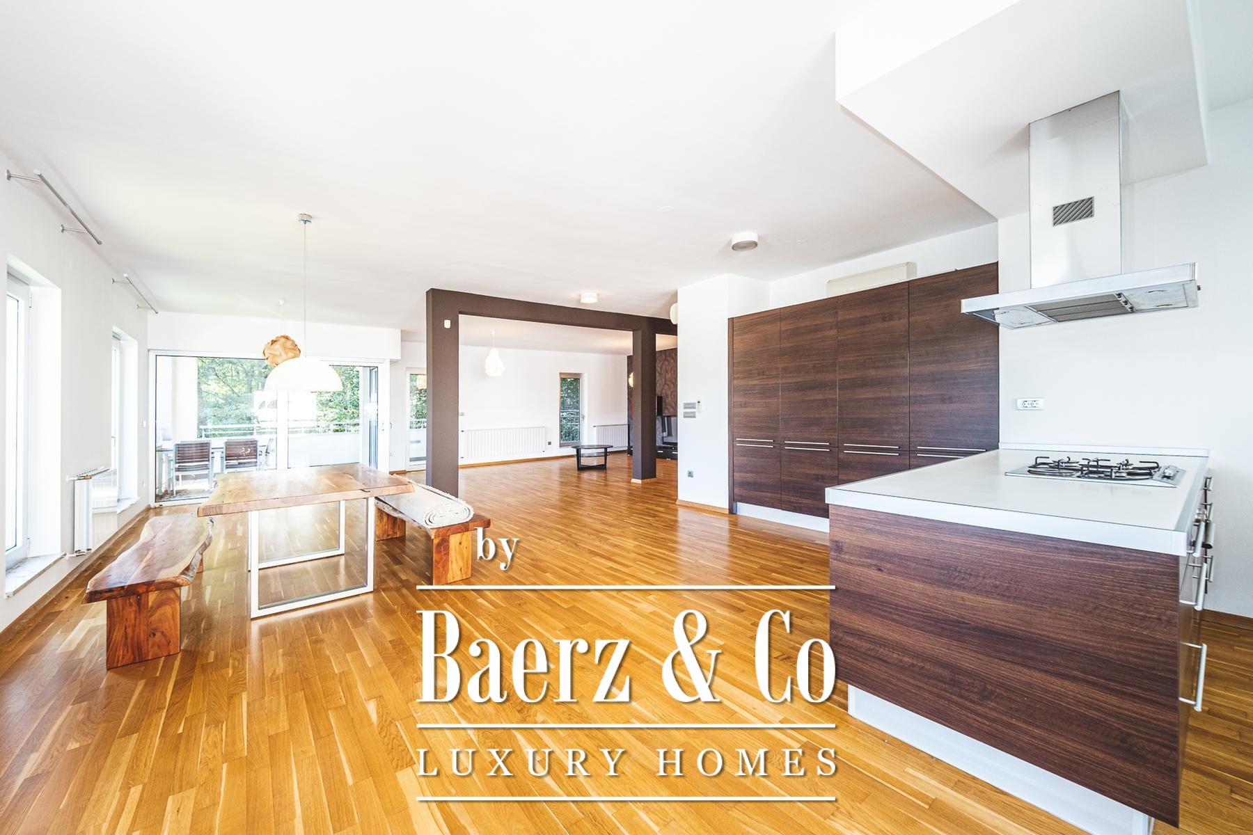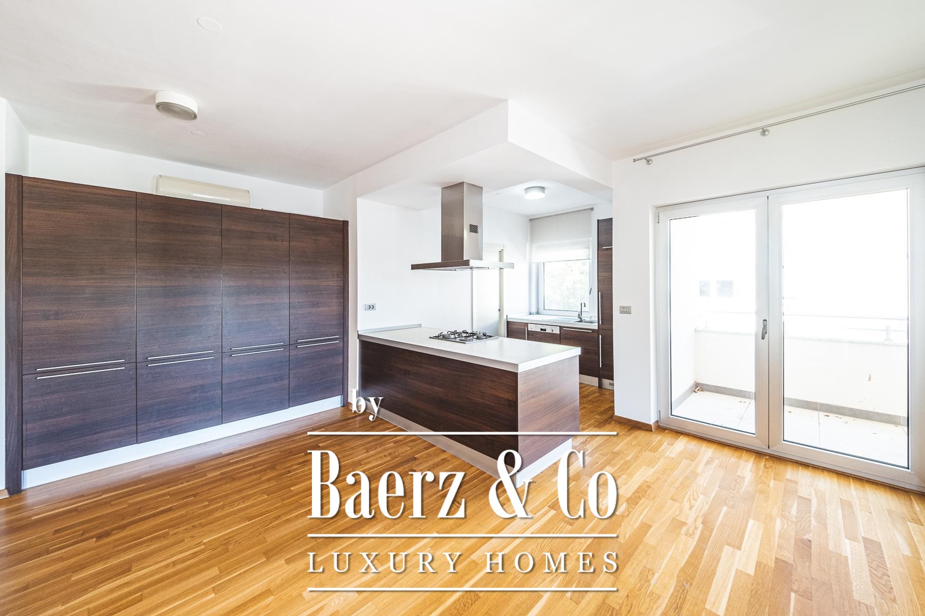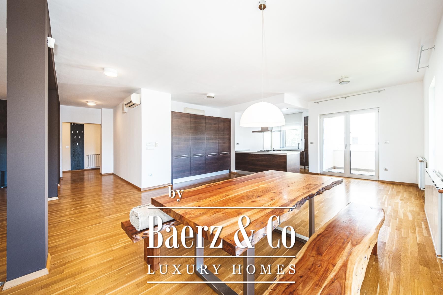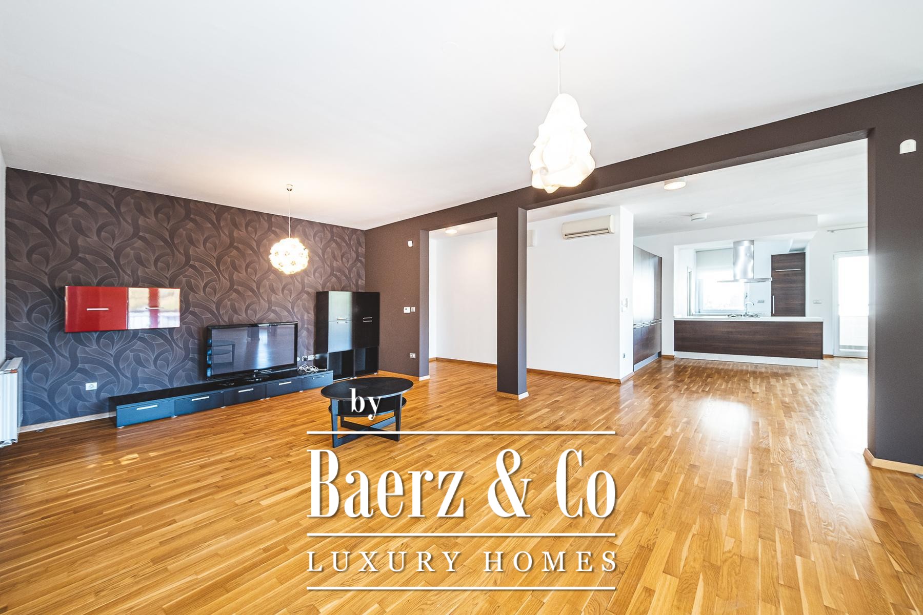 Appartement Črnomerec biedt 213 m² zorgvuldig ontworpen woonruimte in de rustige wijk Jelenovac. Deze woning met drie slaapkamers en drie badkamers bevindt zich op de begane grond van een recent gebouwd complex en straalt moderne comfort en gemak uit. De hoofdentree leidt naar een open leefruimte waar het daglicht rijkelijk binnenvalt en naadloos overgaat in het terras, waarmee binnen en buiten vloeiend met elkaar verbonden zijn. De keuken en eetkamer geven toegang tot een eigen balkon, ideaal voor zowel rustige ochtenden als aangename ontmoetingen.
