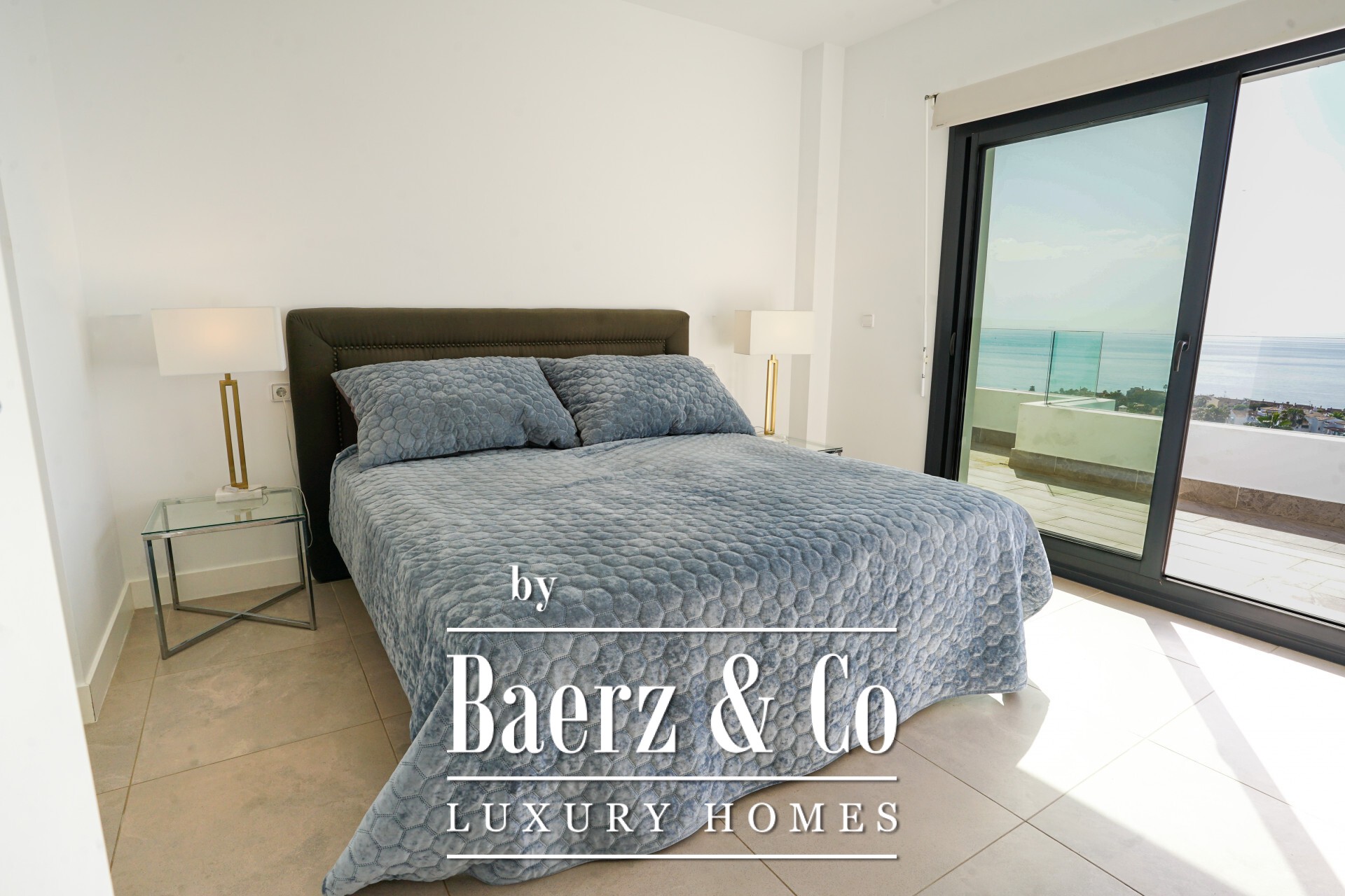 Deze moderne villa in Alcaidesa met panoramisch zeezicht zet een zeldzame standaard voor hedendaags wonen aan de Middellandse Zee. Voltooid in 2020, rustig gelegen op een verhoogd perceel van 1.200 m² met circa 500 m² woonoppervlak verspreid over diverse fraai ontworpen niveaus. Brede terrassen van 221,91 m² lopen uit op een aangelegde tuin met privézwembad, waarbij lichte, open binnenruimten moeiteloos overgaan in het verre uitzicht op zee, Gibraltar en de Noord-Afrikaanse kustlijn.