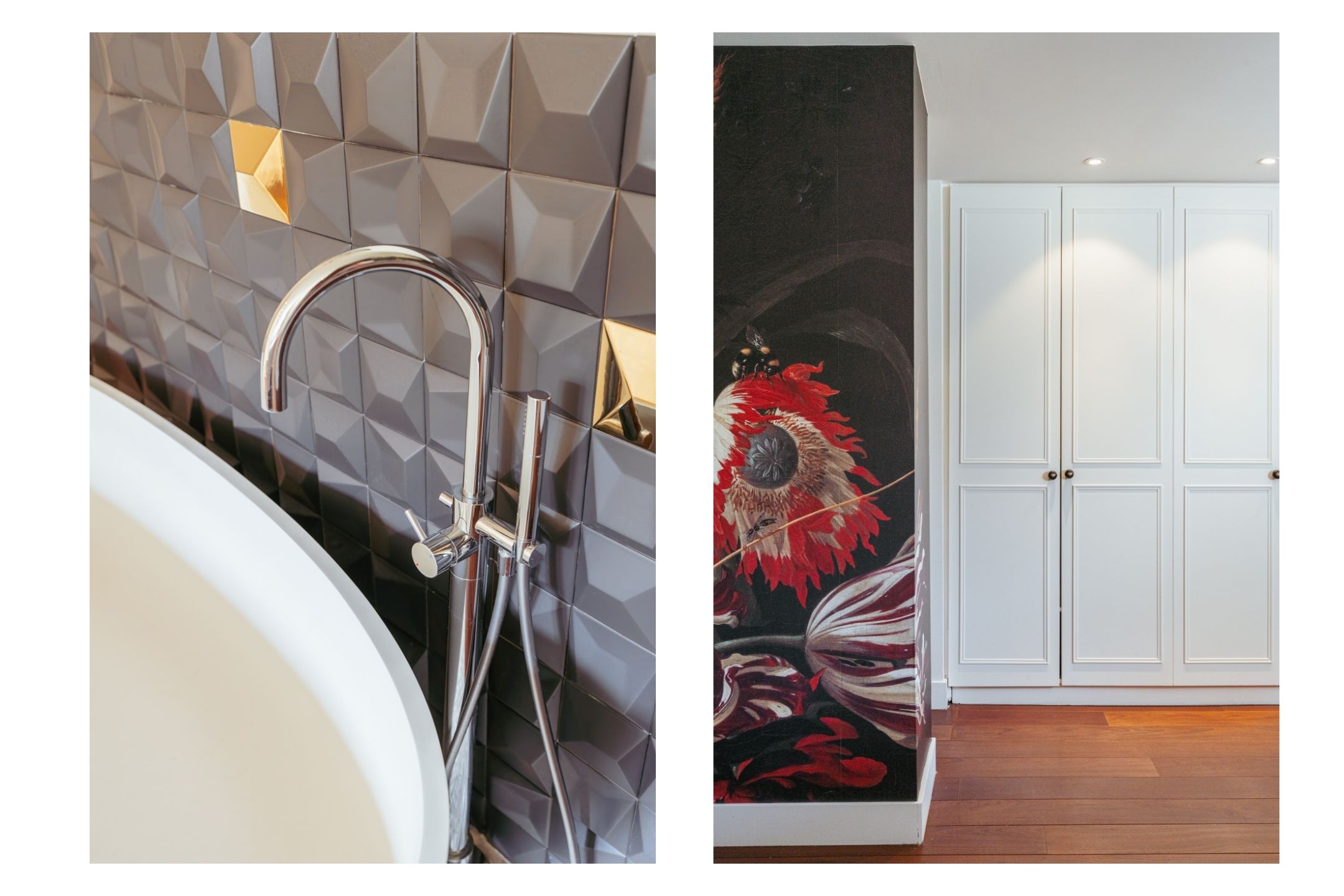 Middels een ruime overloop heeft u toegang tot de eerste drie slaapkamers van dit appartement. Aan de voorzijde bevindt zich de ruime master bedroom, voorzien van op maat gemaakte kastenwanden en een inloopkast, een vrijstaand ligbad van solid surface, een separaat toilet en een badkamer en-suite. De badkamer is uitgerust met een dubbele (regen-)douche en een breed dubbel wastafelmeubel. Aan de achterzijde treft u de twee speelse en goed bemeten slaapkamers, beide voorzien van een entresol. De tweede badkamer op deze verdieping is voorzien van een Jee-O inloopdouche, wastafel met meubel en een toilet. Separate ruimte voor was en droogcombinatie.