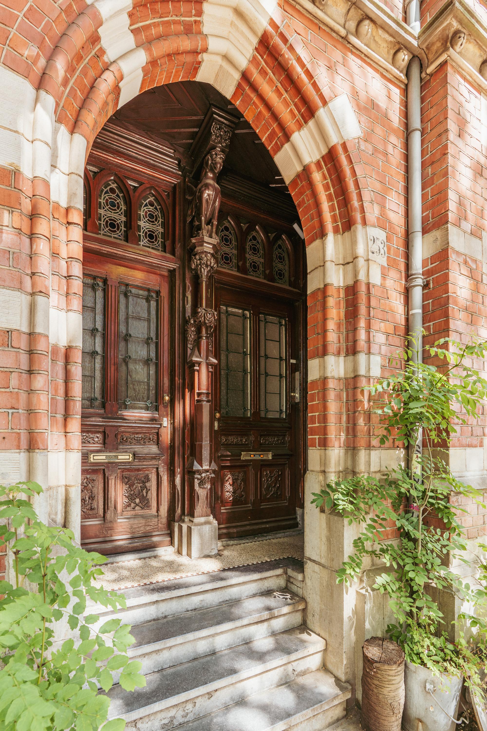 Stijlvolle portiek en net gemeenschappelijk monumentaal trappenhuis, entree op de derde verdieping
