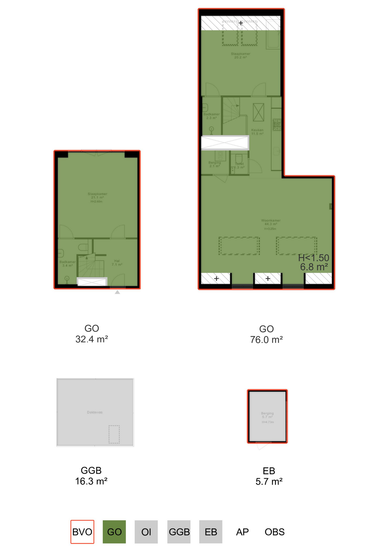 In de onderbouw bevindt zich een separate berging van meer dan 5 meter hoog, ideaal voor het stallen van fietsen en het opbergen van extra spullen.