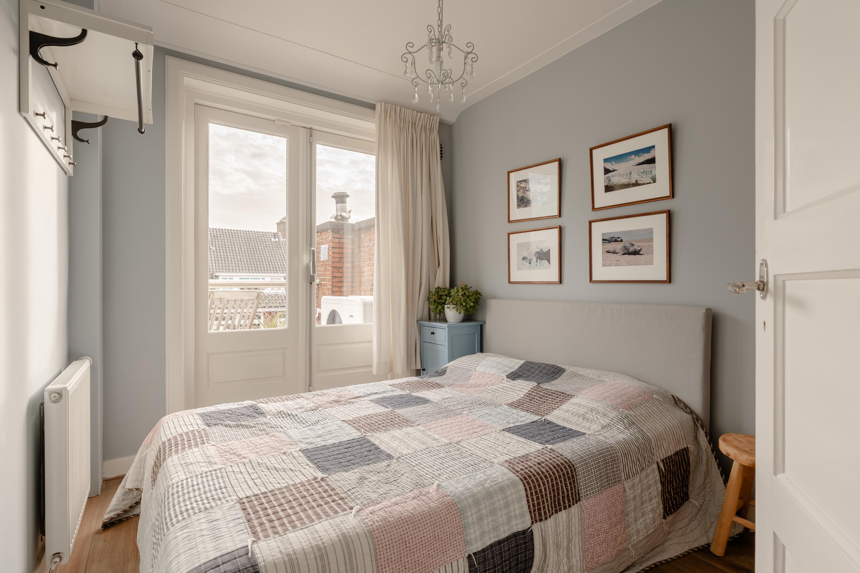 Aan de achterzijde bevinden zich twee slaapkamers met openslaande deuren naar het zonnige dakterras. Dankzij de grote raampartijen zijn deze kamers bijzonder licht en bieden zij een vrij uitzicht.