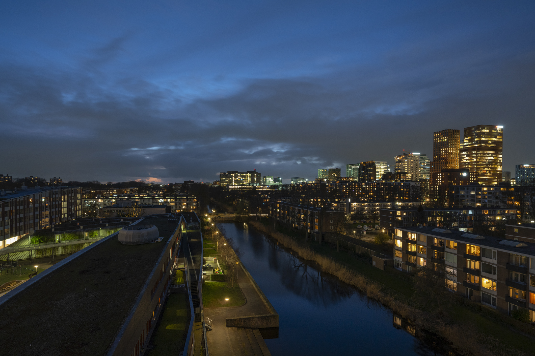 [Switch funda to English for English text]. Luxe driekamer hoekappartement van 117 m² met vrij uitzicht over het water en de skyline van de Zuidas, twee slaapkamers, luxe woonkeuken met kookeiland en eventueel een eigen parkeerplaats. Het appartement is gelegen op de zevende verdieping van het markante in 2004 opgeleverde appartementencomplex Gelderhof.