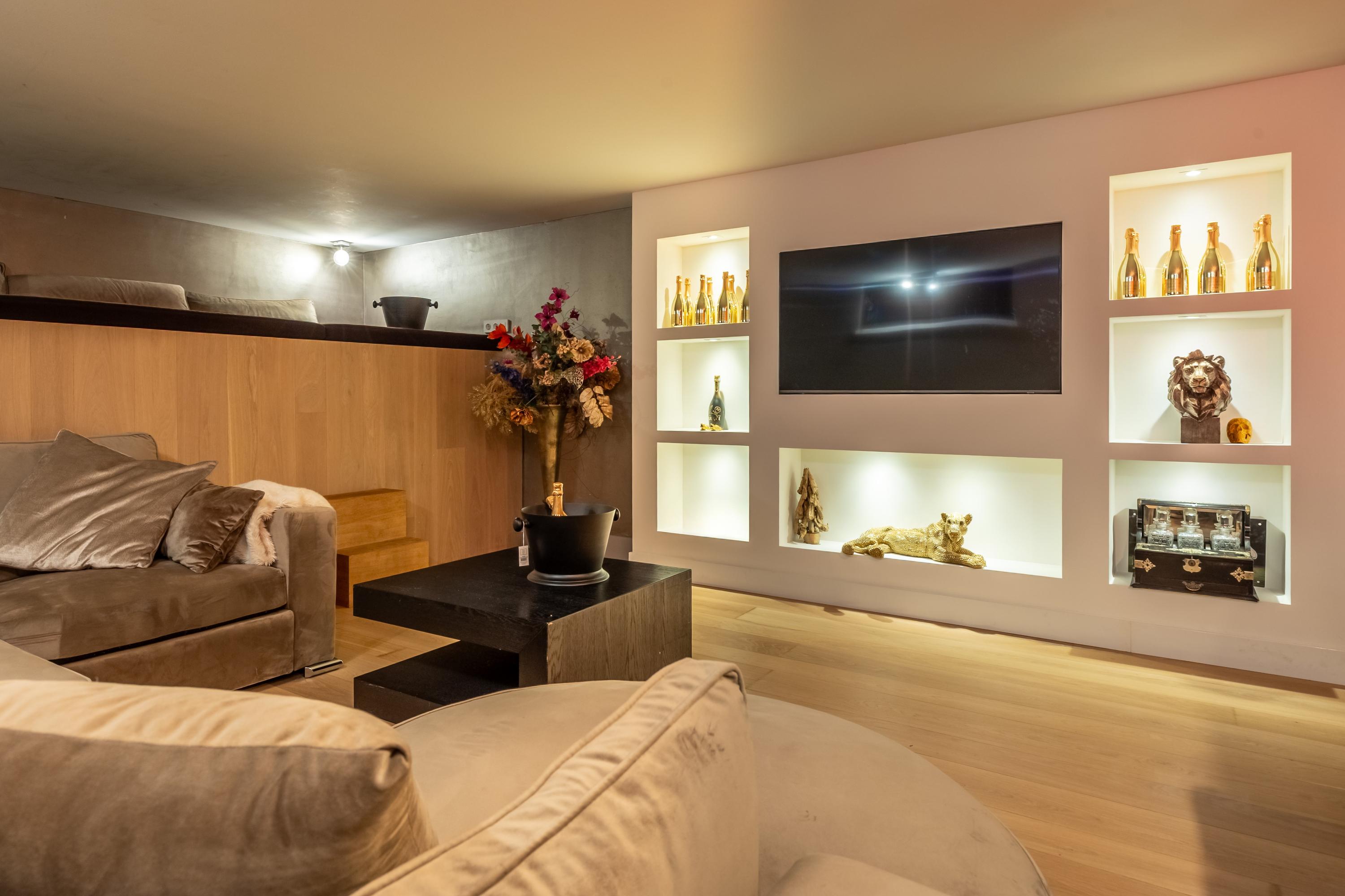 In het souterrain bevindt zich een wellnessruimte van uitzonderlijke allure. Een verwarmd zwembad met solardek en tegenstroominstallatie vormt het hart van deze ontspanningszone. Achter rookglazendeuren vindt u een Hamam, sauna, douche en kleedruimte, waardoor een gevoel van ultiem comfort en beslotenheid ontstaat. Het zwembad is volledig geautomatiseerd, verwarmd met een eigen cv-ketel en voorzien van moderne filterinstallatie en ontvochtiger.