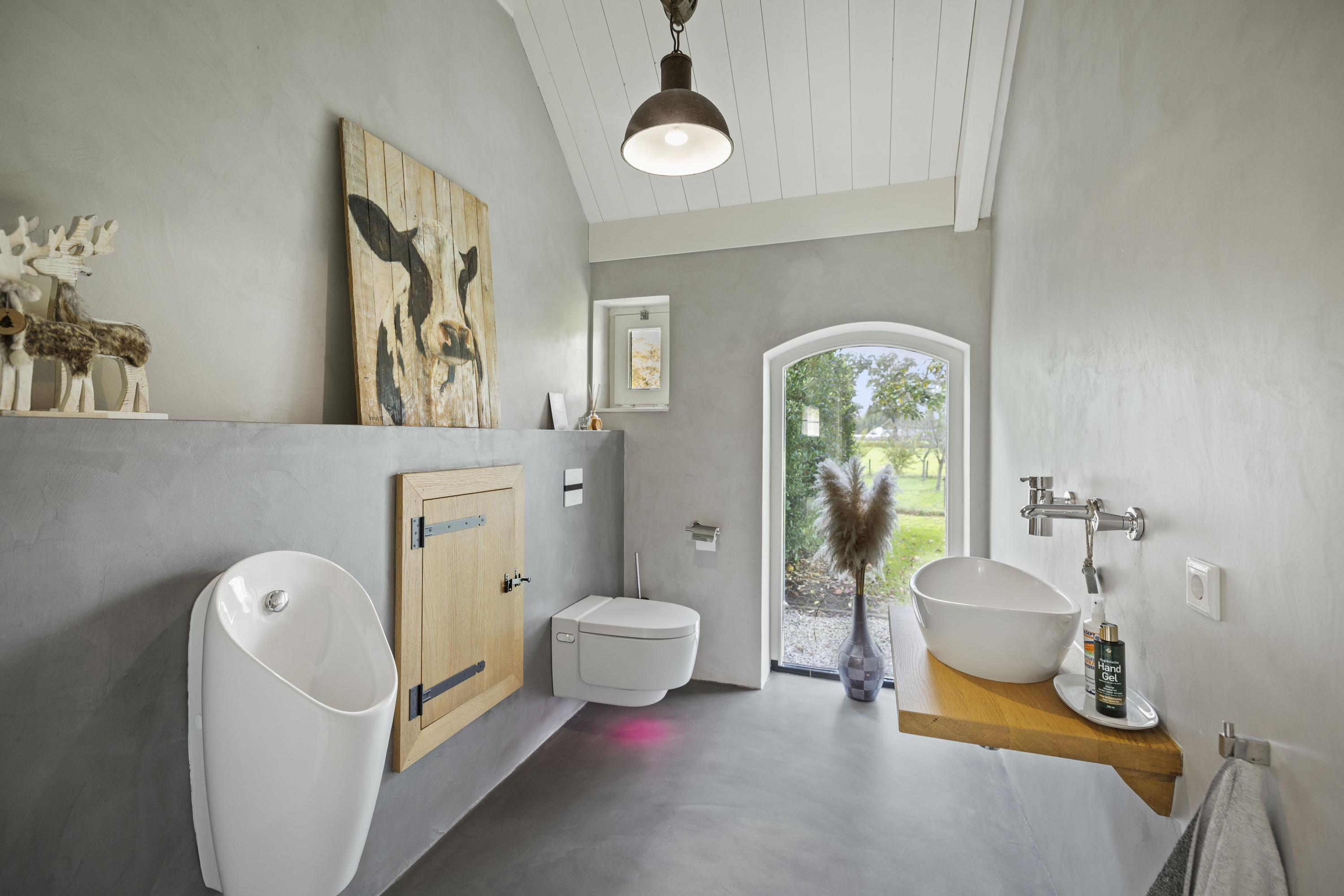 De WC is voorzien van een urinoir en douchetoilet (Mera Geberit).